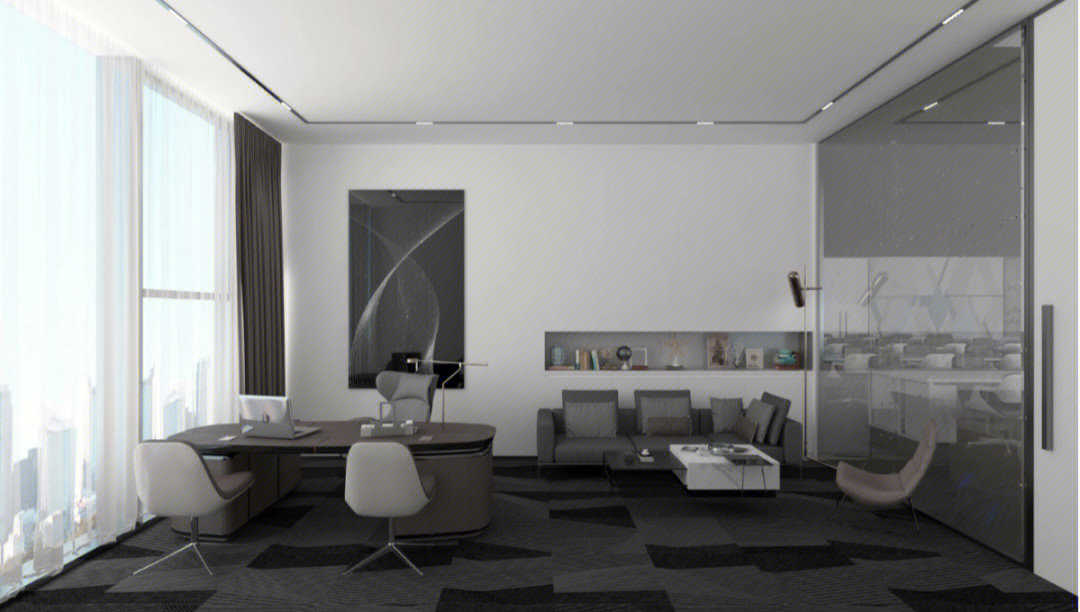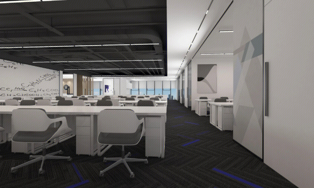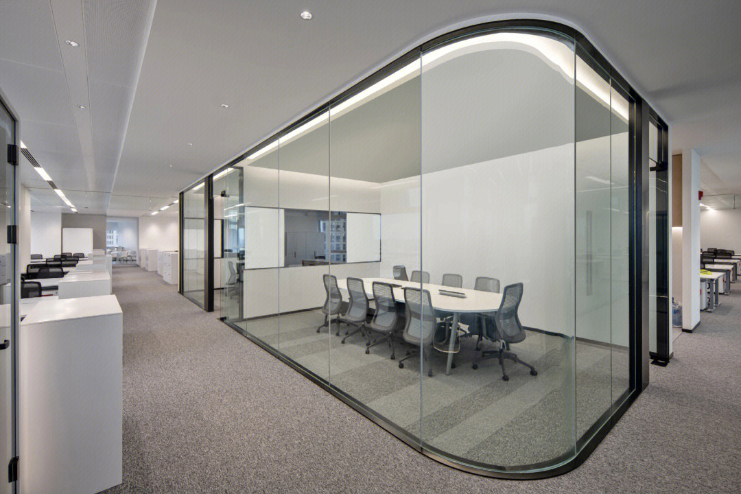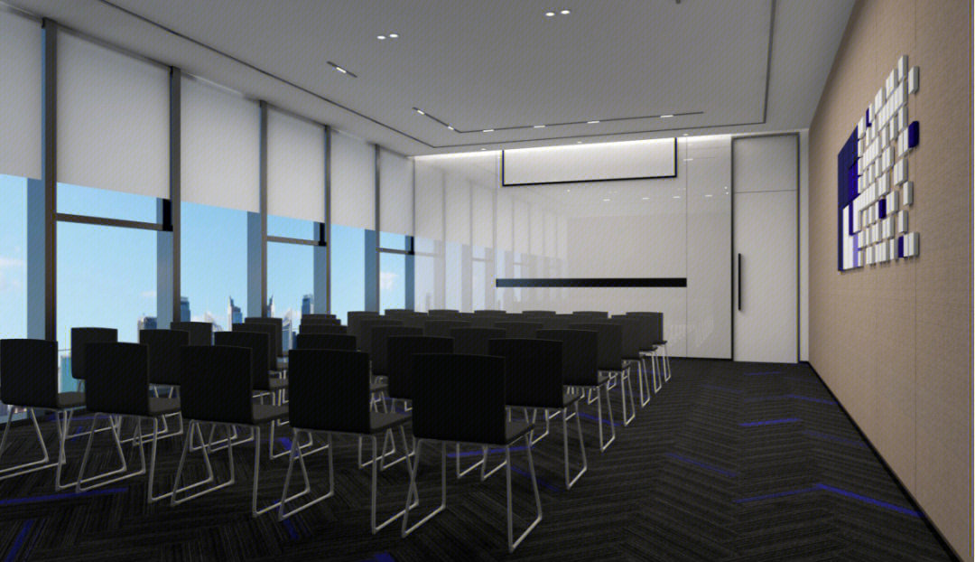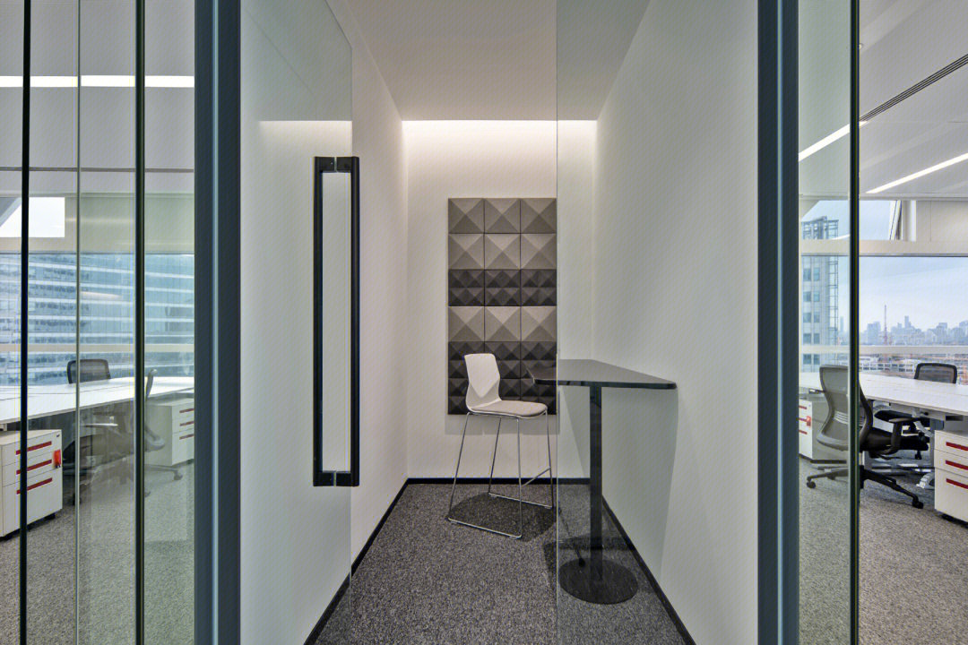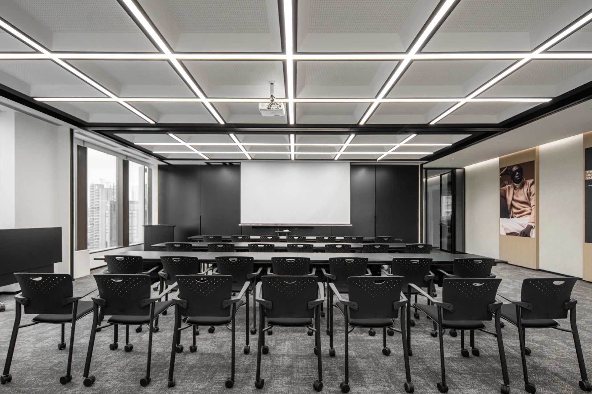 我们在设计上运用了很多组合空间,将整个接待区域打造成一个集接待、会议、洽谈、展示、培训为一体的多功能空间。通过活动折叠门,将三个原本独立的空间连接起来,在会议室不使用的时候可以通过打开折叠门的方式让整个接待区域空间感提升三倍。在进行公司例会时,接待区域又可以作为例会空间的一部分,让空间的利用率大大提升。