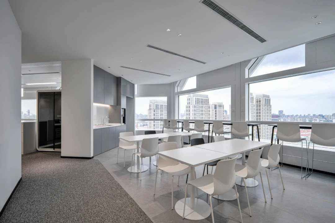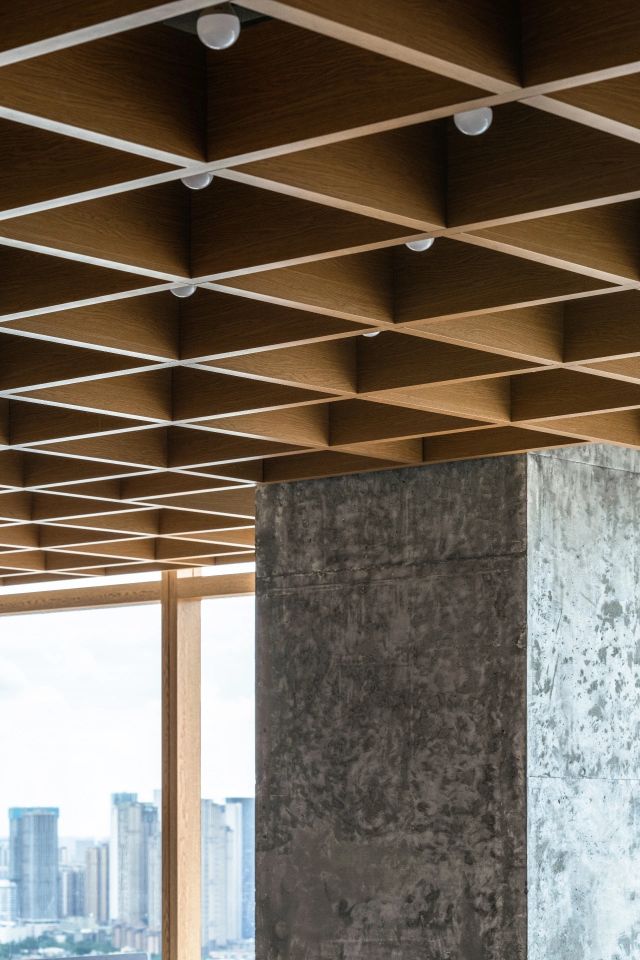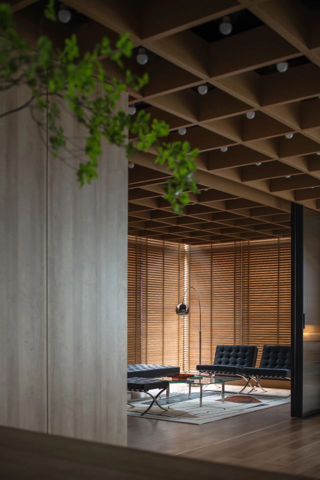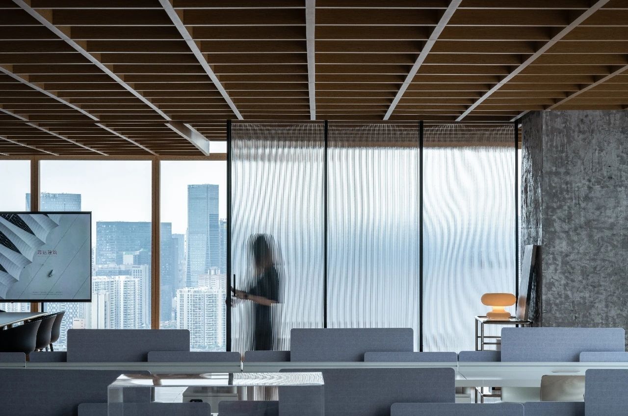 设计以空间的舒适性为出发点,温润柔和的木色成为了空间的整体底色,以不同的材料形式在顶面、地面、立面得以呈现。白色的办公桌赋予空间明快轻松,剔除掉乳胶漆表皮的混凝土立柱彰显力量感与时间感,精心设计的家具体系,灵活的空间隔断,构成了全部的空间表征,宛如一幅当代城市山水画卷。