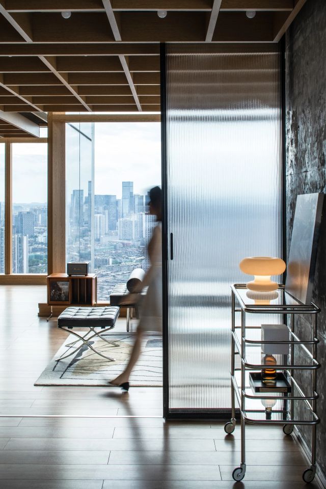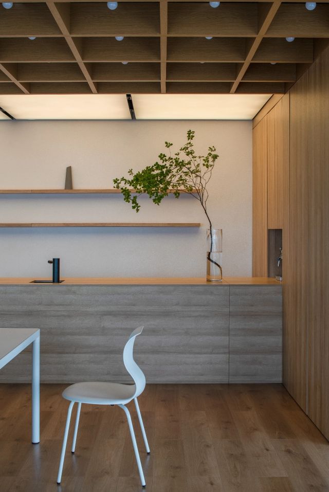 至繁归于至简,材料设计与功能设计,感性与理性的和谐统一,温暖、纯粹、宁静的氛围基调得以彰显。当夜幕来临,环境光的冷色与室内的暖色自然过渡衔接,半透明的木百叶窗帘使得空间节奏变得不确定,变得暧昧,空间的诗意在此刻显露无疑。