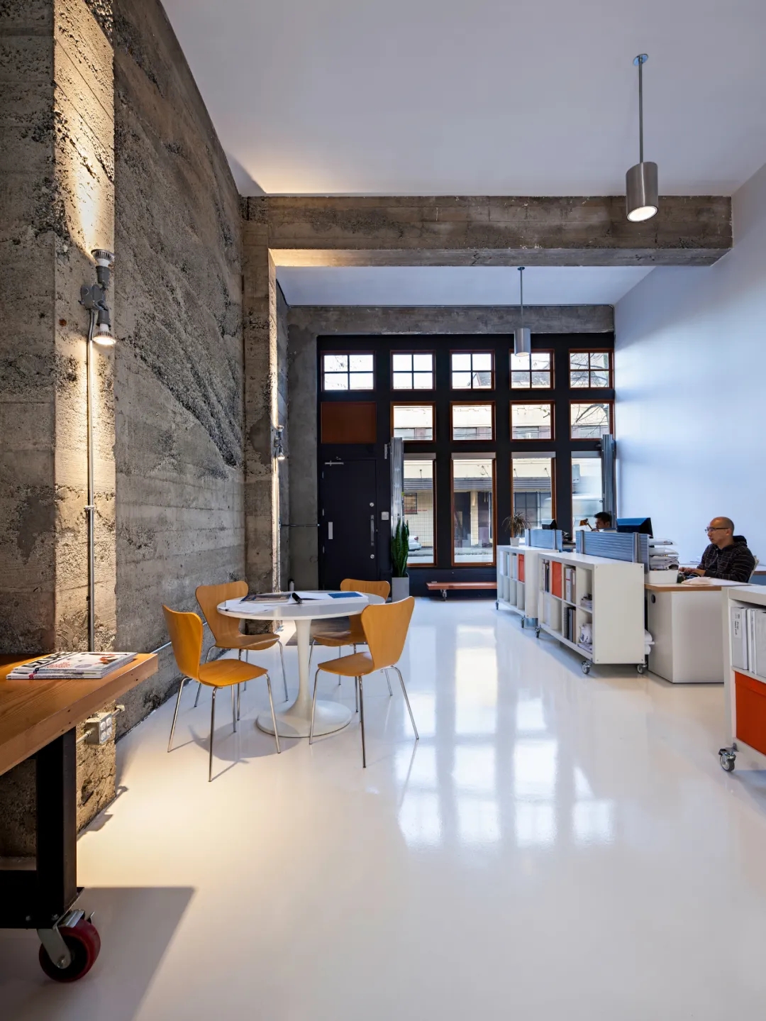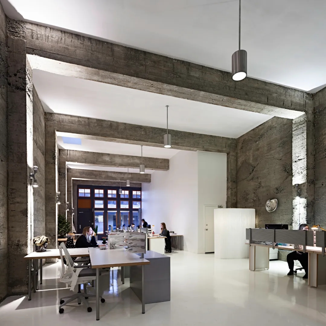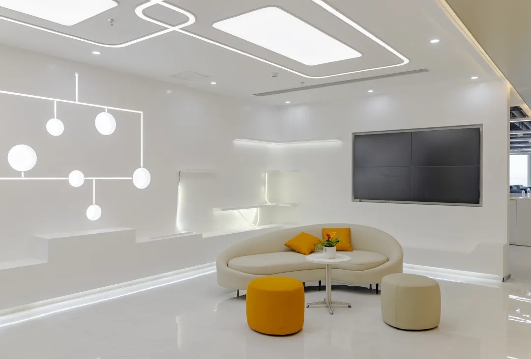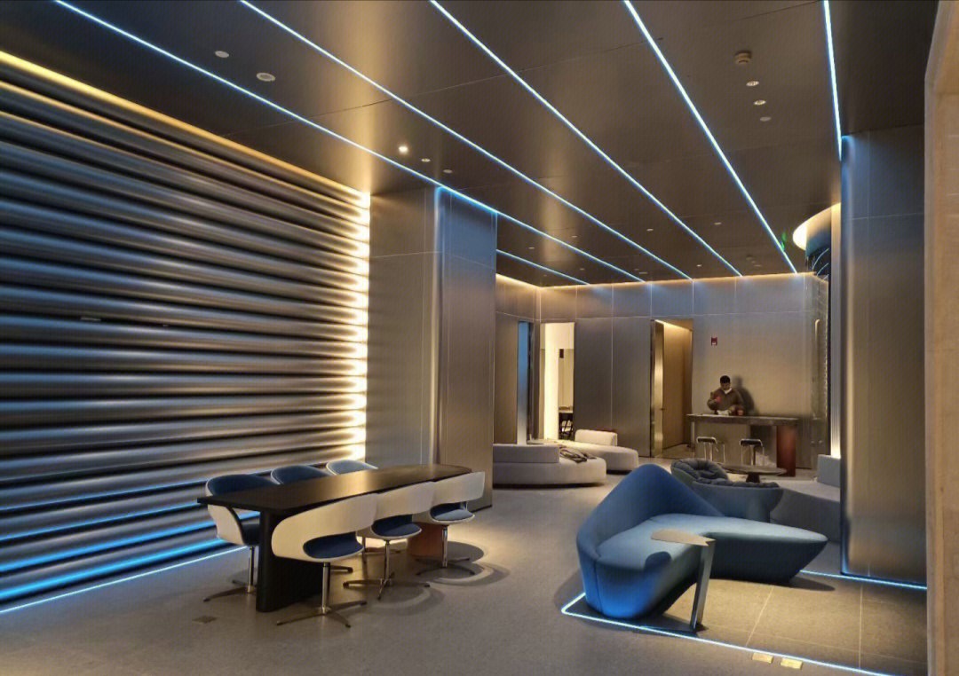 此外,基于汽车工作室的高流动与开放性,设计拒绝了实体墙面的全面封闭,而是以多处玻璃壁面的适时嵌入,巧妙的建筑构思,无论身处何处,将人视线的主角回到一层的车展厅当中。在整个空间当中为消费者营造出一种全新的体验。