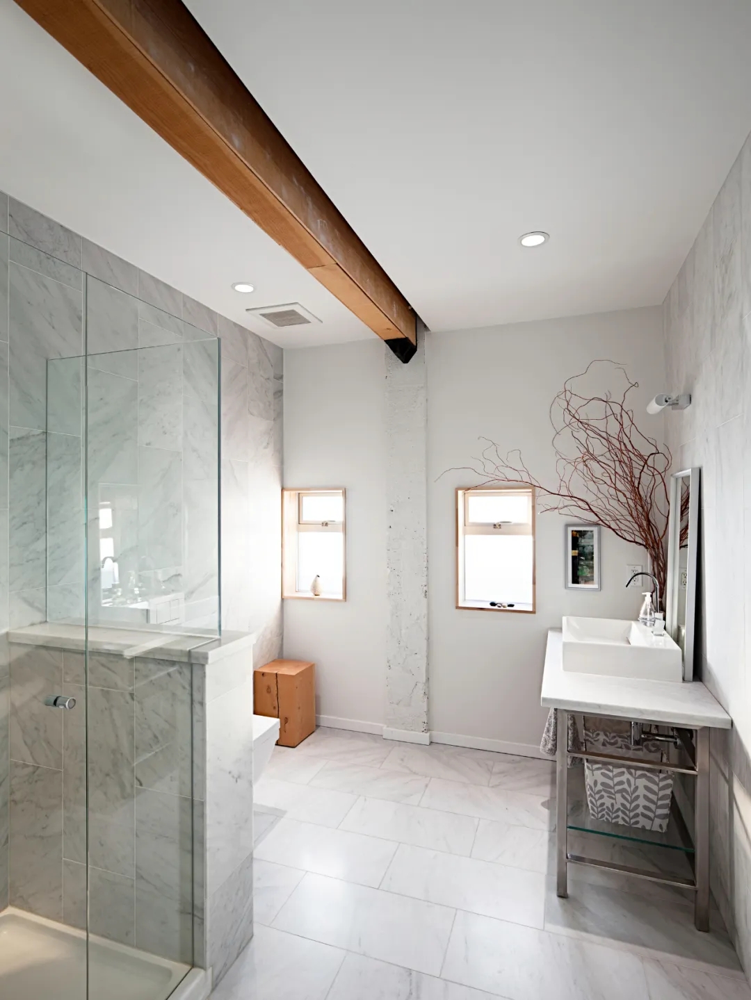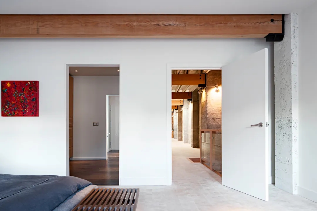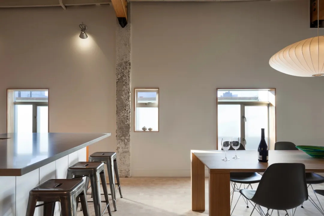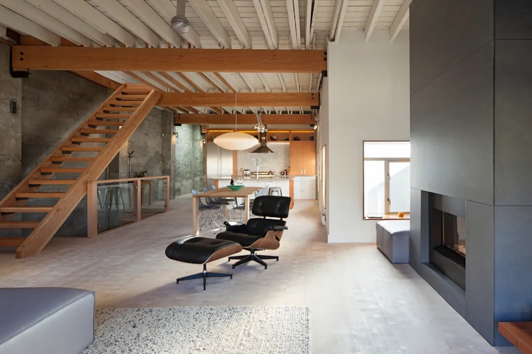 同时在解构形式上进行深化处理,建筑总共三层,楼层之间使用红色隔断营造出空间上的错层感。色彩的独特性,叠加不同材质面的区隔,使材料本身互成为这个空间衬托与表达的个体,营造丰富而迷人内部界面。