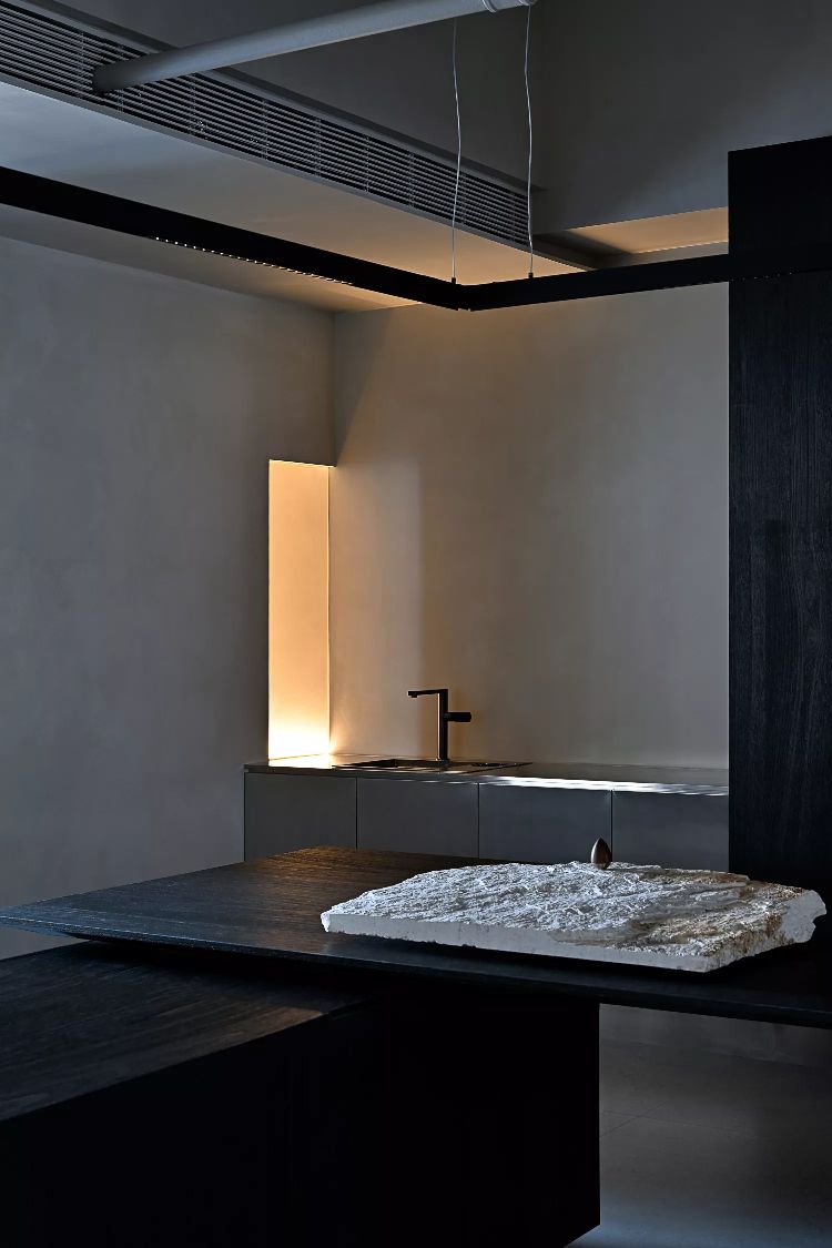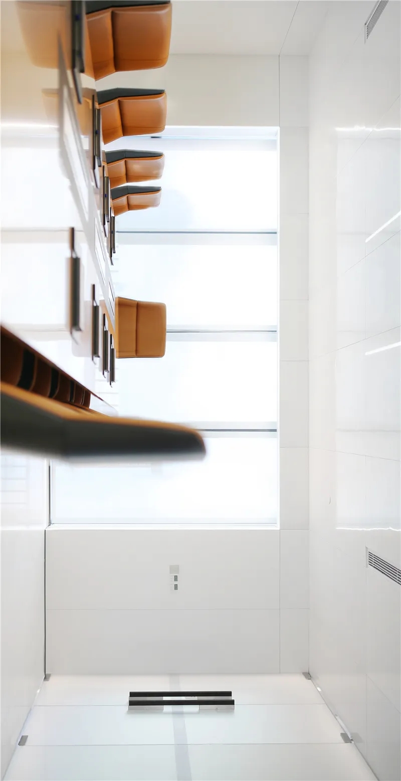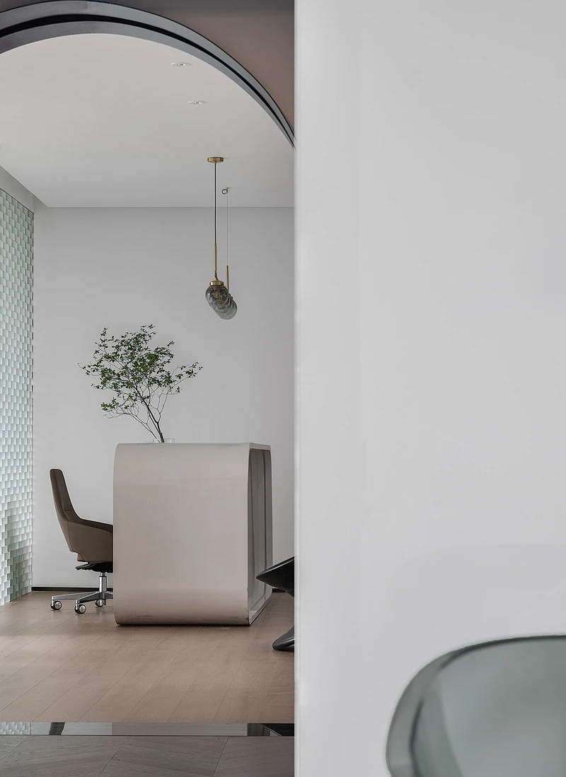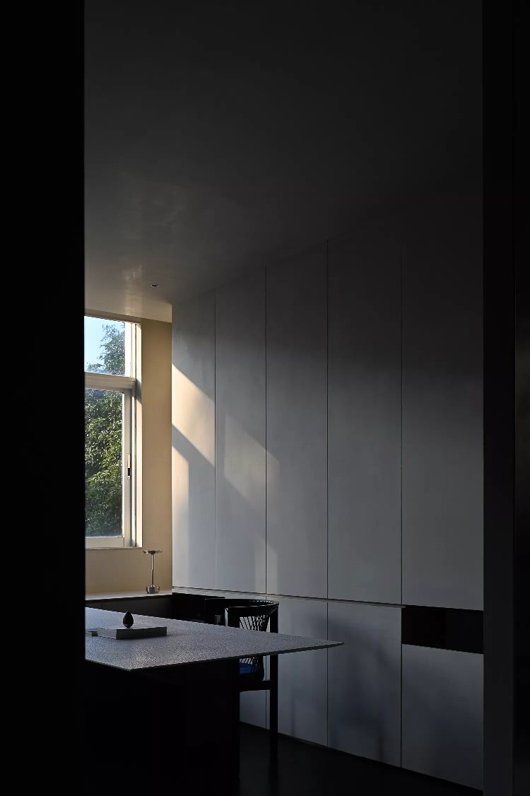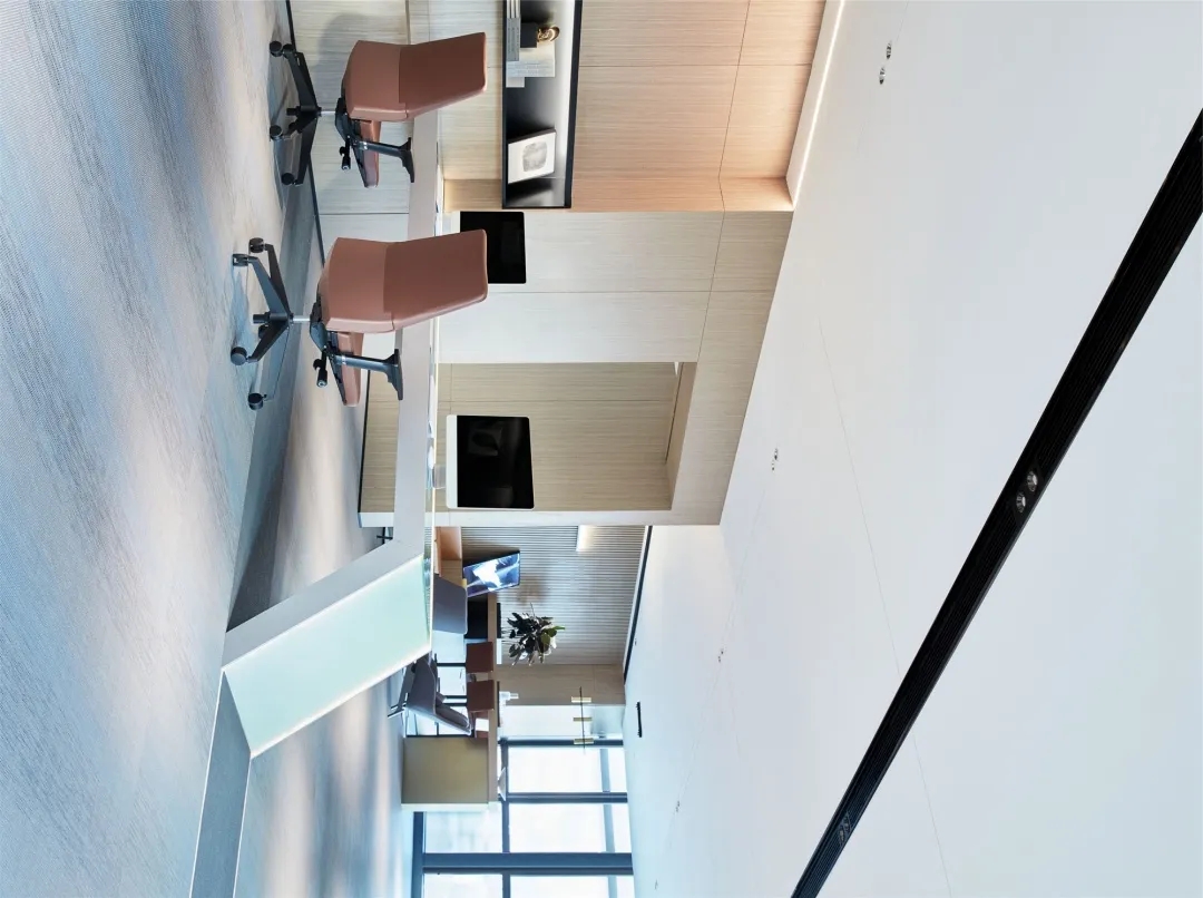 低调、中庸、引而不发,中式处世哲学对现代生活依旧有着潜移默化的影响。以明亮温暖的感官打造一个舒适的对话空间,透光而不透明的夹丝玻璃保护隐私性。一个非典型意义上的开放式交流空间,足以平衡工作、心理的双向需求。