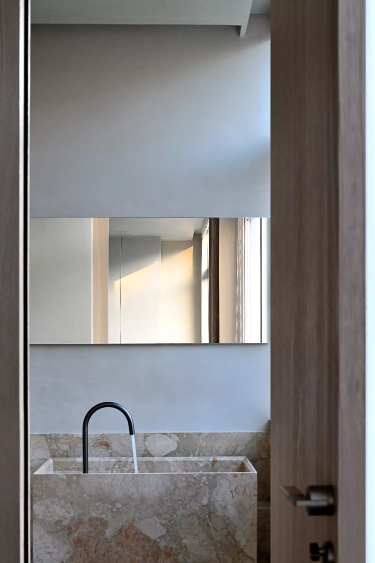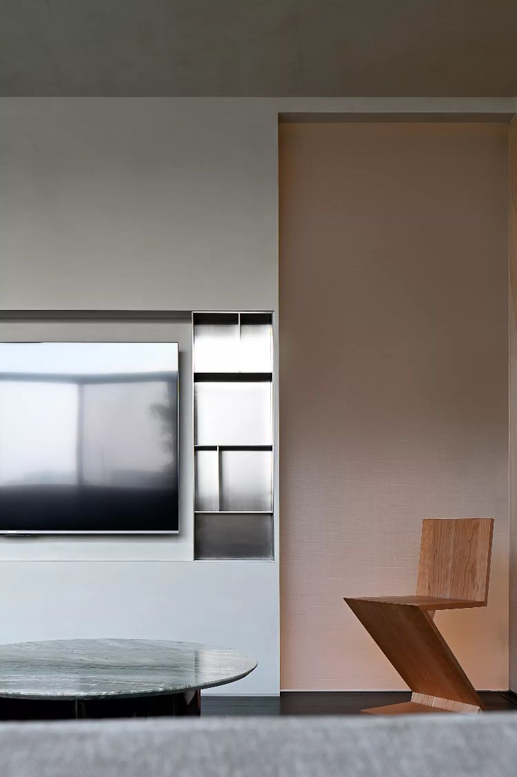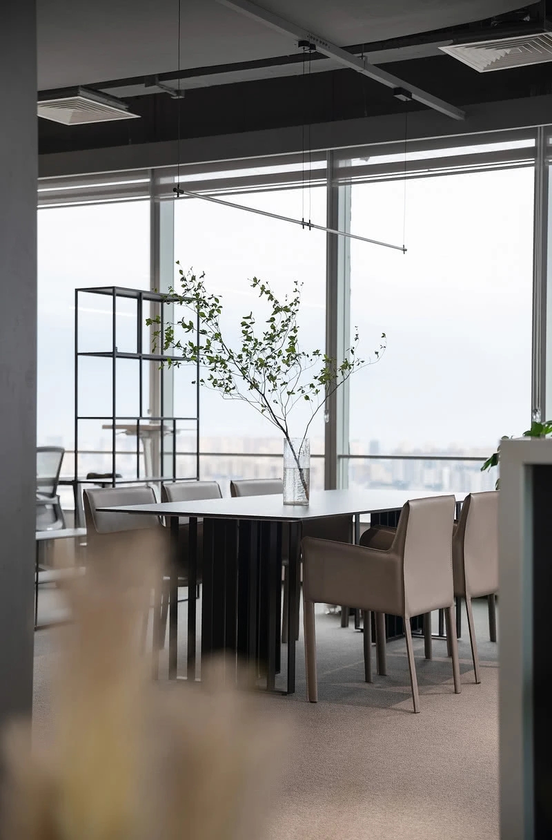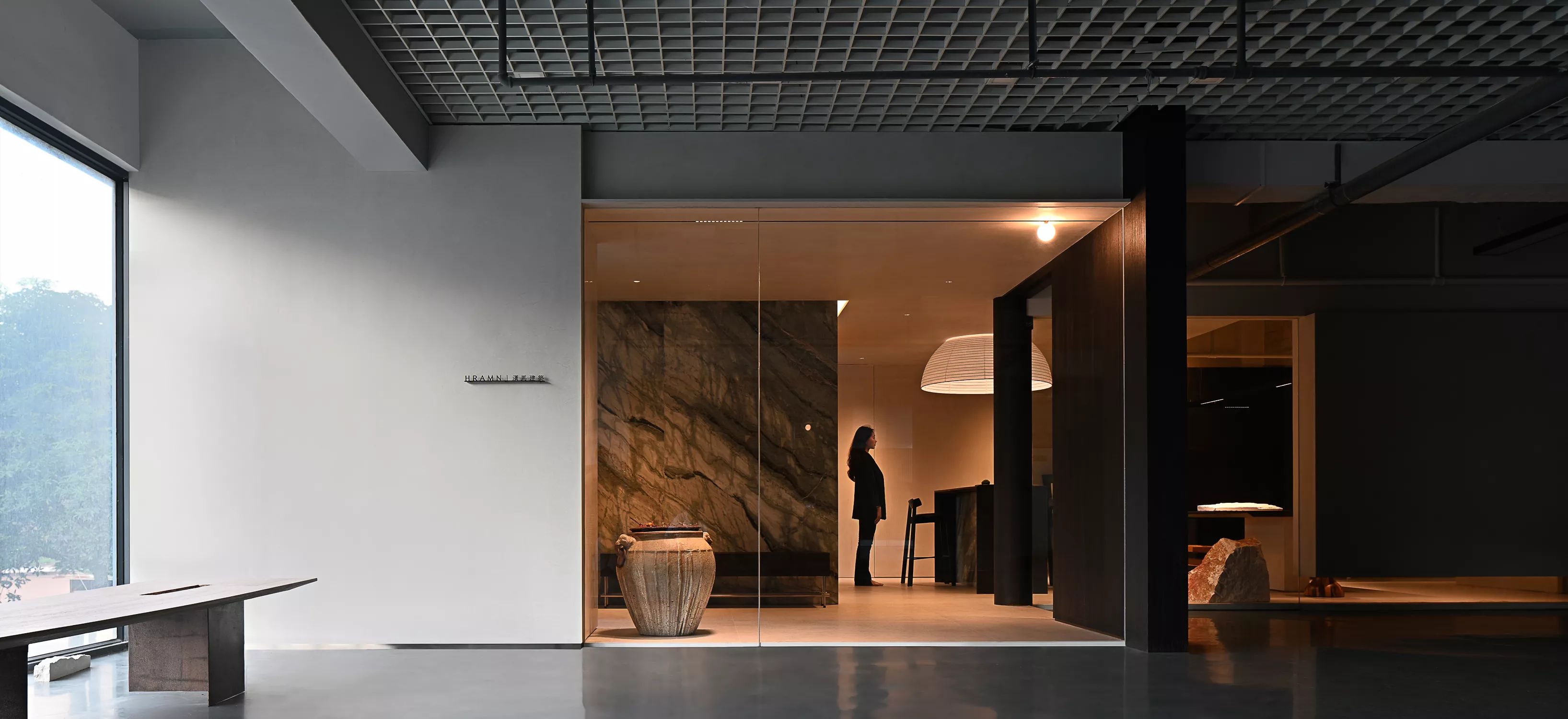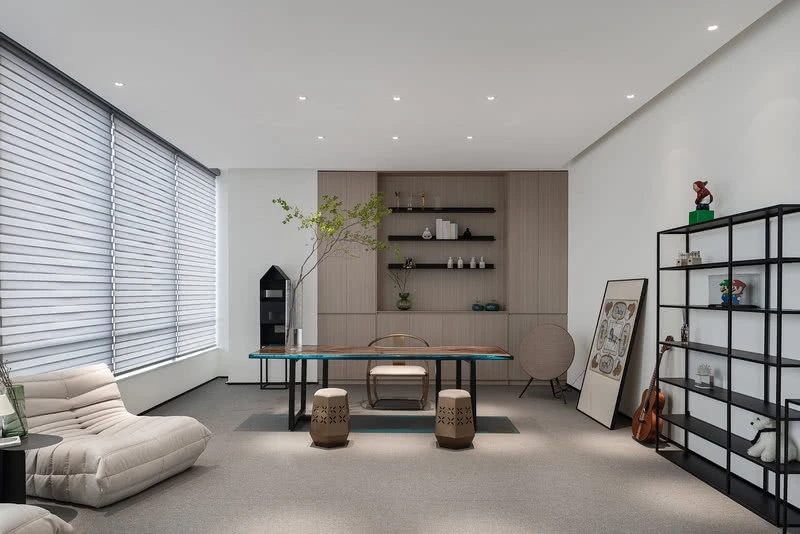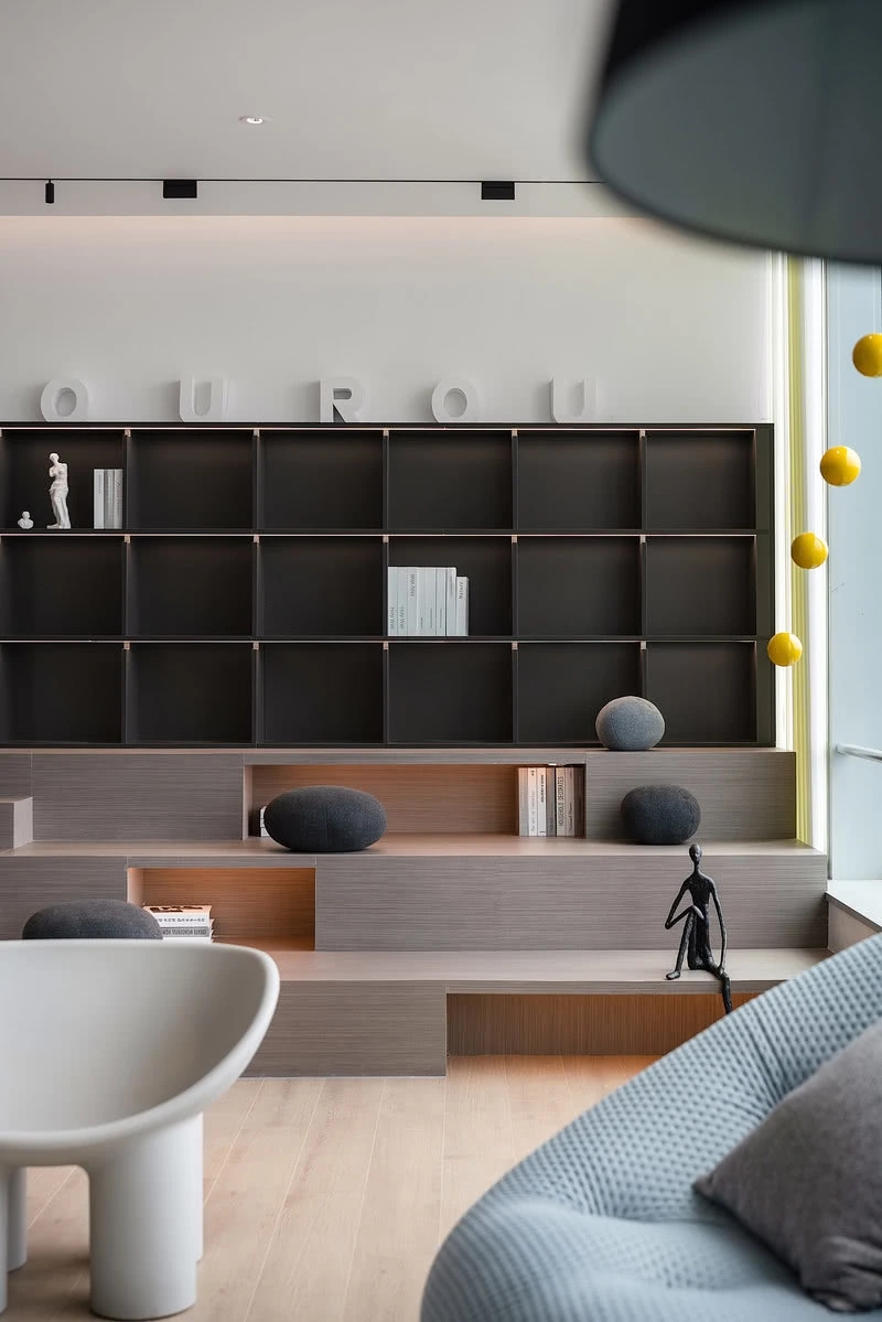 低调、中庸、引而不发,中式处世哲学对现代生活依旧有着潜移默化的影响。以明亮温暖的感官打造一个舒适的对话空间,透光而不透明的夹丝玻璃保护隐私性。一个非典型意义上的开放式交流空间,足以平衡工作、心理的双向需求。