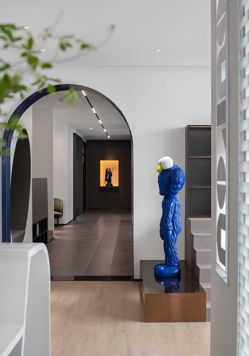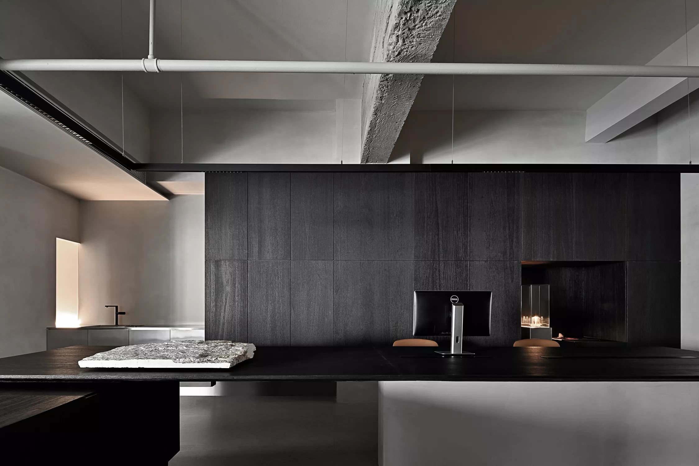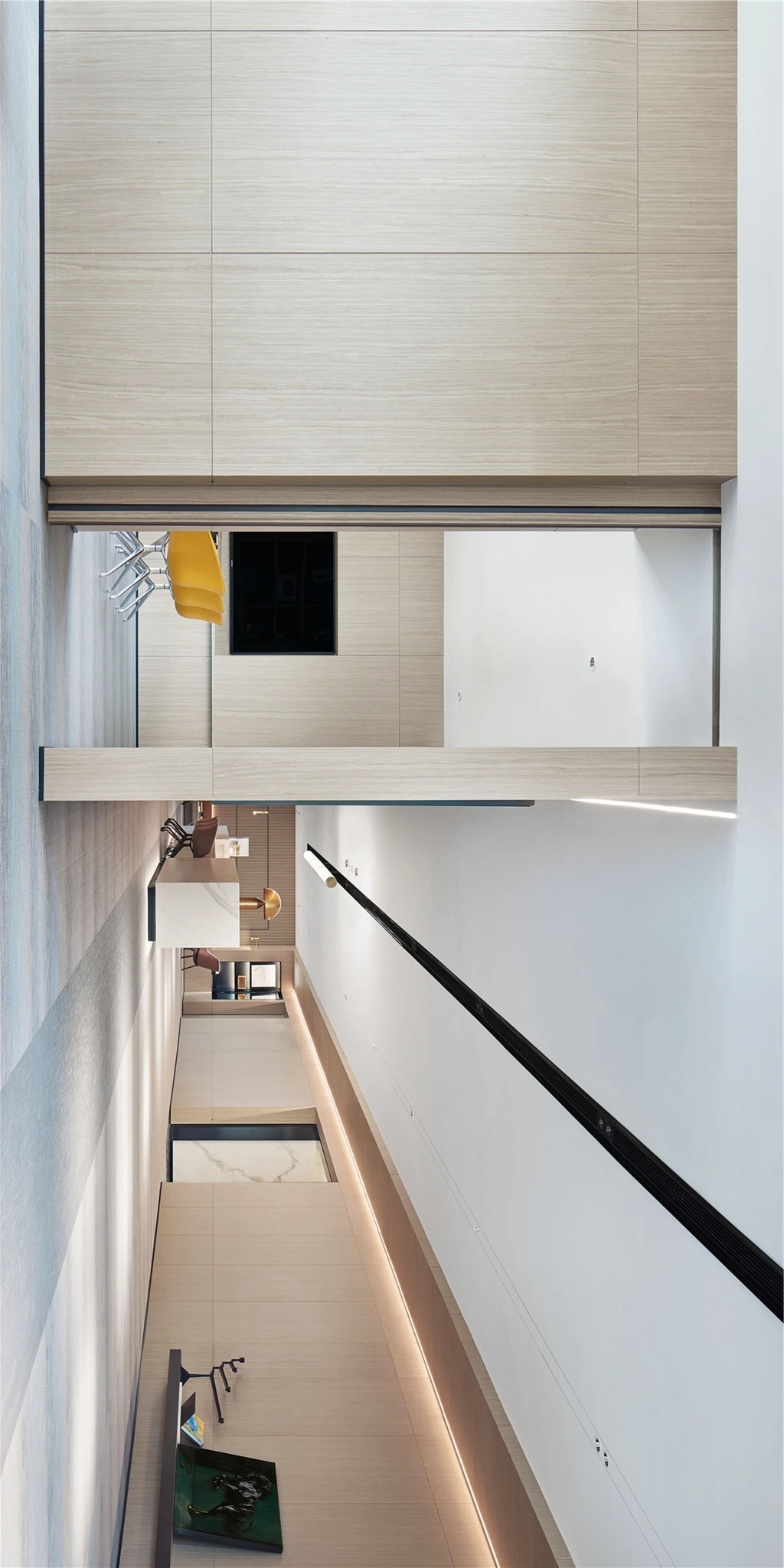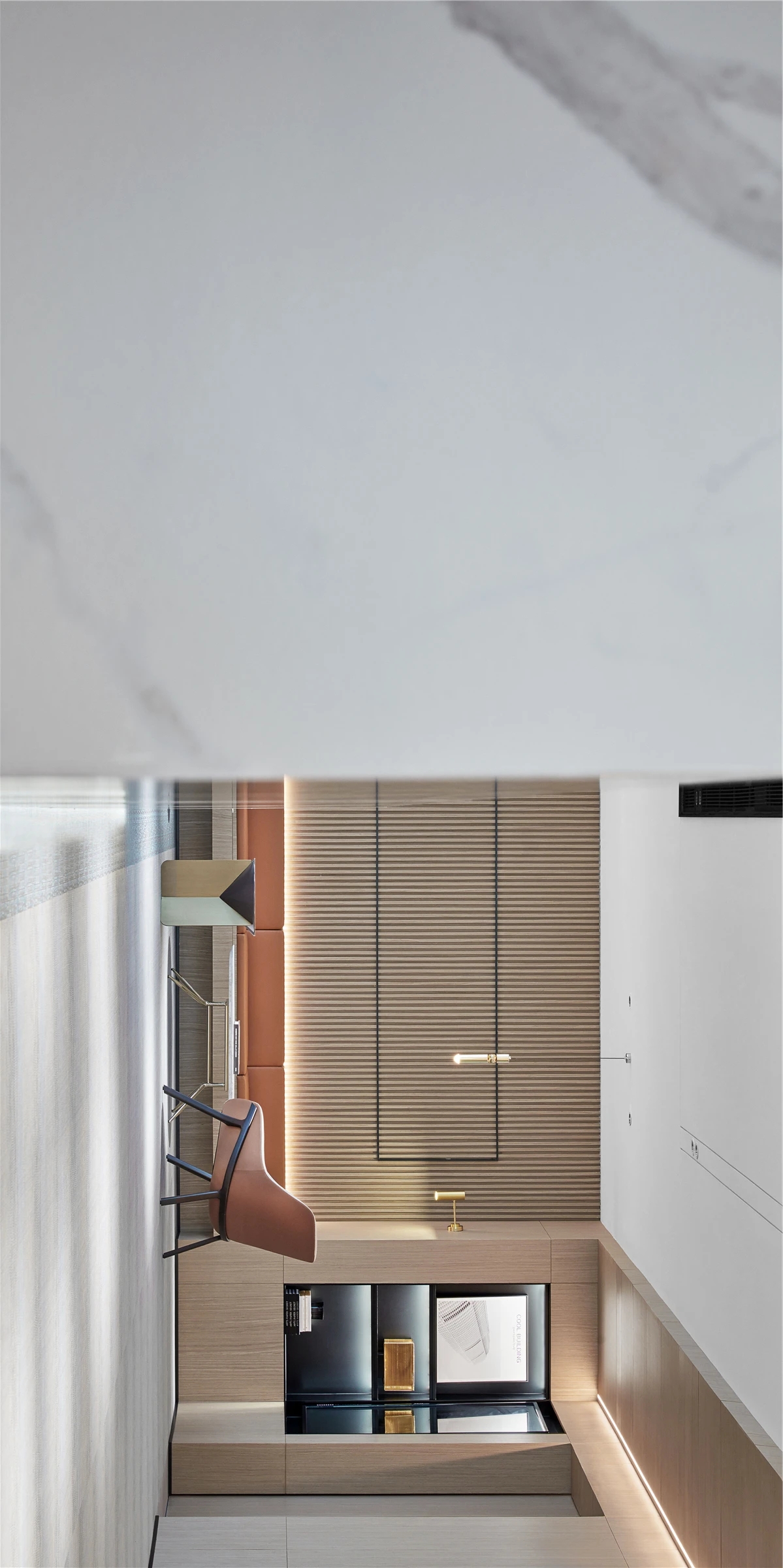 低调、中庸、引而不发,中式处世哲学对现代生活依旧有着潜移默化的影响。以明亮温暖的感官打造一个舒适的对话空间,透光而不透明的夹丝玻璃保护隐私性。一个非典型意义上的开放式交流空间,足以平衡工作、心理的双向需求。