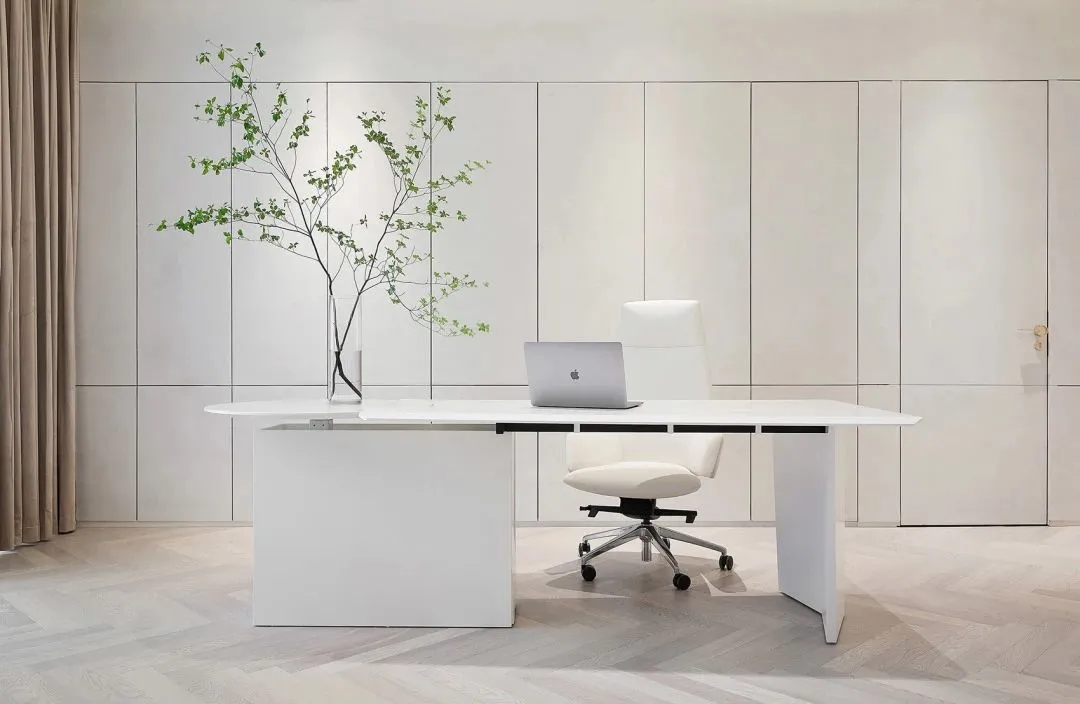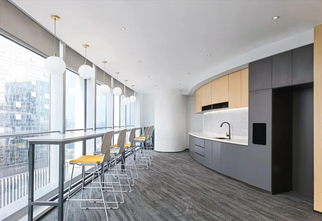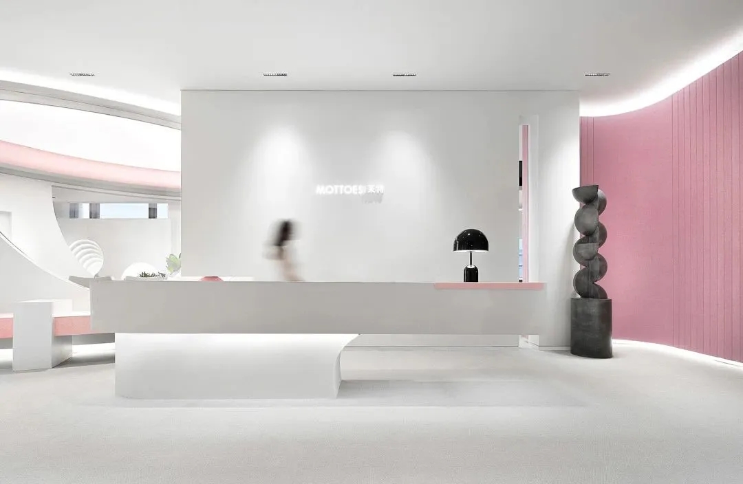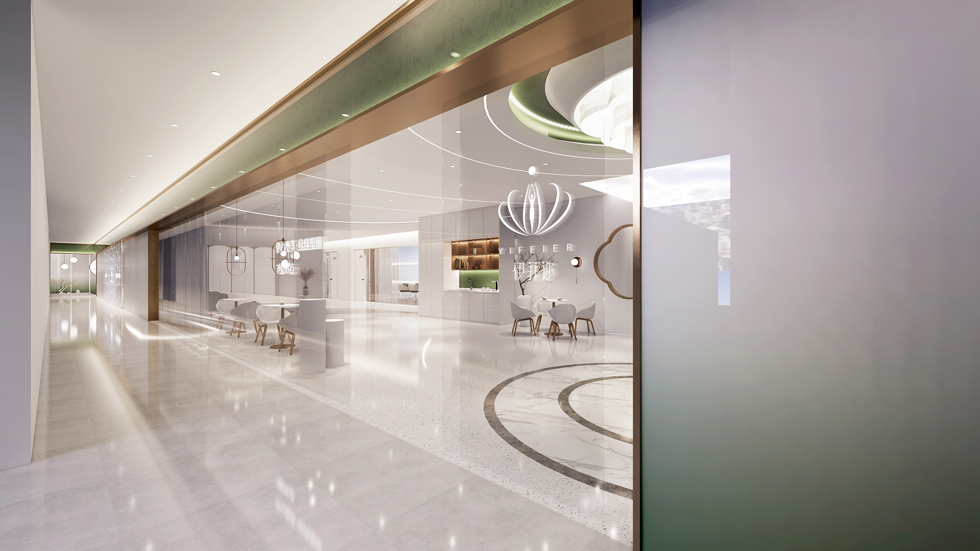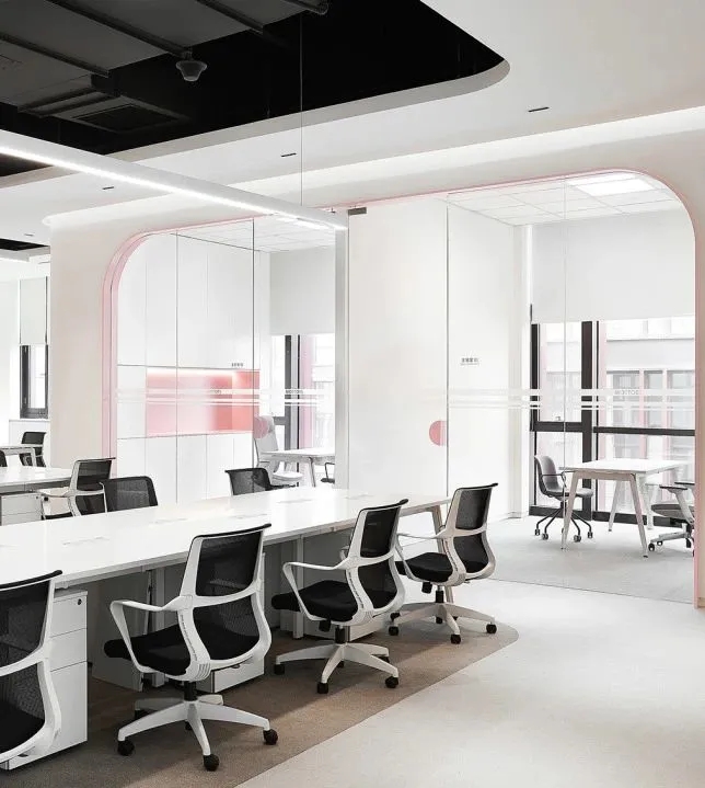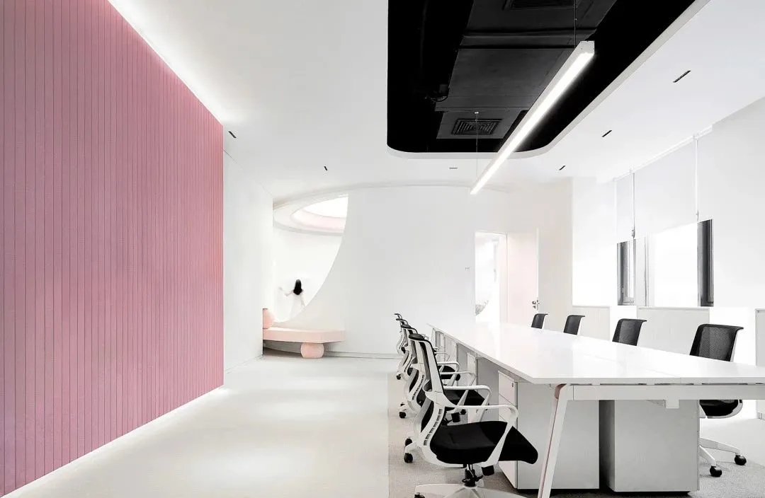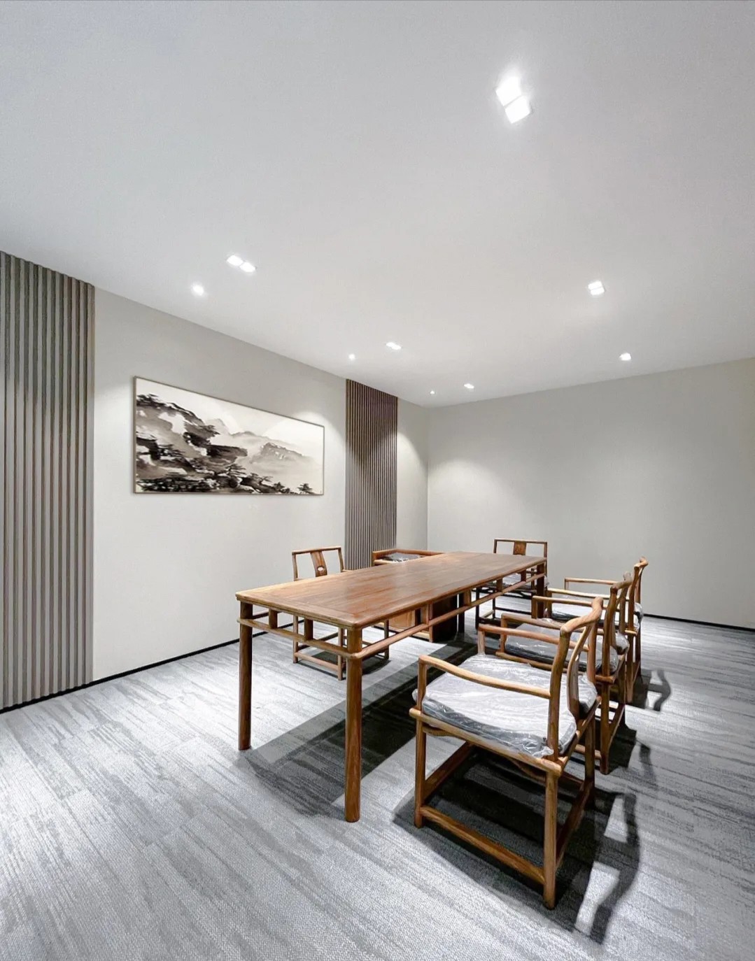 本项目中我们设计师更注重营造具有亲和力、吸引力和高可信度的空间氛围,为律所重置全新的空间蓝图。设计通过重塑和弱化原本柱体以及逼仄的天花,创造迎接客户和关怀员工的开放性空间。同时让律所各空间相互流通,将开放空间与私密性空间相互协调相互连接且不失整体性。圆弧形的前台背景掩盖了原本存在的柱子,同时增强了空间的横向延伸。爵士白大理石地面搭配墙体饰面的木纹肌理让来访者感受到整体空间带来的稳重、亲和与空间的包容性。通过强调空间与空间的流通,在区域与区域之间,自由的变化。