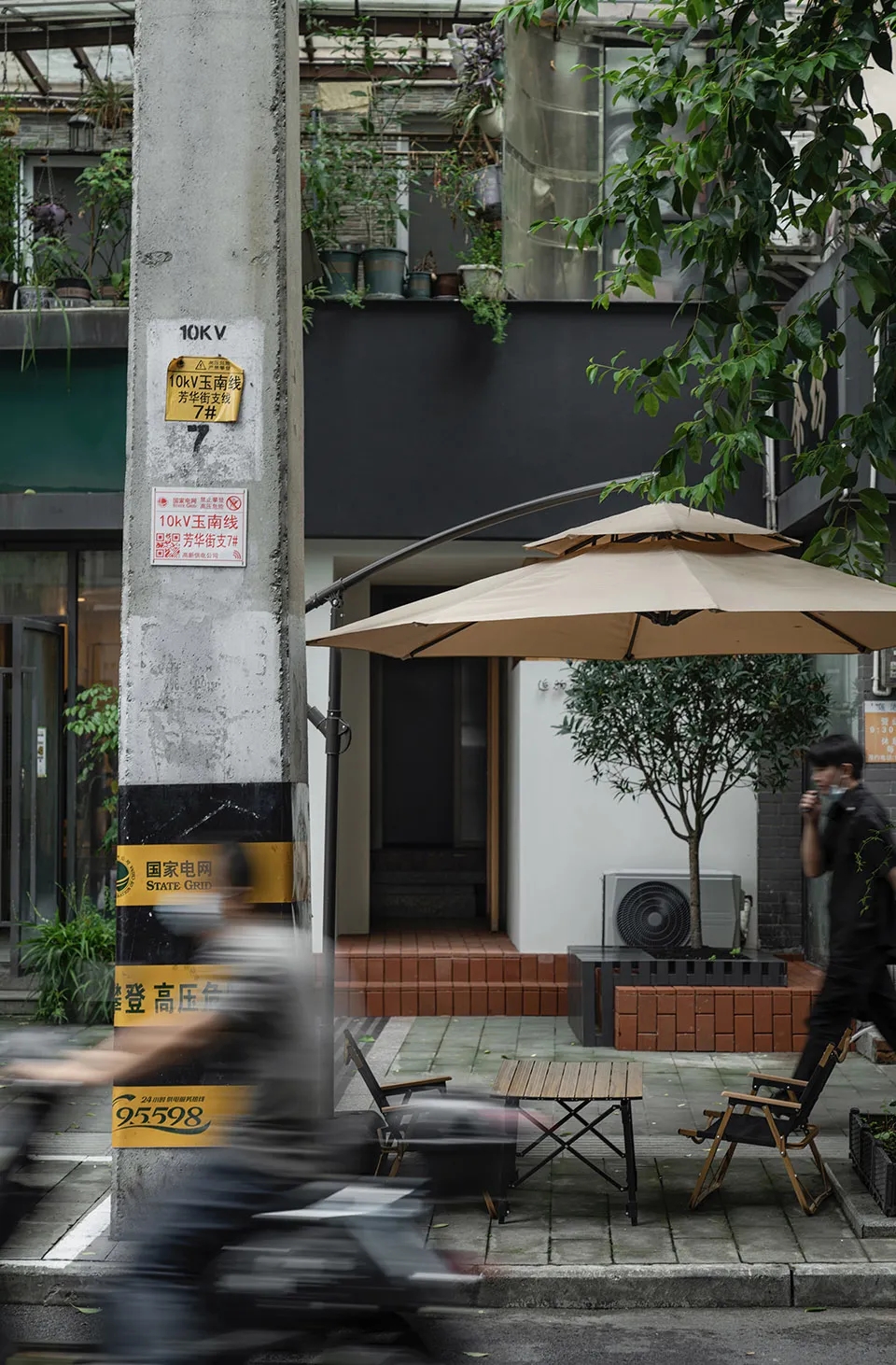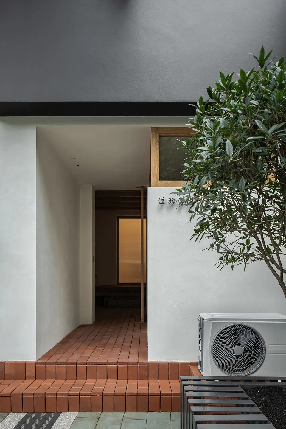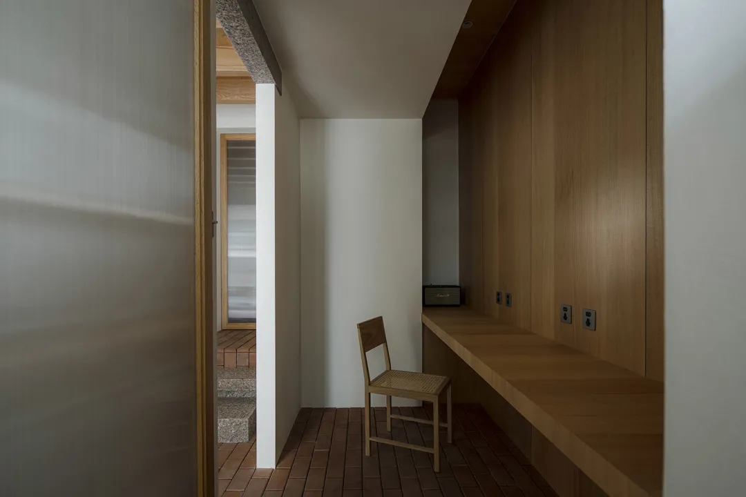 木头、陶砖、花岗岩都是容易让人产生亲近感的材料,配合肌理强烈的白色涂料,形成谦逊内敛的空间背景。阳光板的轻巧介入,让极小的空间里,依然能觅得独处的静谧。