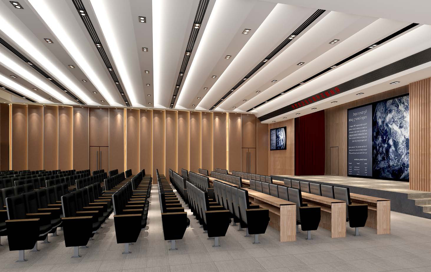 办公空间内穿插实木家具与柜门,体现出办公本身的人性化感受,与互动展示空间的灰色系相融合。