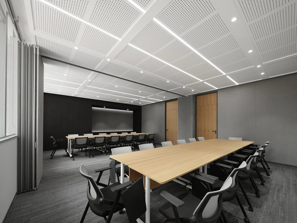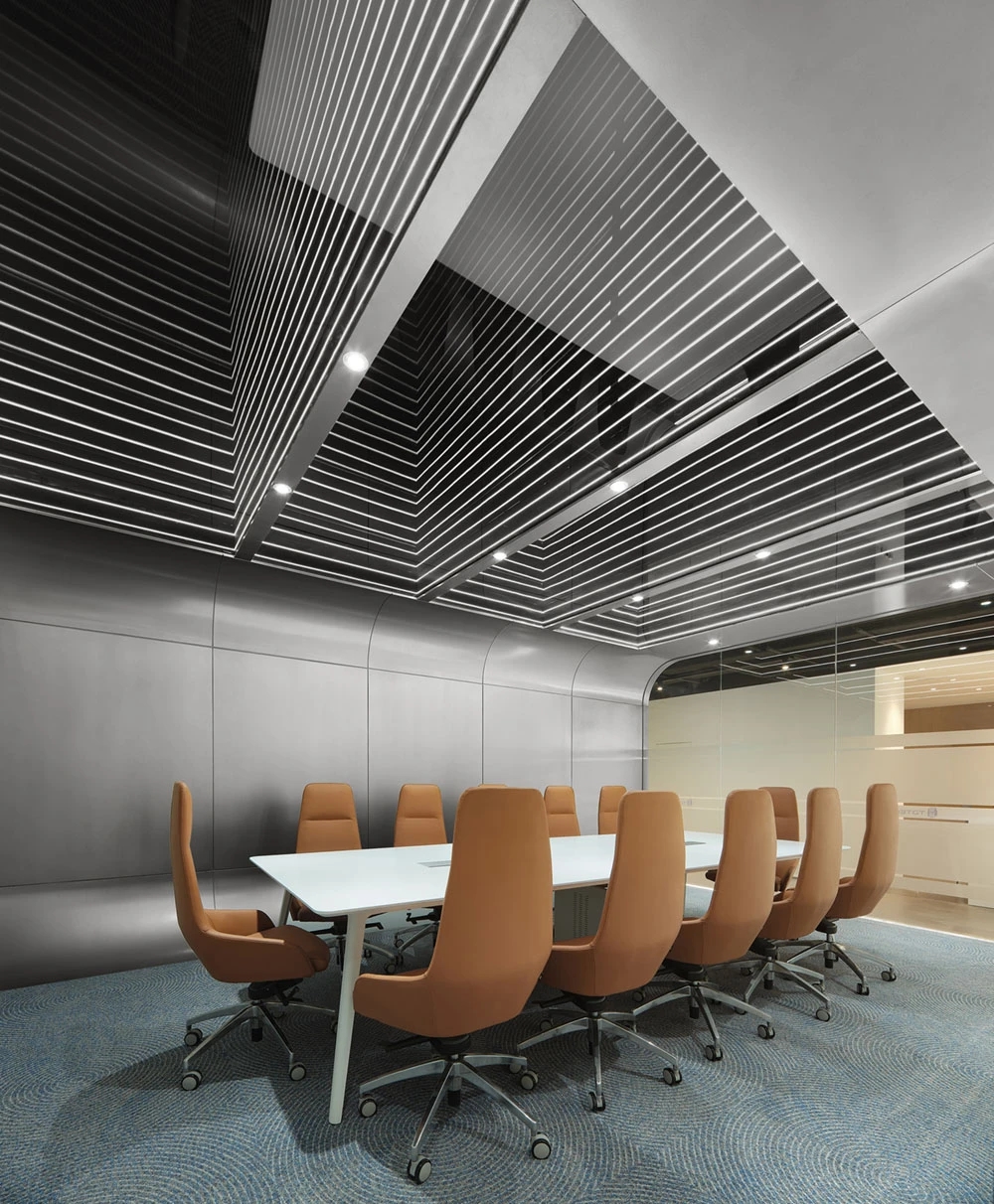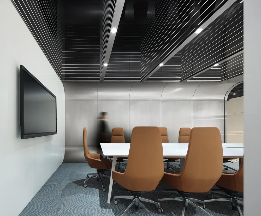 设计师将对外接待的会议空间定义为展示型会议室,并引入了“联接未来舱”主题。采用折透镜、线性照明、圆形LED矩阵系统等全新的照明形式营造出了充满科技感、未来感的会议空间