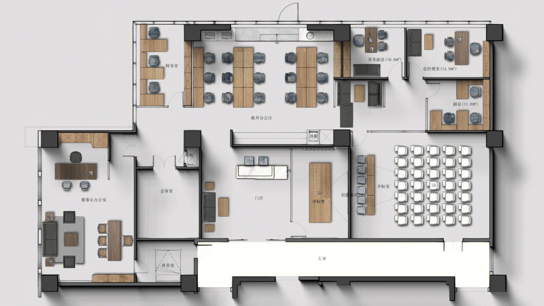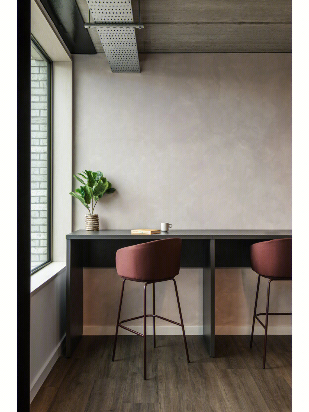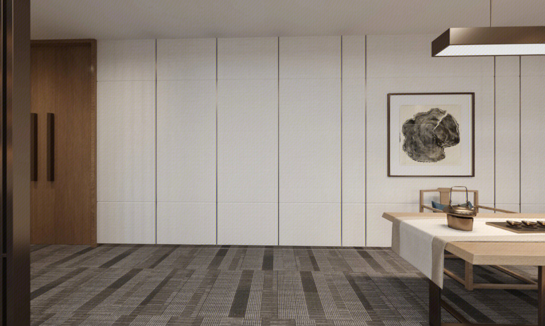 尝试用建筑语言将柜体系统分为三层架构,即结构、展陈和仓储。天然石材的矩形架构下,放置着陈列和仓储功能,金属、石材和木皮是中央厨房常见的材料,他们和谐有序的被赋予在这套“柜”上。展品仿佛被赋予了生命,在“家”中各自对话。