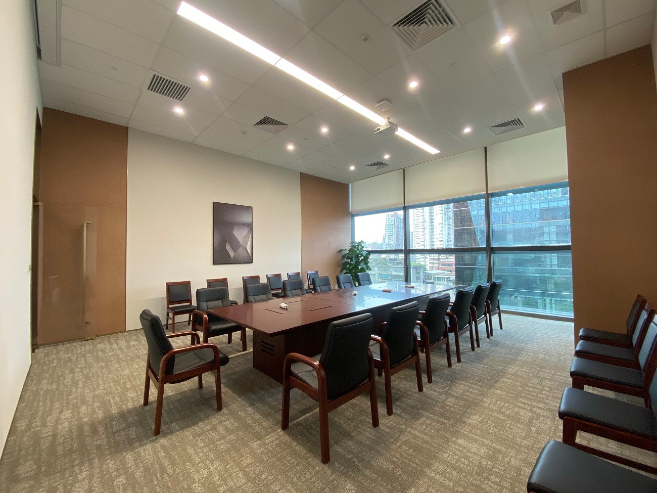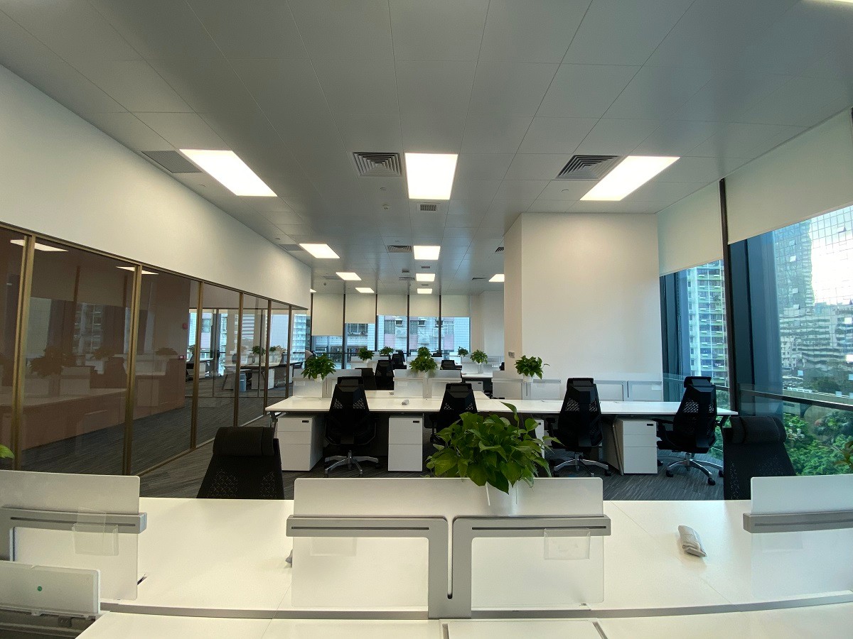 设计师结合数字广东的企业特性,将互联网企业与政府机构的两种风格相互结合,既有政府机构的严谨气息,又蕴含着科技创新的韵味。整体上,设计师根据不同办公区域,结合客户的功能需求进行设计,紧紧围绕“装饰服务于功能”,充分的彰显办公室设计的实用性与美观性。