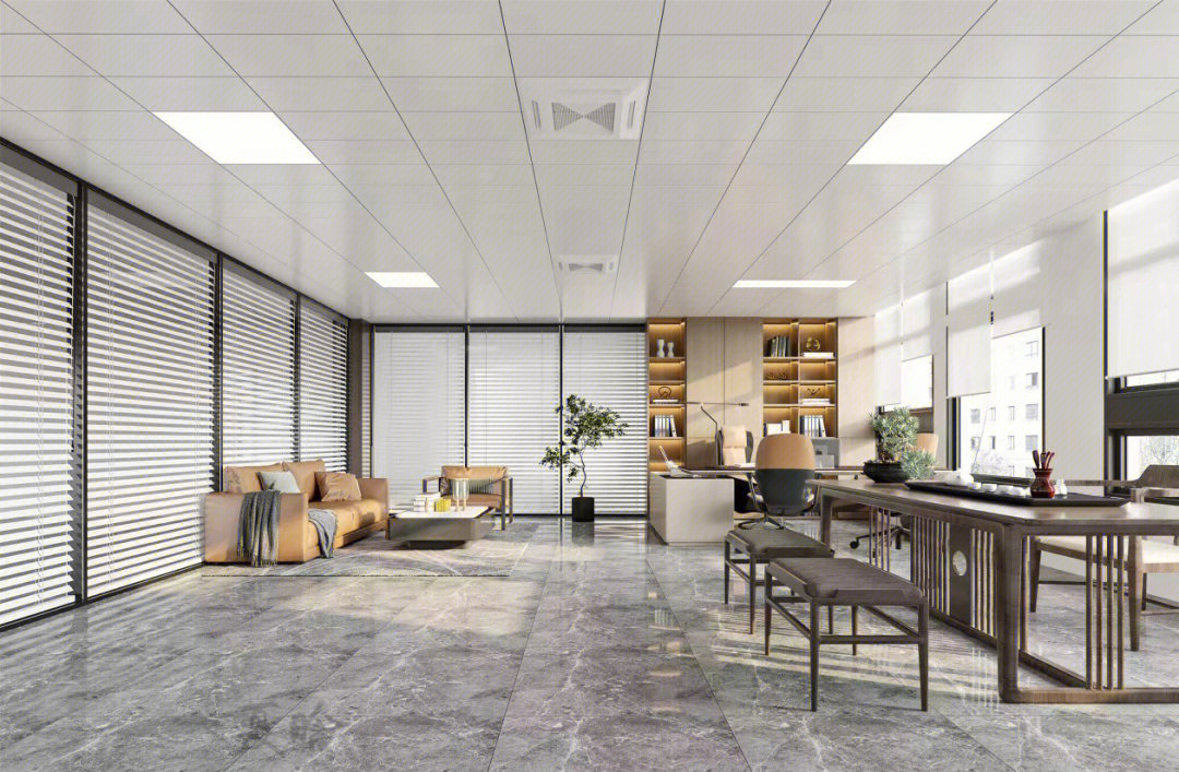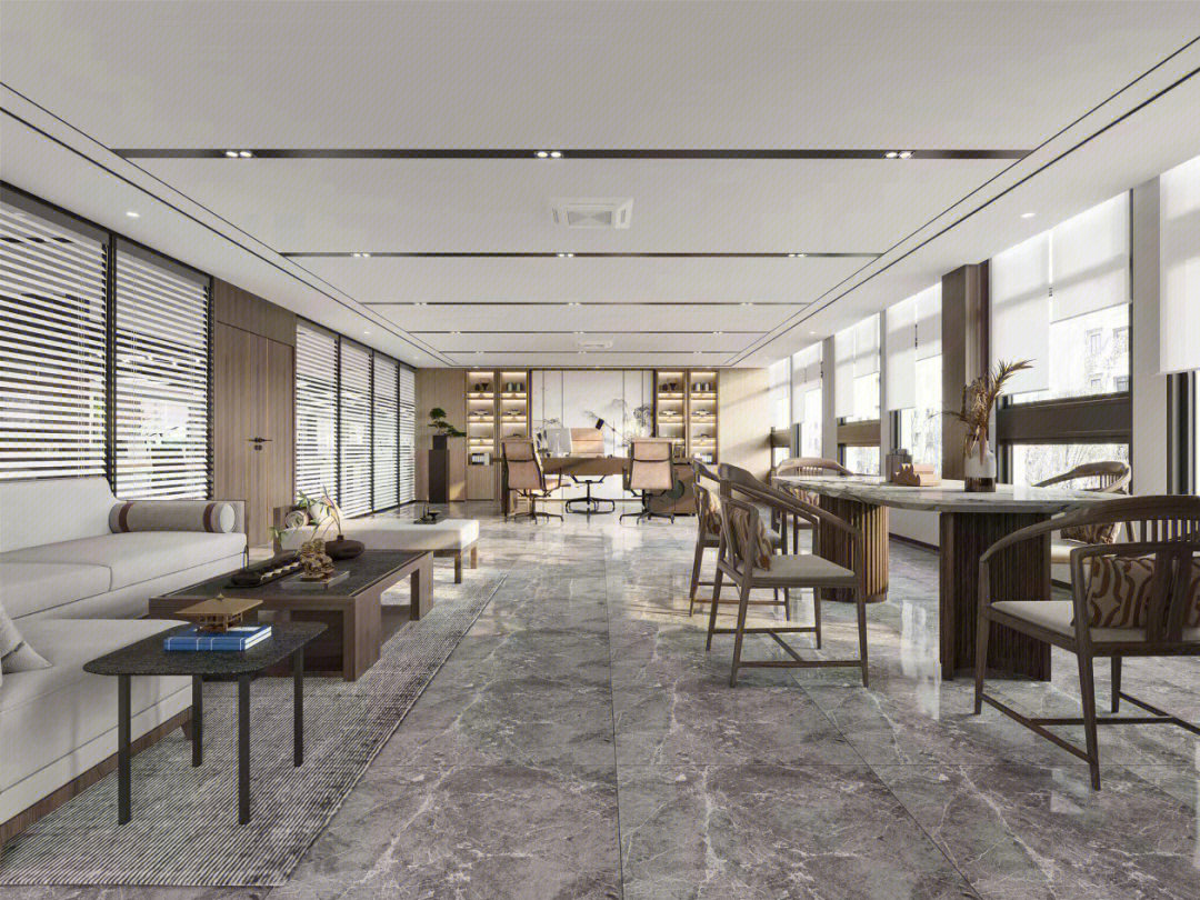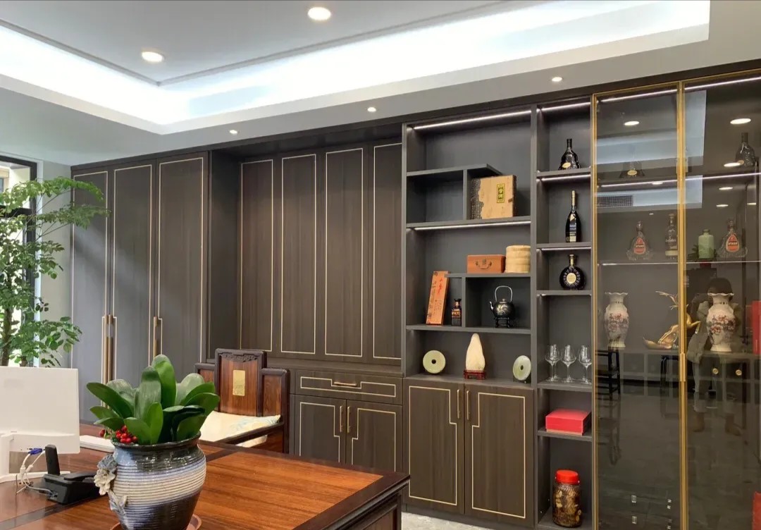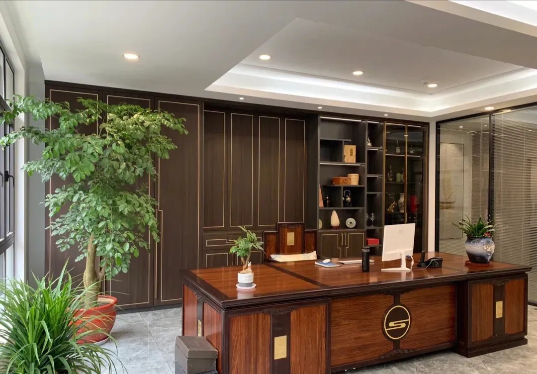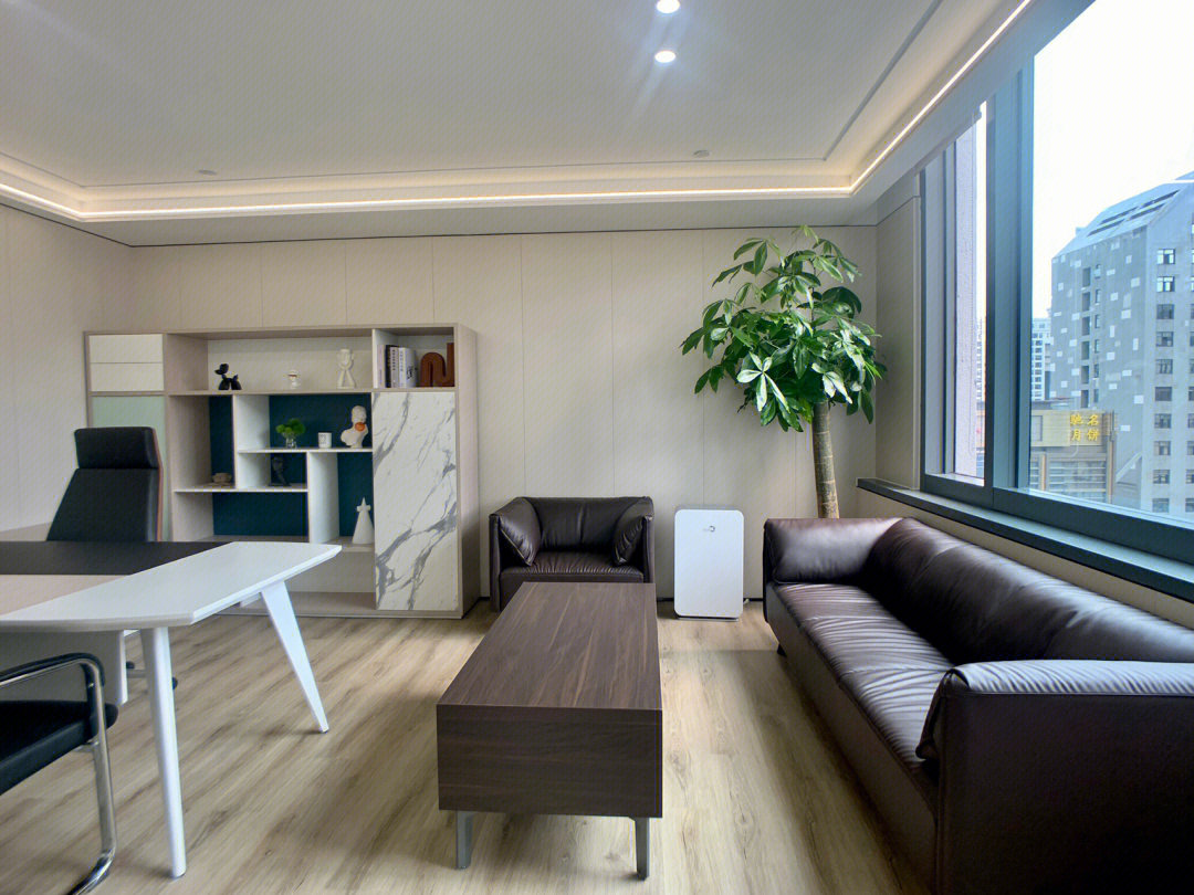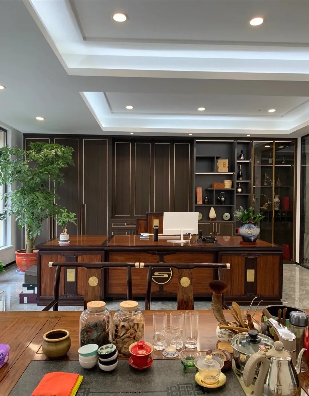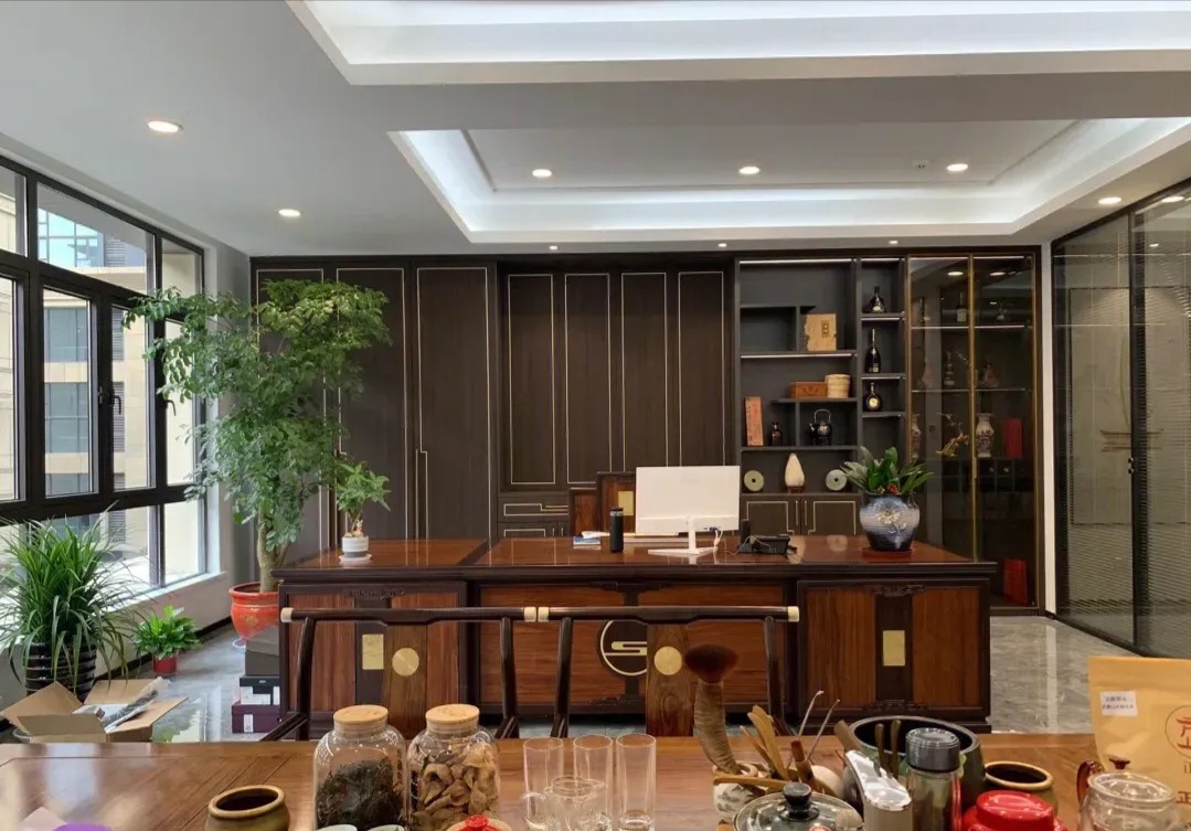 大气,新中式风格办公室。新中式风格的办公室,柜子实景非常大气,定制的柜子到顶到边,收纳空间强,与桌子搭配的相得益彰。营造出一幅清雅的画面,一份怡然自得的心情,这种风格的办公室整个环境蕴含了传统的中式文化,弥漫着古朴的气息,又充满了生机勃勃的朝气,让我们能够精神气爽的投入工作,无不散发着浓浓的文化意境。