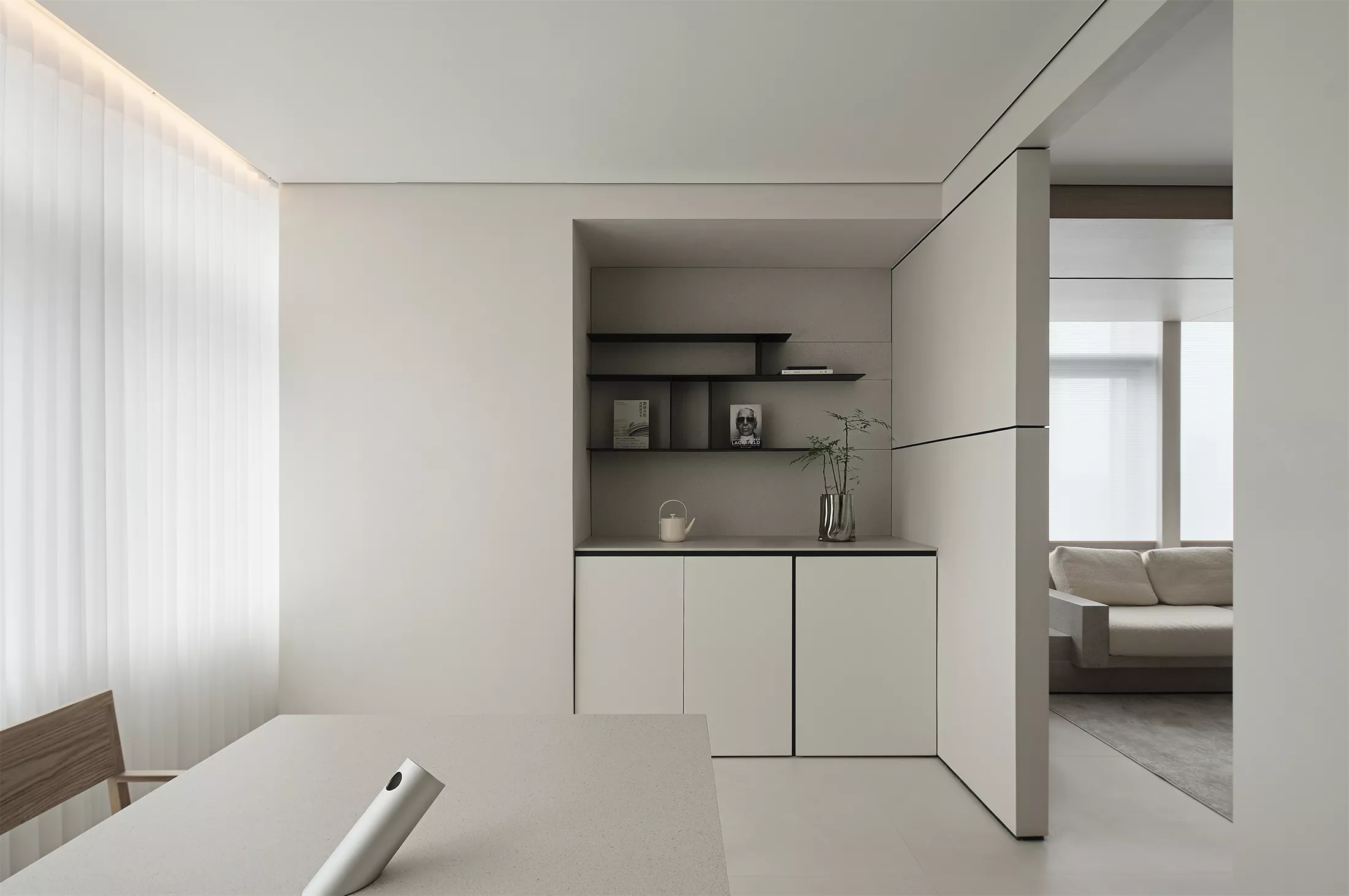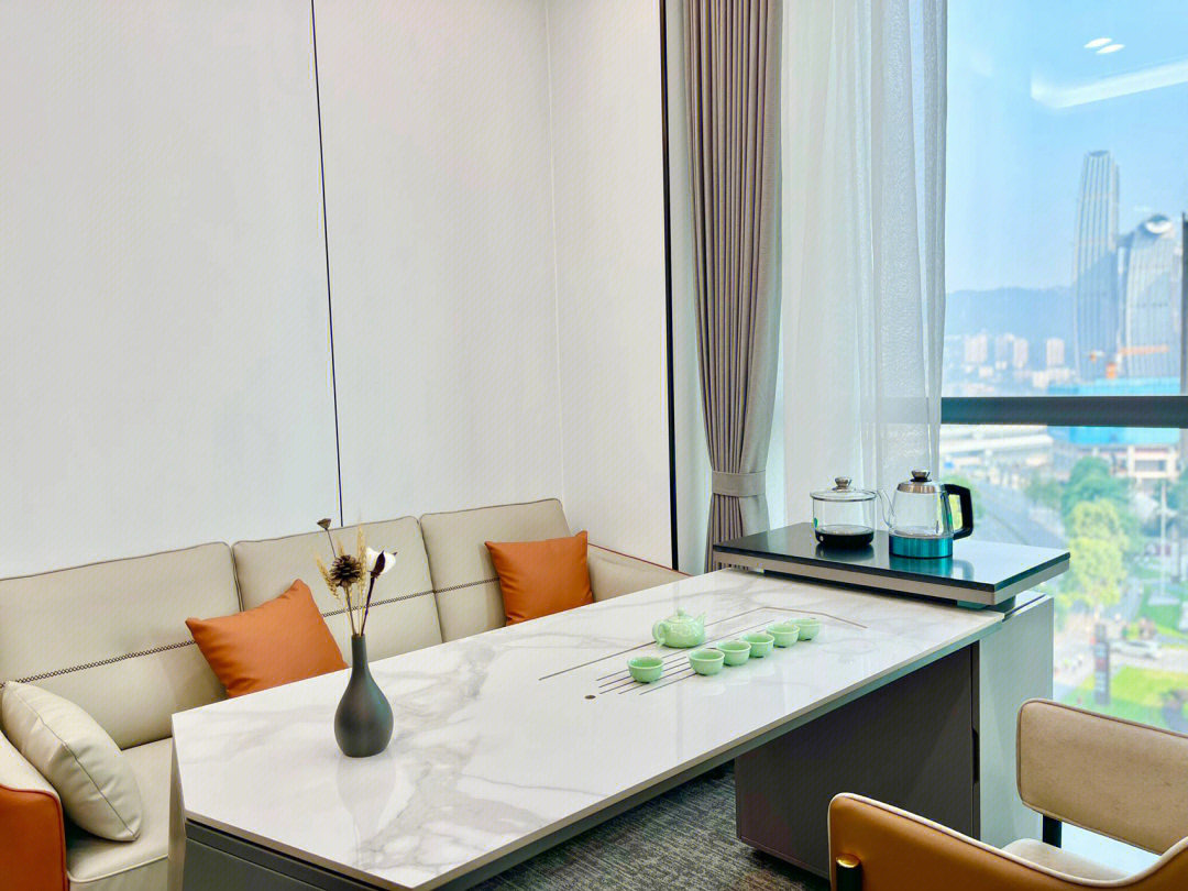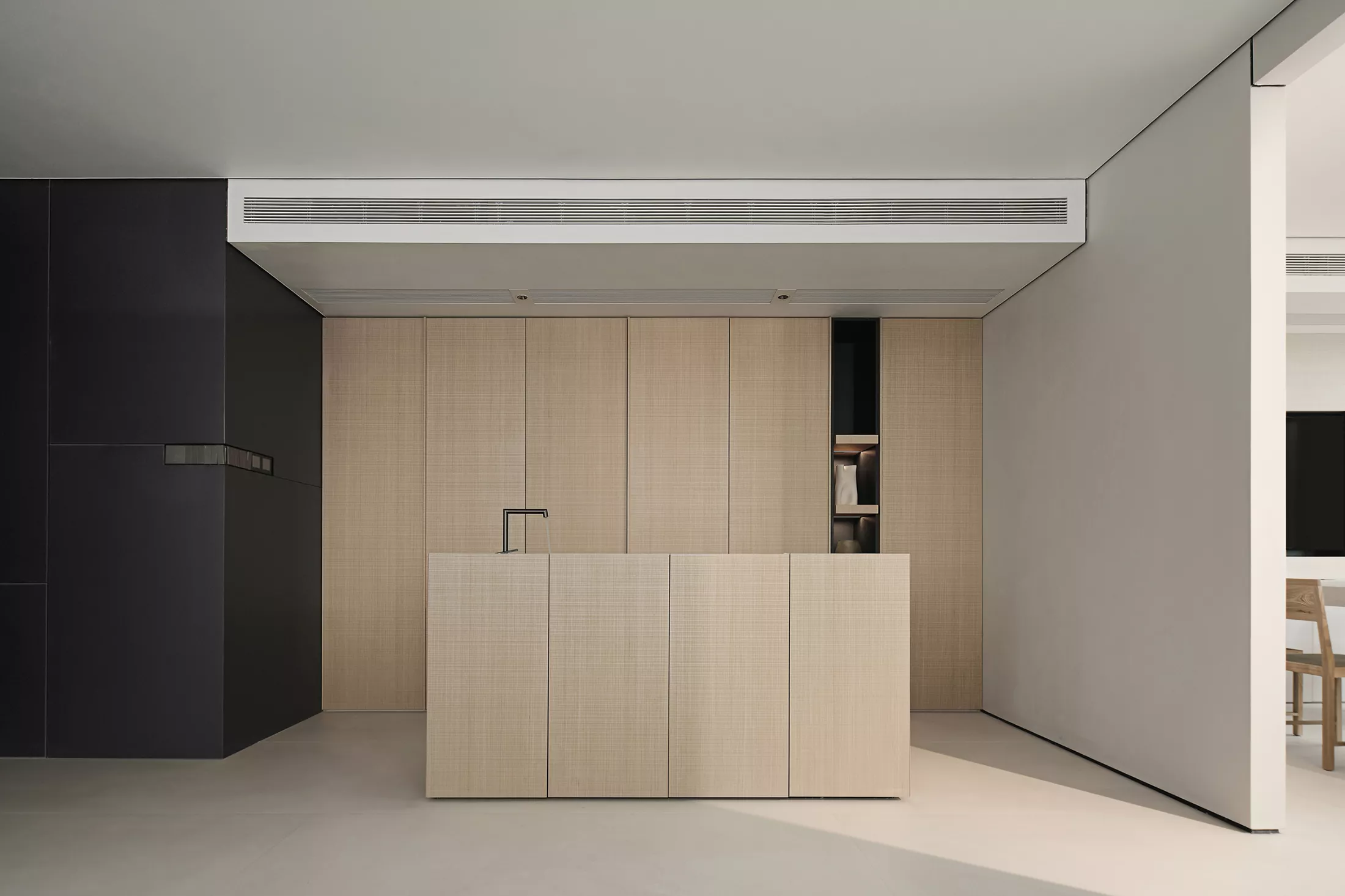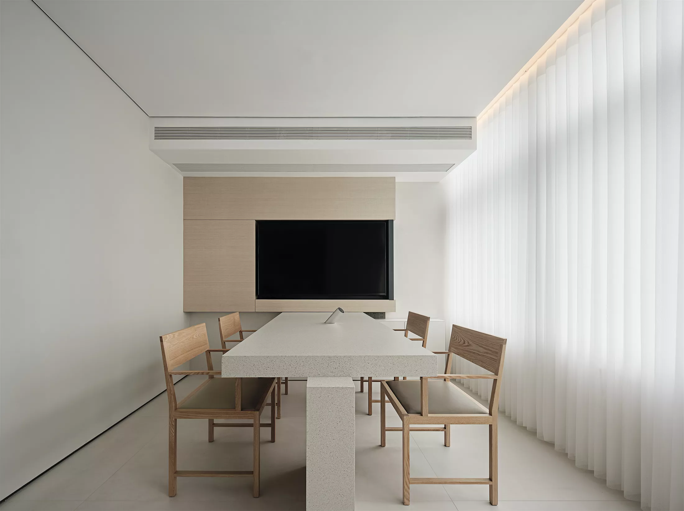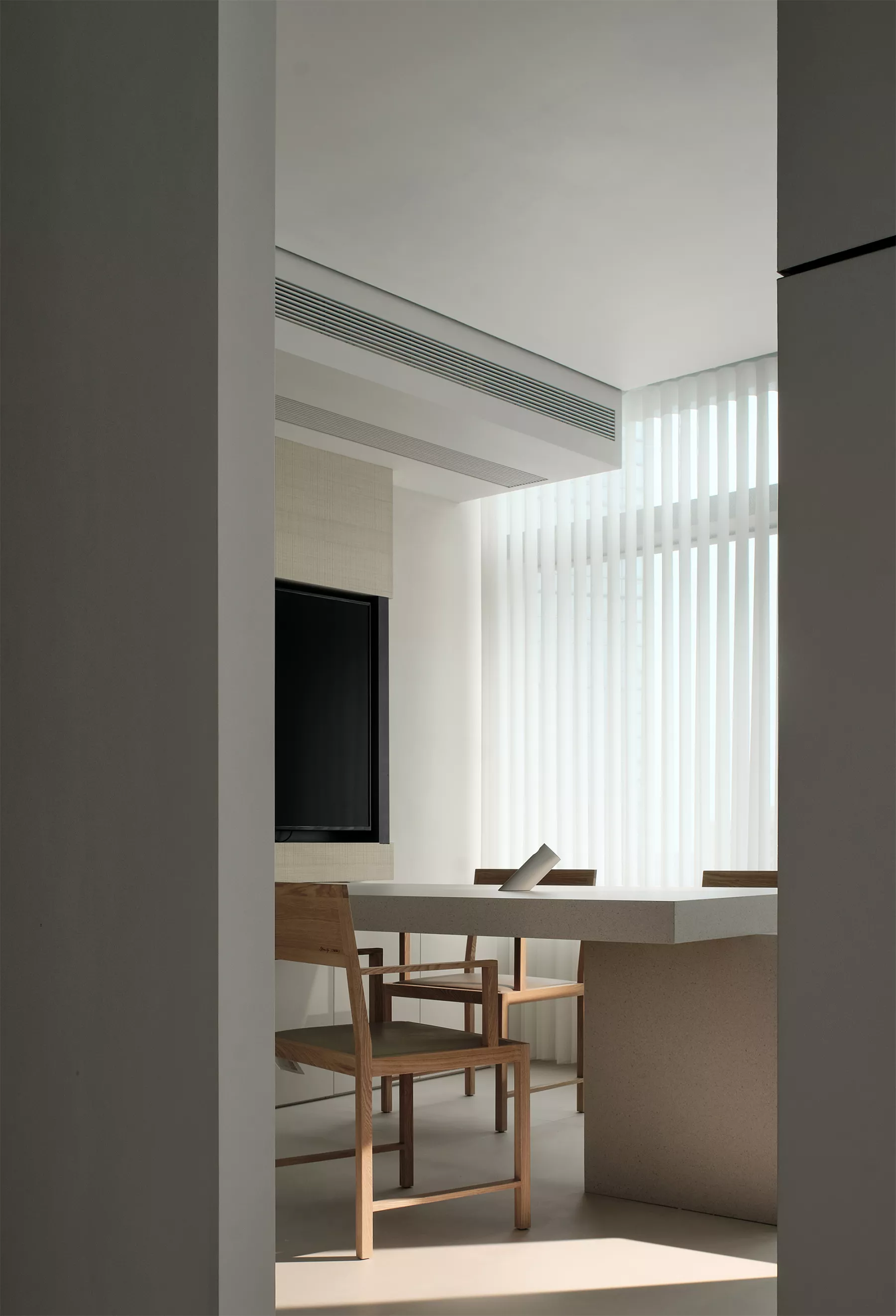 自然有形,却是无界的存在。水吧延续线条的灵动感,以岩板为主要材质,点缀提升整个水吧的层次感。走到最里面的正式洽谈区,动静相蕴,与空间意境相互呼应孕育出清新之风,给工作洽谈氛围间,赋予思维上的跃动性。