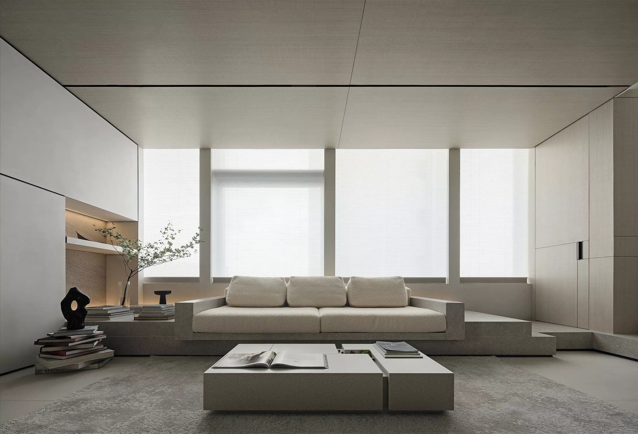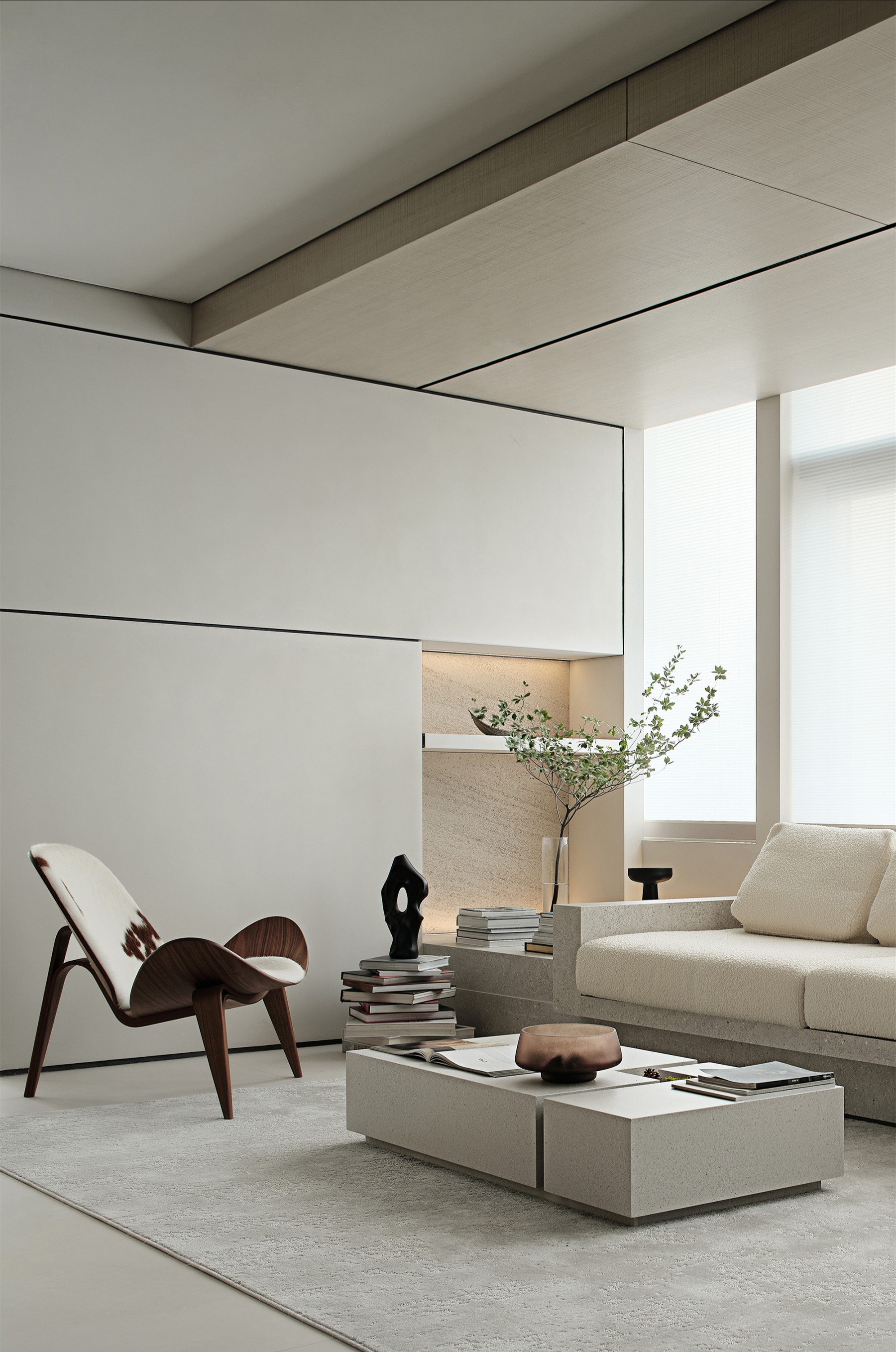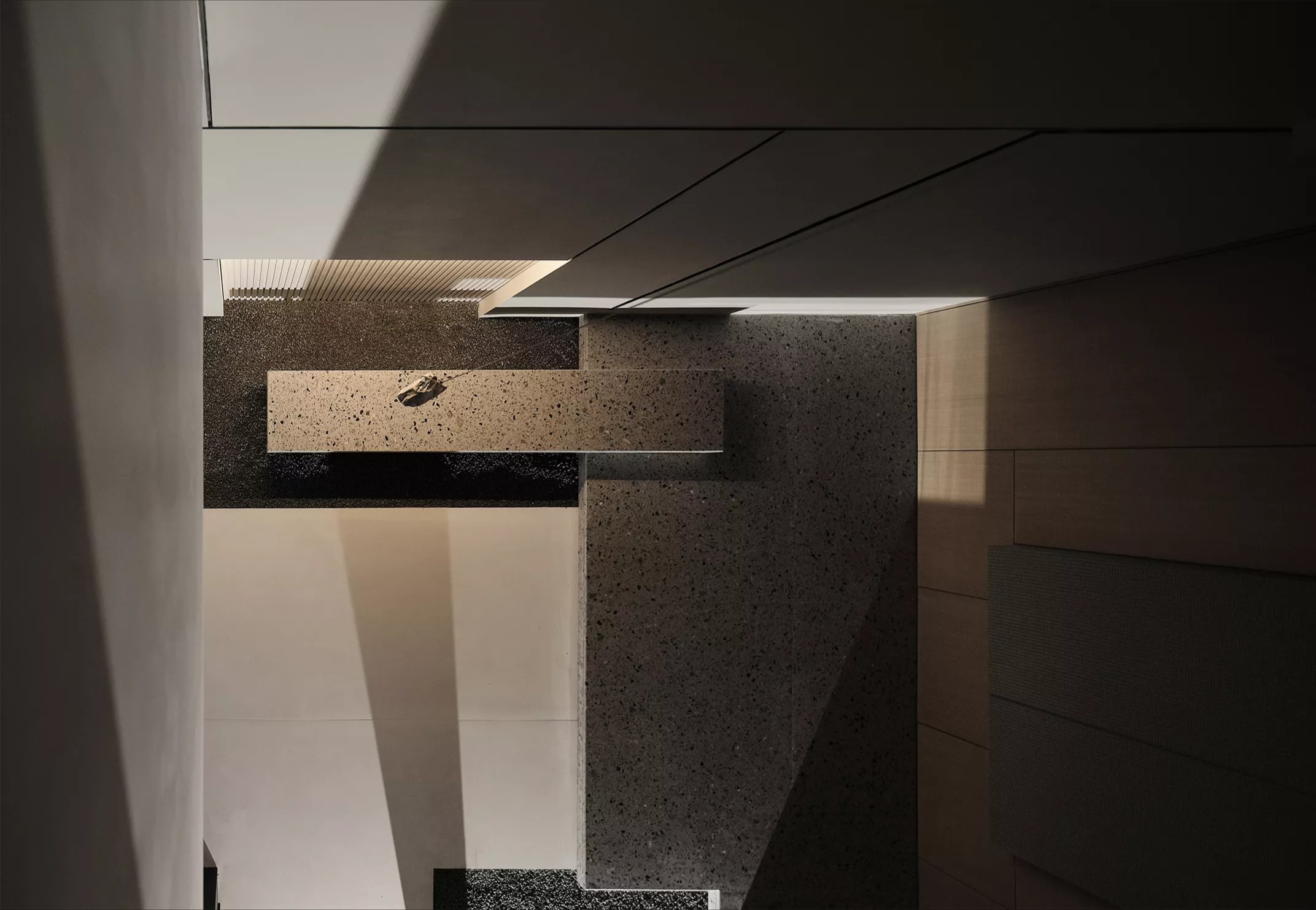 锐界设计 · 蕴于无华走进好奇的第一道景,自然原石映入眼帘,被大自然的鬼斧神工雕刻的石纹,变化万千,灵动莫测,具有方向性和动感,在这个线条分明的空间里追寻自然美态,以高挑简明的空间体现出它的唯一性,结合技术的力量将自然的本真投射其中。