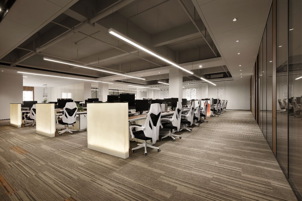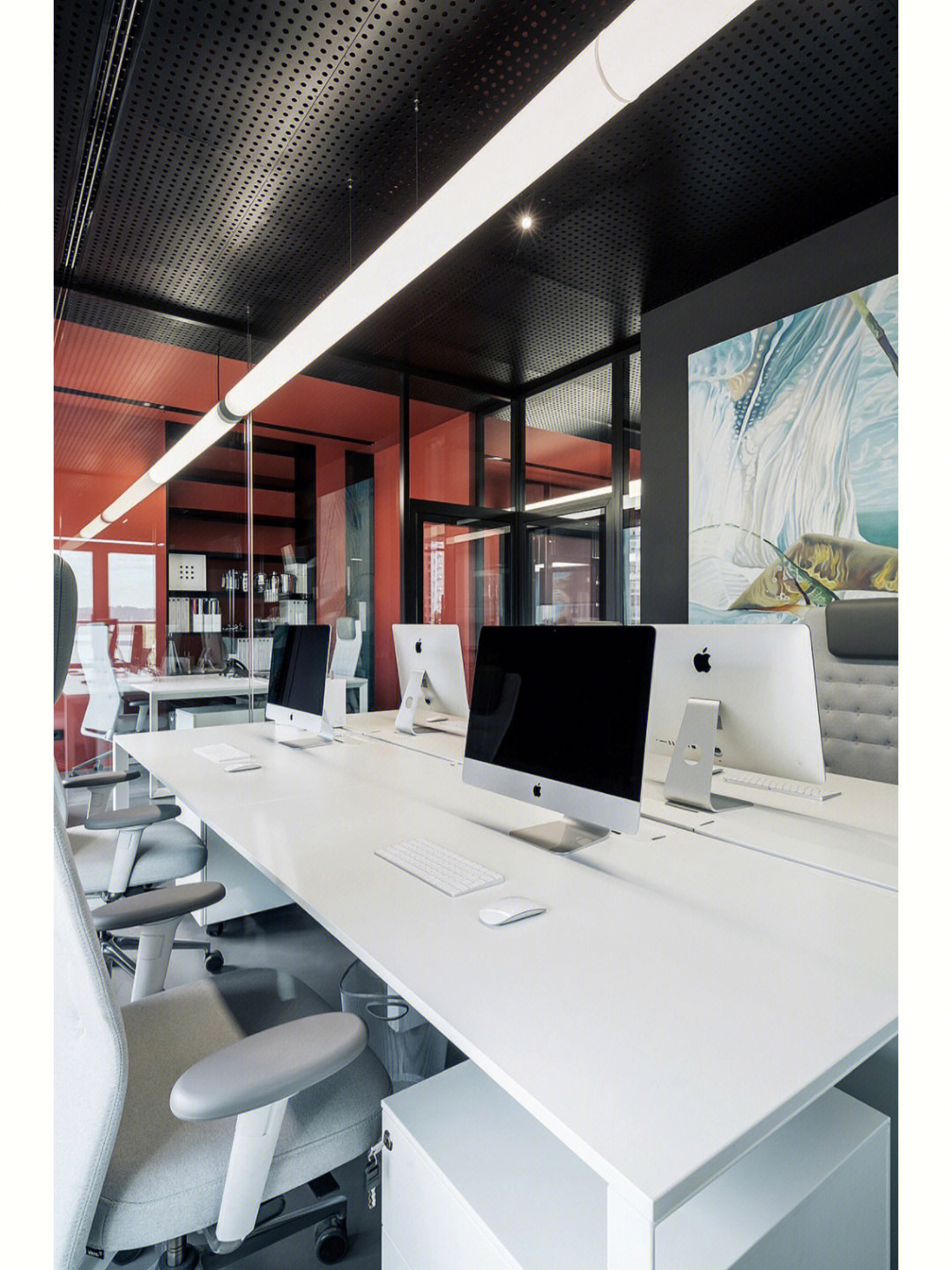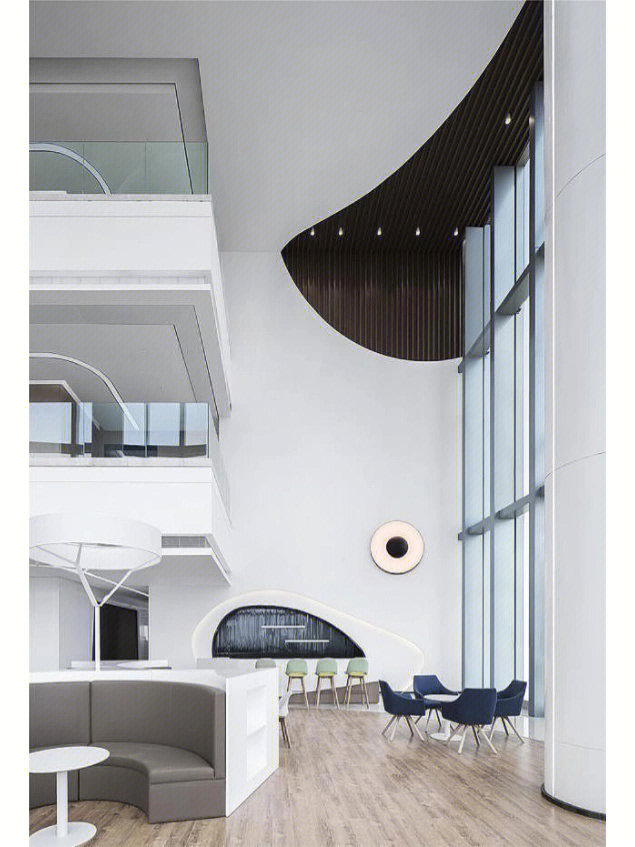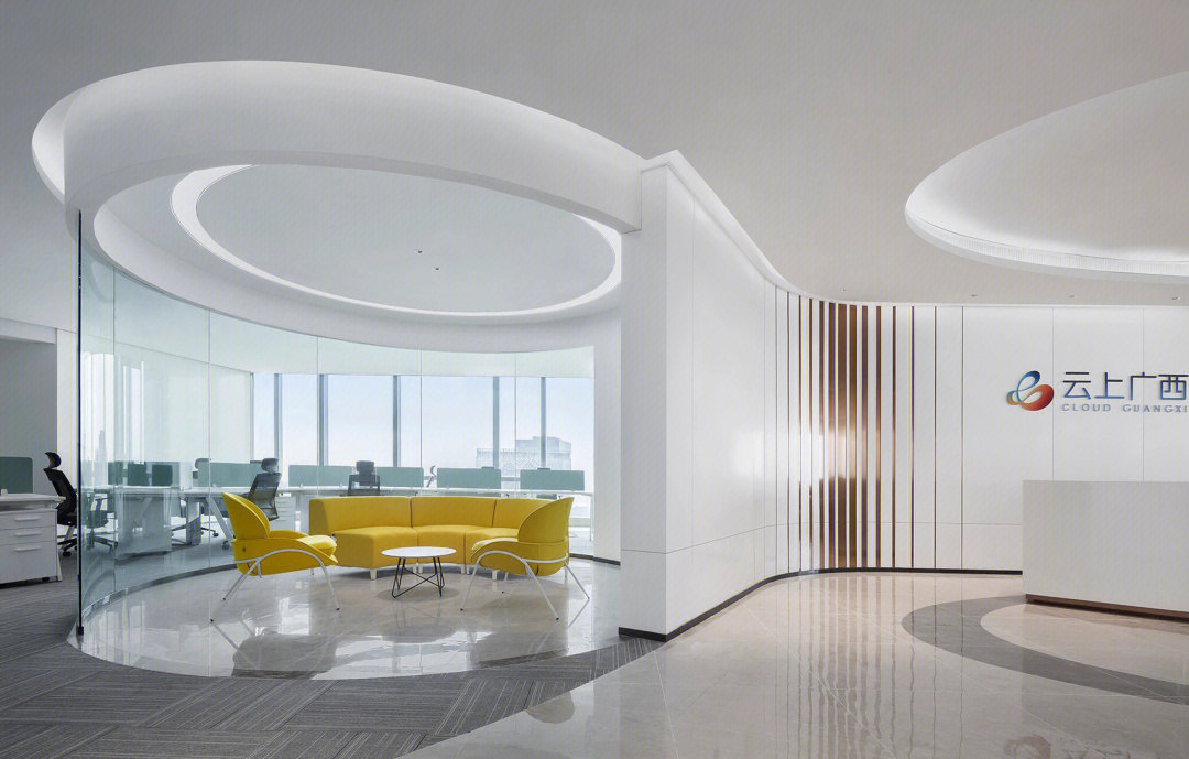 弧形房间边缘增加了公共空间的柔和度和趣味性,而黄色线条和LED灯条的嵌入为整个空间增添了动态和现代感。暗藏式的洗墙照明系统、装饰性景观元素和设计得像高尔夫球上的超大圆点的纹理天花板,强烈地刻画了两个休闲社交区域的舒适氛围。大理石材质的运用,提升了俱乐部的质感,并用于标记一些非常特殊的区域,如悬浮的接待台。长虹玻璃和透明玻璃的交错使用,增强了公共与私密空间的对话,创造了一个有趣的视角。