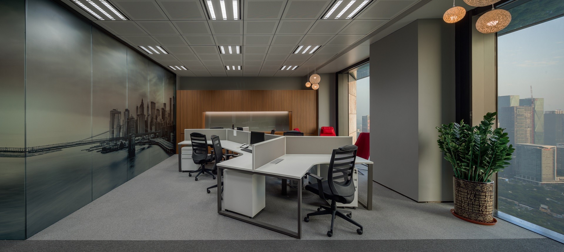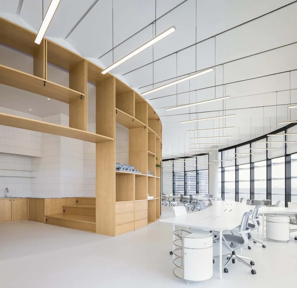 合理的空间划分和灵活的可拆散办公家具,不仅为为企业提供了灵活的办公方式,还提高办公空间利用率。相对独立的茶水间,在满足人们会面、办公、娱乐需求的同时,也不影响到其他员工的正常工作。吧台是焦点所在,同时它还是独特的视觉地标,可阅鉴杂志的同时饮一杯醇厚的下午茶,在粤海天河城俯览美景,成为了大家必到的向往之处。为台湾贸易中心打造高效性、创新性、高颜值的新型实用的办公空间。
