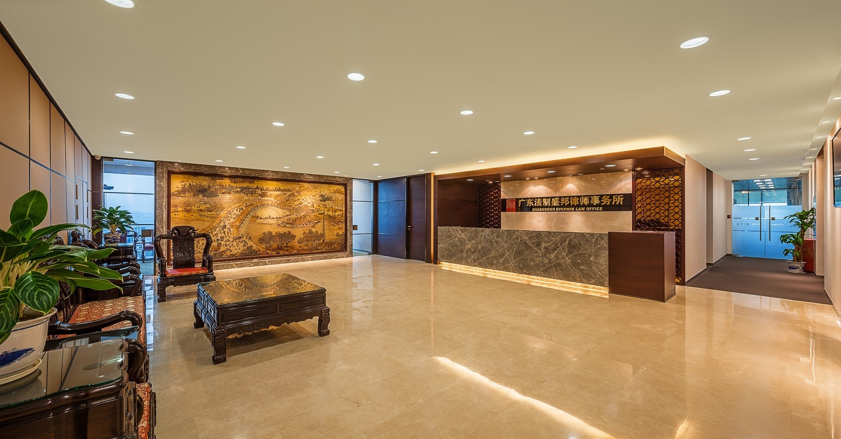 为了在传统中突破,既充分尊重律师事务所专业严谨的面貌,又可以展现法制盛邦的进去前瞻的精神,设计为公共区与办公区中呈现出两种不同的风格。公共区域较为保守,红木的家具更能突显企业的底蕴、严谨和专业的风格,让沉稳典雅的环境更具精致耐看的细节,在访客心目中留下难忘的印象;明亮宽敞的办公区提供了丰富而又细致的体验,打造一个高效能的办公空间,助力企业新发展。