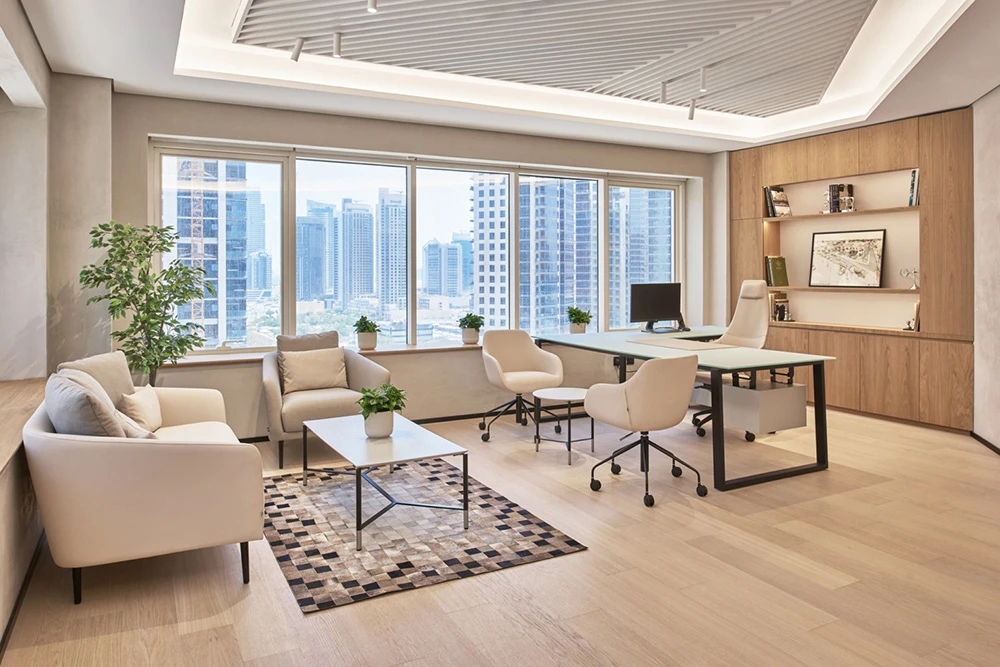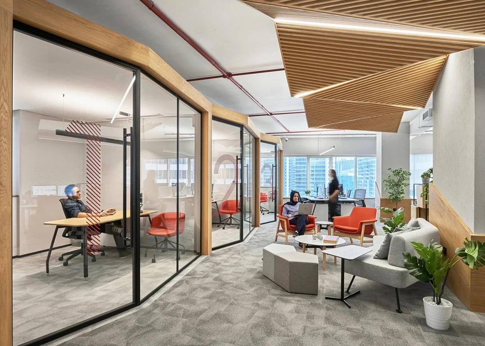 打造身心健康且活泼生动的办公环境至关重要。我们将传统的办公模式革新为一个更为敏捷的场所,并设置了开放式工位。为了营造激励人心的氛围,我们还添加了创意绿植、充满生机的品牌元素,通过多元化的座位设置,员工对窗外的景观一览无遗。