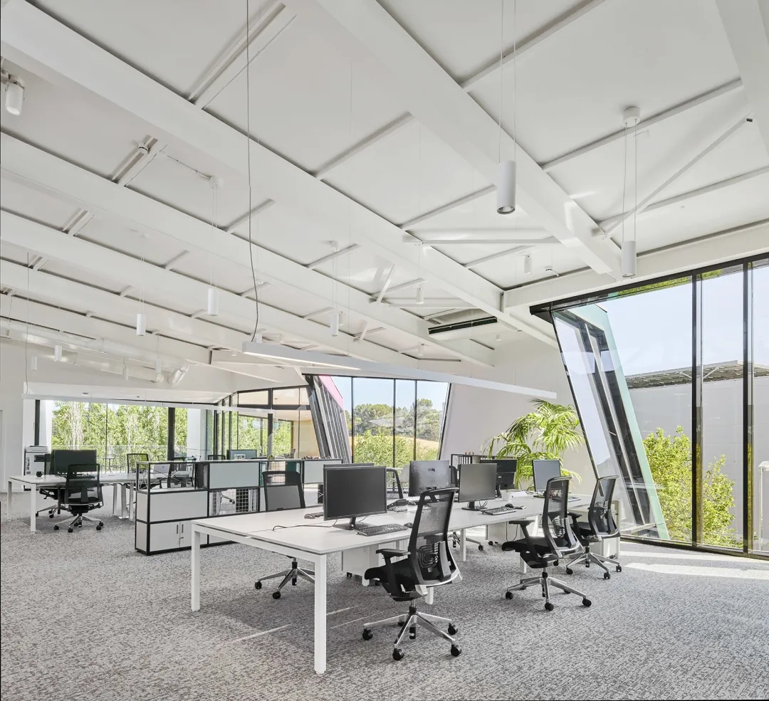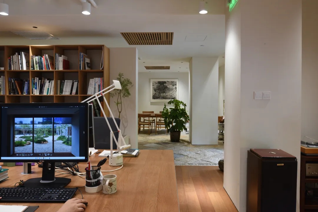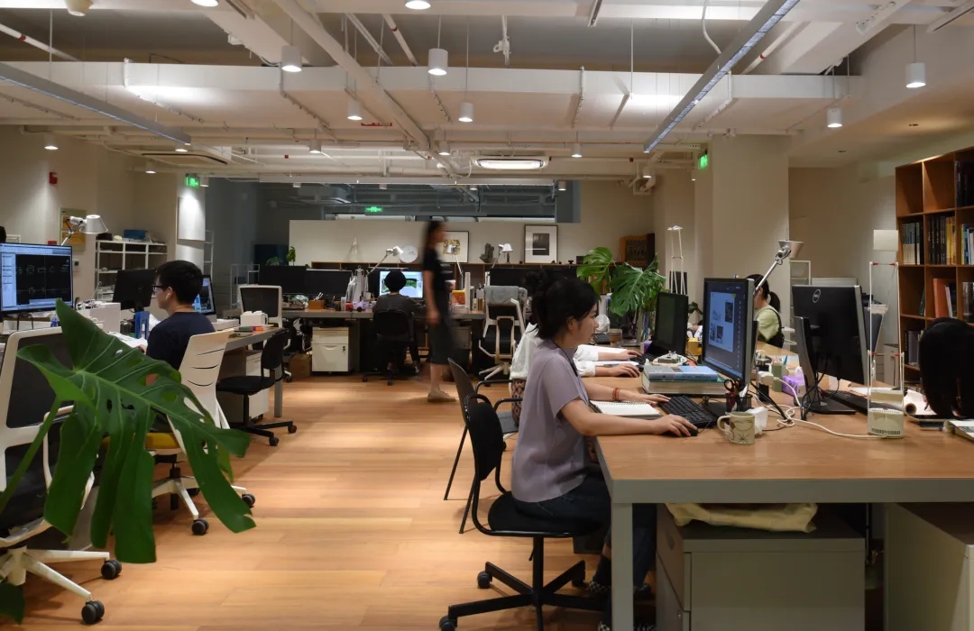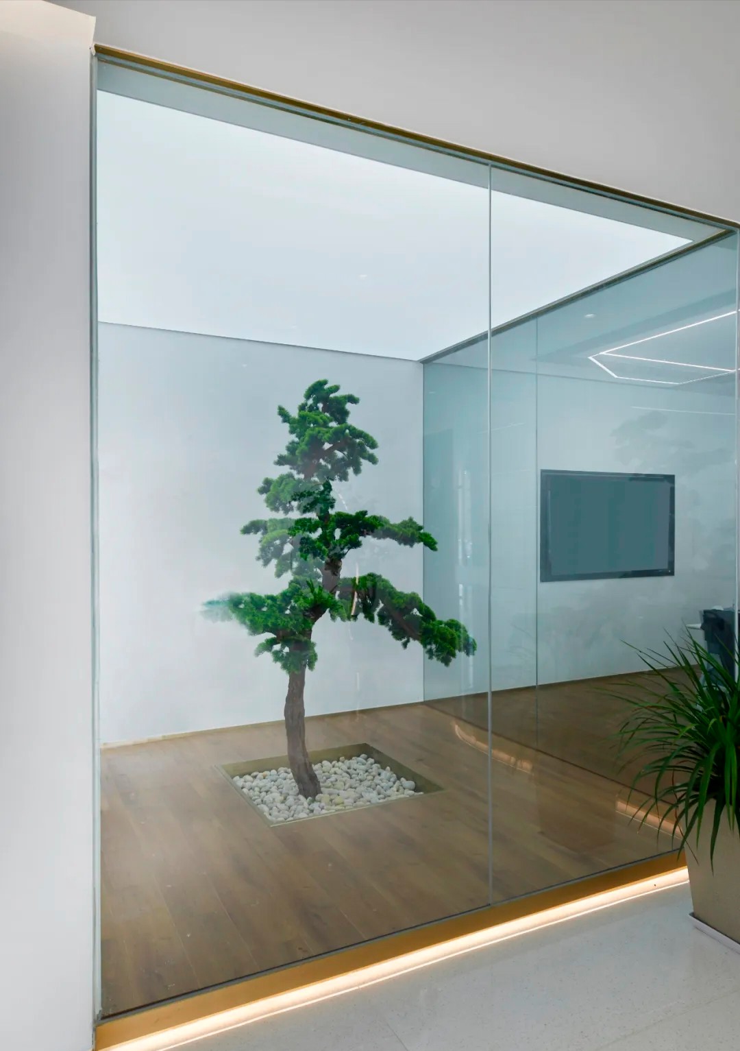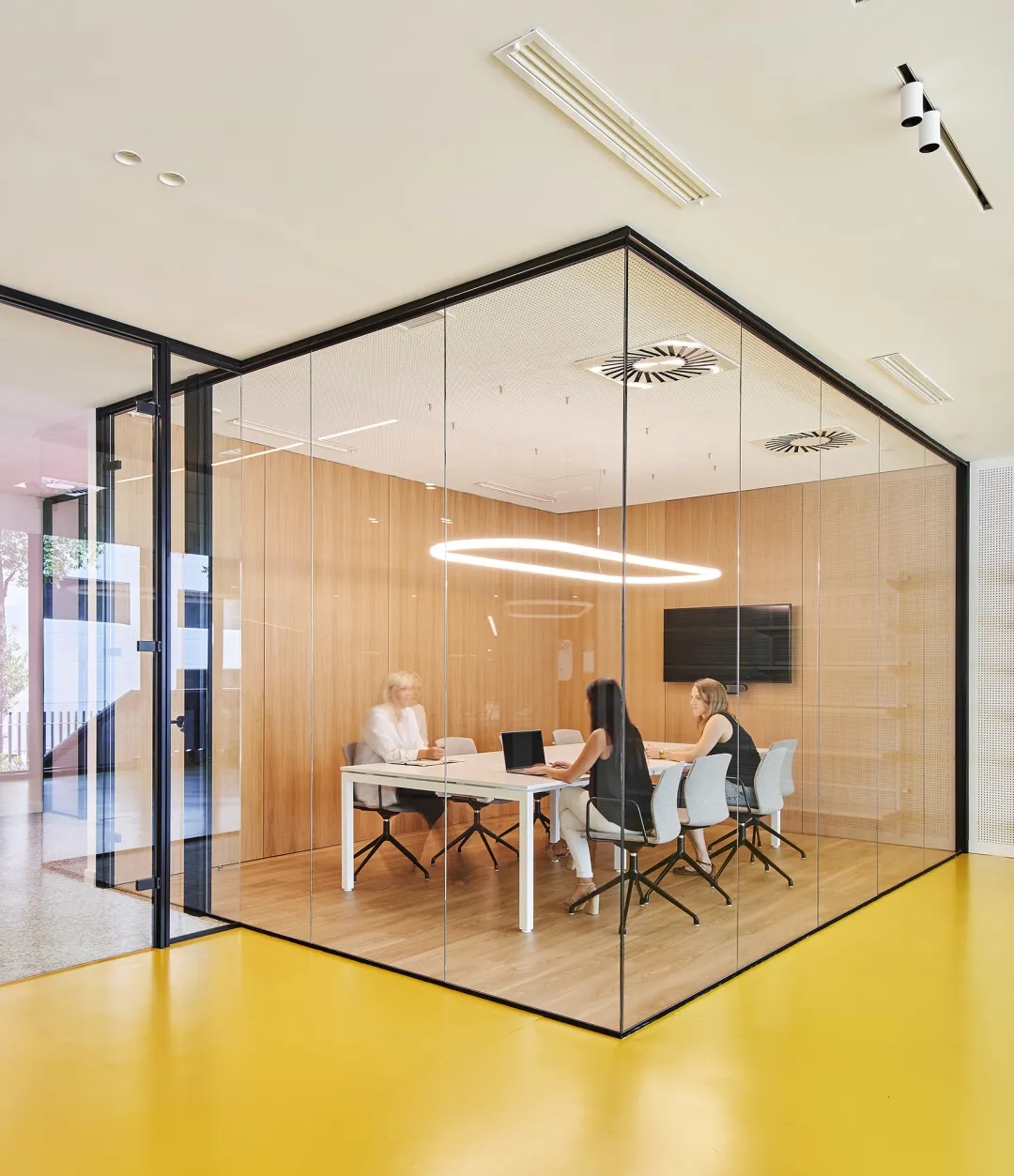 建筑的第三层专门服务于公司的创意团队,不同类型的会议室以及带有3D打印空间的工作室都是遵照相同的逻辑来设计。该楼层同时还包含管理层办公室、一个开放办公区和主会议室,其中主会议室采用了落地式玻璃墙,以张扬的姿态回应了该楼层5米的净空高度。