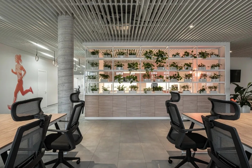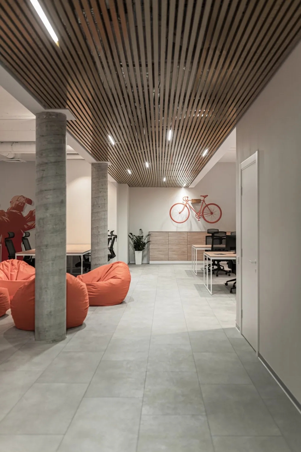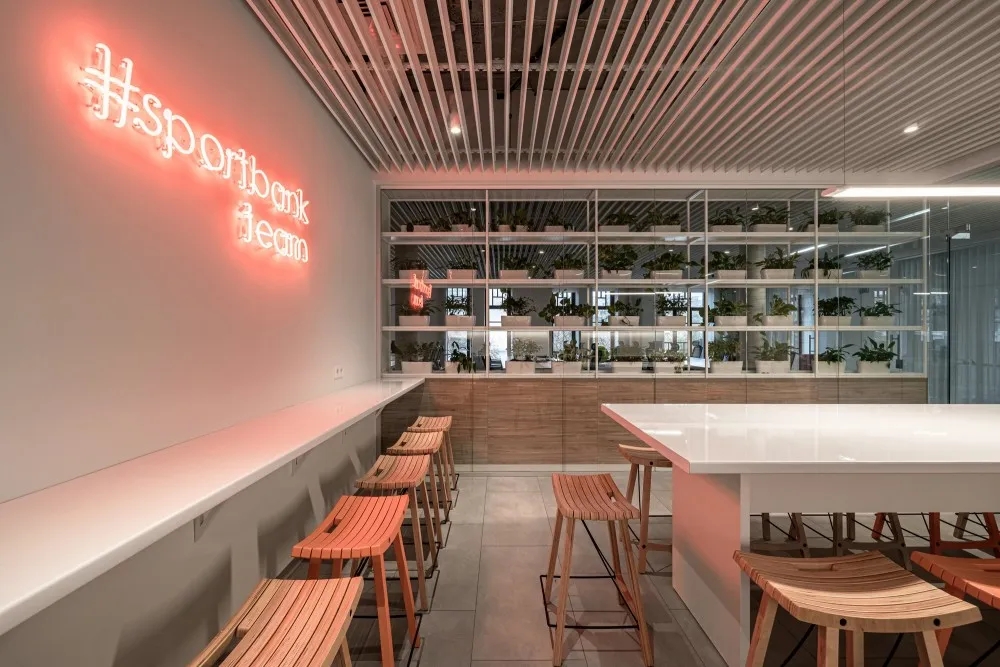 乌克兰基辅的体育银行营造了一个舒适的办公空间环境,内饰体现了现代、轻盈、动感的特征,与体育银行品牌本身的性格完全一致。根据TAWOOLRET工作室的传统,内饰采用斯堪的纳维亚风格,充满个性、运动元素。因此每次上班旅行都成为一种乐趣,员工在办公室感觉就像在家一样,房间光线充足,室内使用了很多木元素。在宽敞舒适温馨的会议室中,每个细节甚至是天然地板的气味都让使用者放松并同意任何条件,这里的一切都有利于轻松愉快的谈判。从视觉上看,办公空间被架子隔开,里面装满了许多植物,营造出一种“绿色”墙壁的感觉。内部的重点区域是厨房,在噪音和气味方面与办公室完全隔离,橱柜家具结合了斯堪的纳维亚风格的所有精华并满足了实用性、功能性和视觉简洁性。