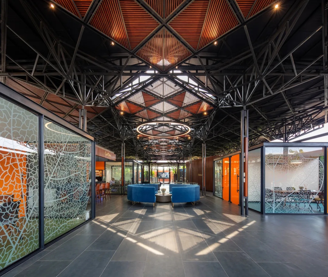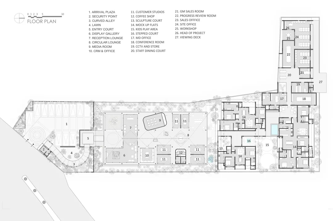 三个关键组成成分——营销办公室、体验中心、和施工现场办公室是这个设施的核心。穿过项目的旅程显示出巧妙复杂的空间序列,由建筑、景观和室内设计的周到融合所精心打造。视觉框架和体验层层展开,以保证观者始终被吸引和着迷。
