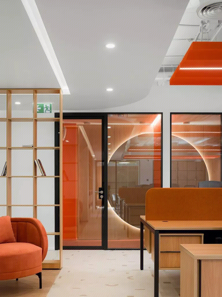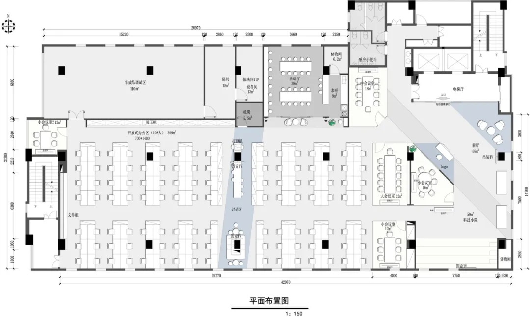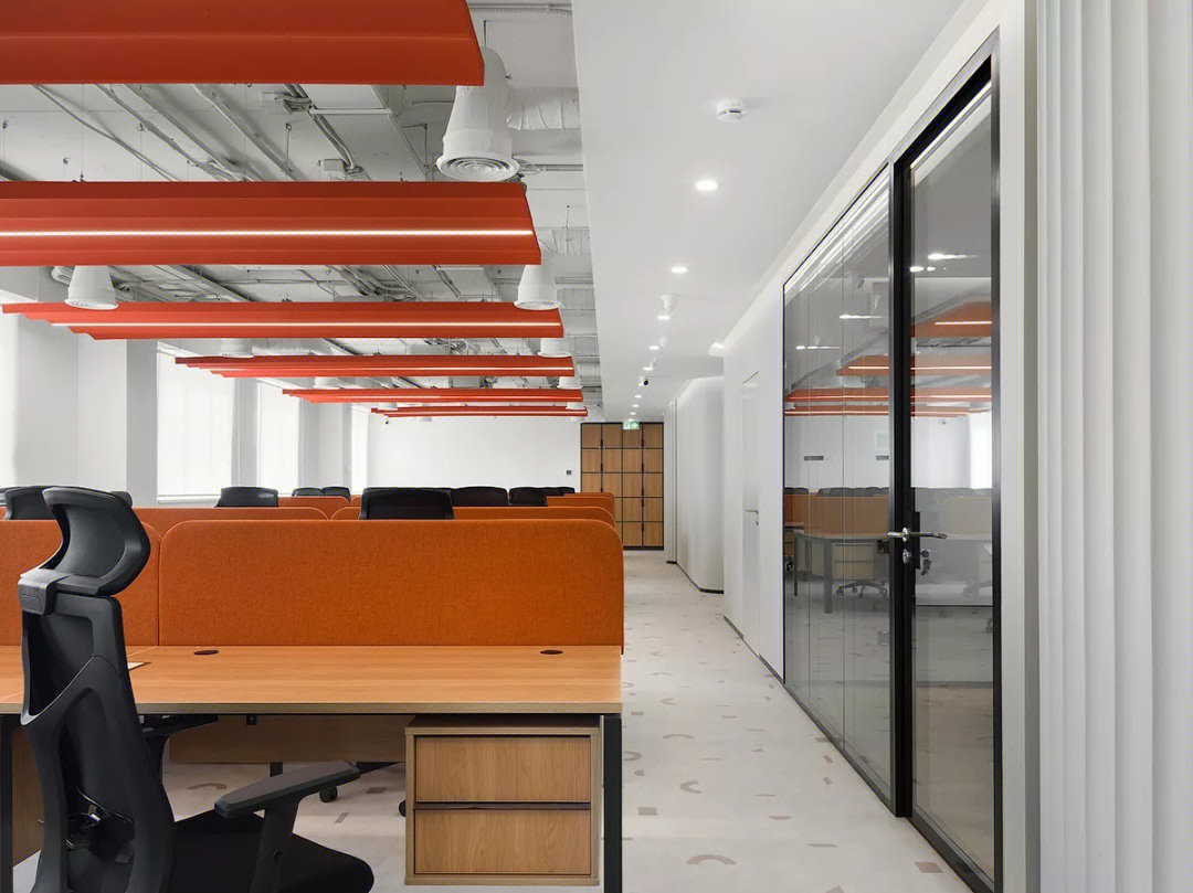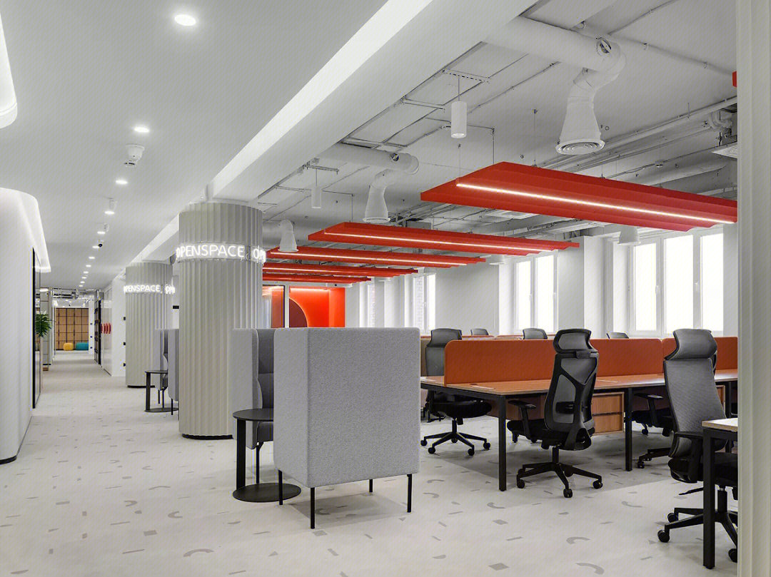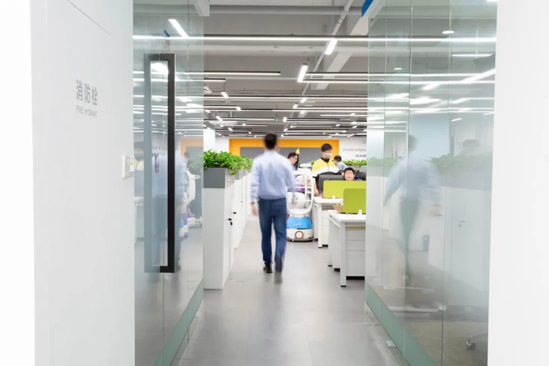 由于公司发展迅速,原来的空间已经太小。这项任务不仅是空间的扩展,还包括研究人与空间环境互动。设计师需要在尊重和反思擎朗的品牌形象的同时,与客户一起,创造一个开放和封闭的混合空间。开放性:没有独立的单人办公室,所有人员都在开场时办公区;独立性:会议室、咖啡吧、科技小院的洽谈区,设置各种空间以鼓励开会或者作为私人空间,让员工可以自由使用。