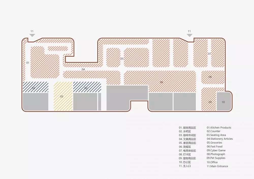 办公室平面的划分与西伯利亚铁路的地图相呼应,不同的功能区都对应着铁路地图中的不同地点:接待处如同一条穿过乌拉尔山脉(Ural Mountains)的隧道,一个个工作区仿佛是铁路沿线的城市,会议室是河流,就餐区则是萨哈林岛(Sakhalin Island)。所有功能区的名称都以地图的形式绘制在空间的墙面或地面上,一旦进入办公室,员工和访客都可以沿着生动的地图找到目的地。