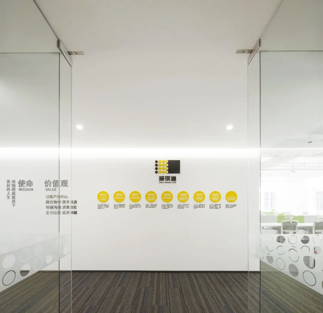 在严控预算的情况下,整体设计秉承爱棋道“以客户为中心”的价值观,突出人性化、现代感的设计理念,通过几何线形和色彩组合打造出了充满节奏、具有启发性的学习办公空间。