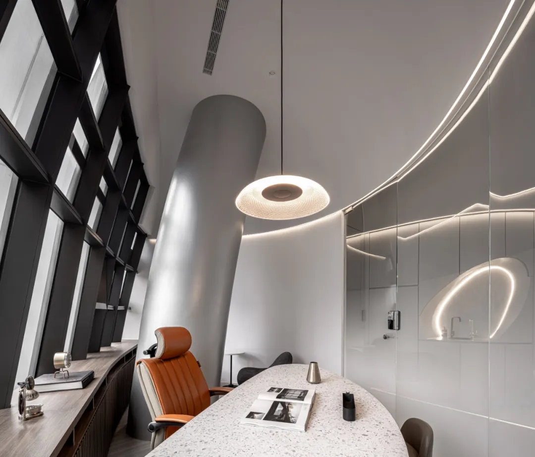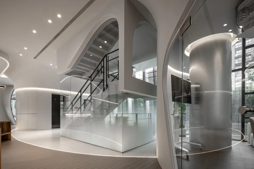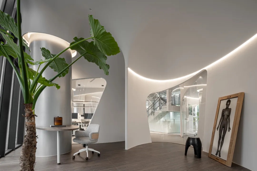 灰色水磨石,对立而统一打破边界,探知未来开放自由的动线布局赋予空间“生长”性打破刻板拘束的工作环境实现更具想象力与生命活力的留白空间