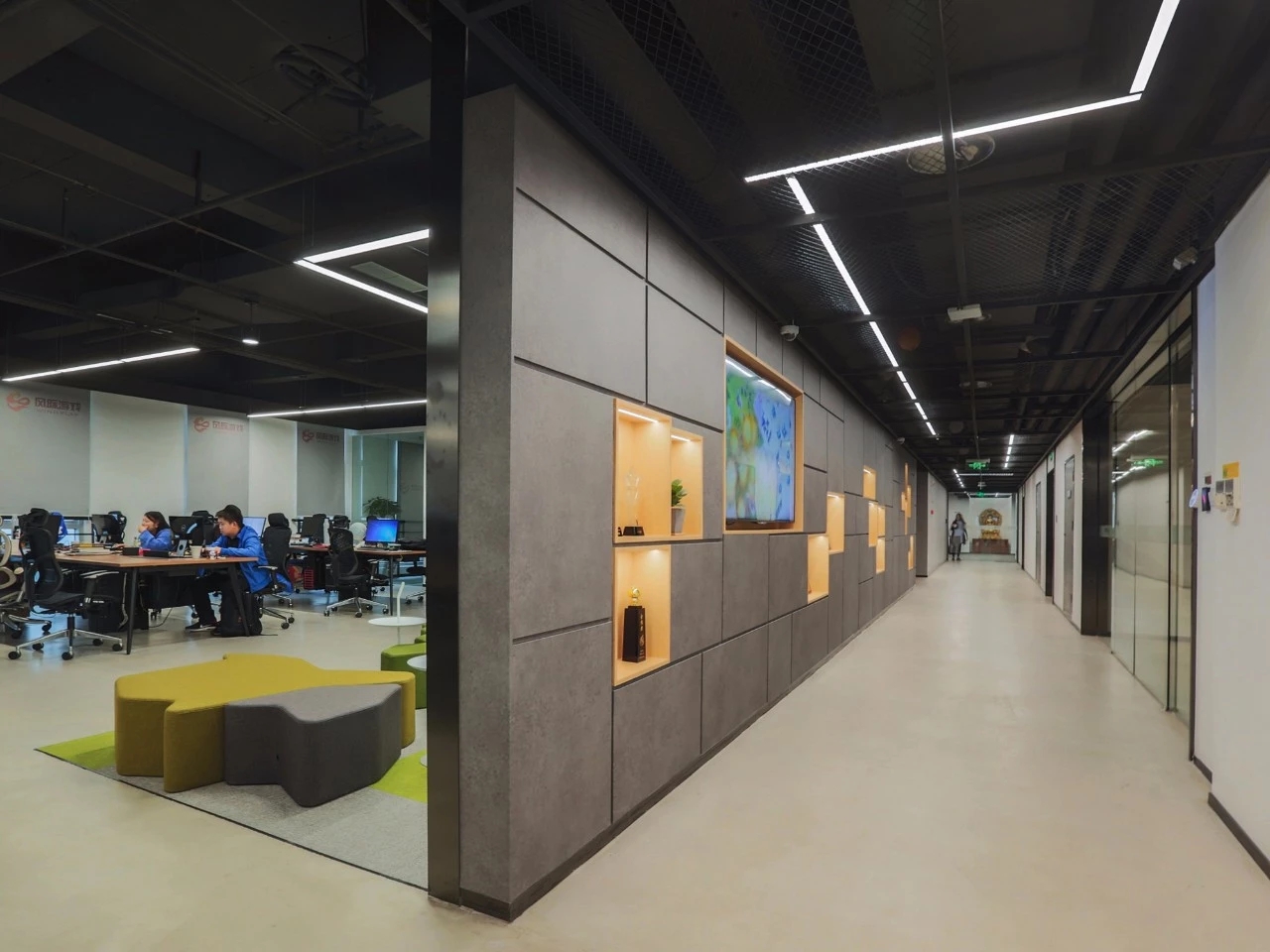 艺术涂料、木饰面与大理石的相互碰撞、融合,刚柔并济且温和有力,展现了医院沉稳且创新的专业形象。玻璃通透明亮,让空间有序相通,连续性的设计达成了人与空间的简单交互