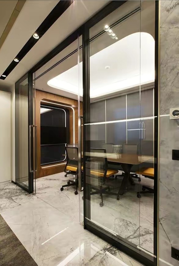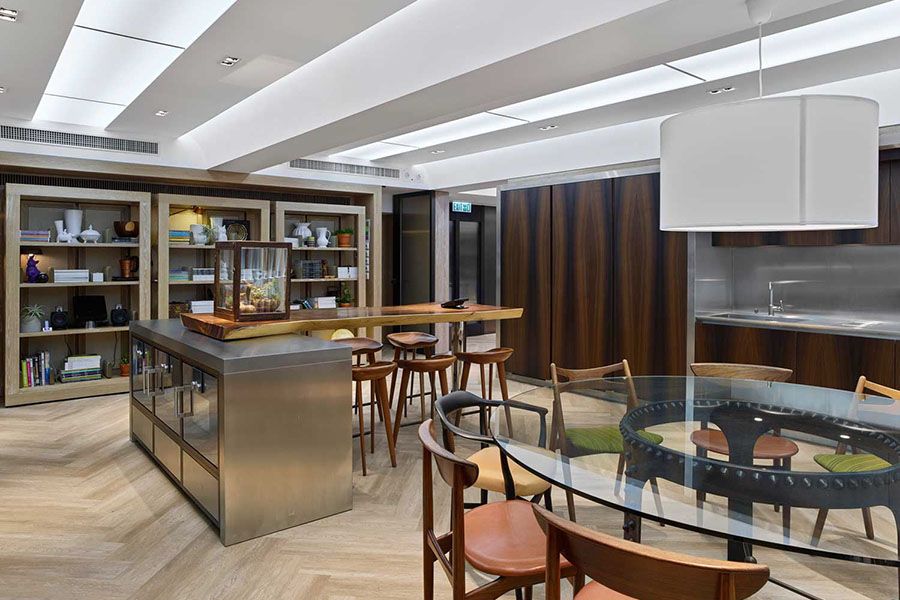这个办公室设计项目致力于在老板和客户之间创造一个互动的环境,以实现最大的效率。因为面积比较小,需要体现一种商务气息,在入口设有一个大理石的接待台和大理石的logo墙起到一个统一和协调。此外旁边设置了一个会议室和接待室,方便访客接待和洽谈。中间通道以避免阻碍用户的主要流通。然后,通道分为各种功能,包括工作区、董事室和休息区。