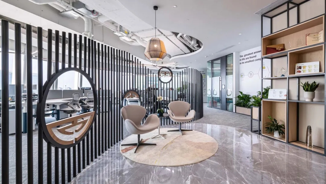 一楼,小门厅设个小景,汉唐风韵(日式小景),令人对深入探寻充满期待。紧接的是接待台与小憩空间(兼作微型大堂),穿越小天井便入得厅堂。