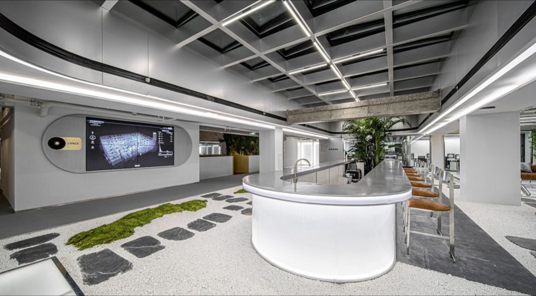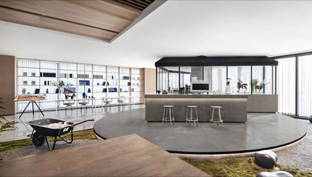 现代风大平层装修电视背景岩板+不锈钢柜子内嵌电视定制岩板电视机柜整体灰色调 木纹色柜体 整体太有感觉了进去就不想走了