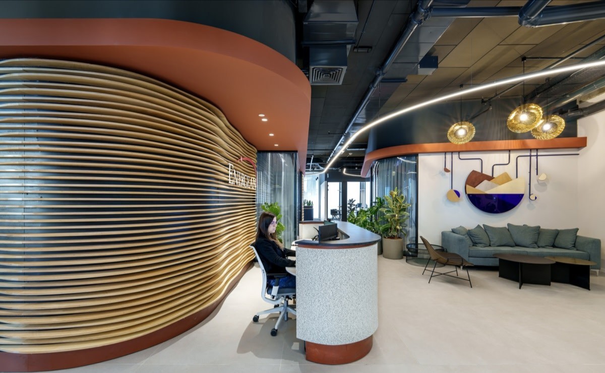 为了视野更加的开阔,办公室规划了从入口处看到房间中央元素两侧的玻璃墙。每个区域的玻璃墙都允许自然光照射到空间的其他部分。波纹木饰面覆盖了中心元素,模拟了海洋的分层和活力。
