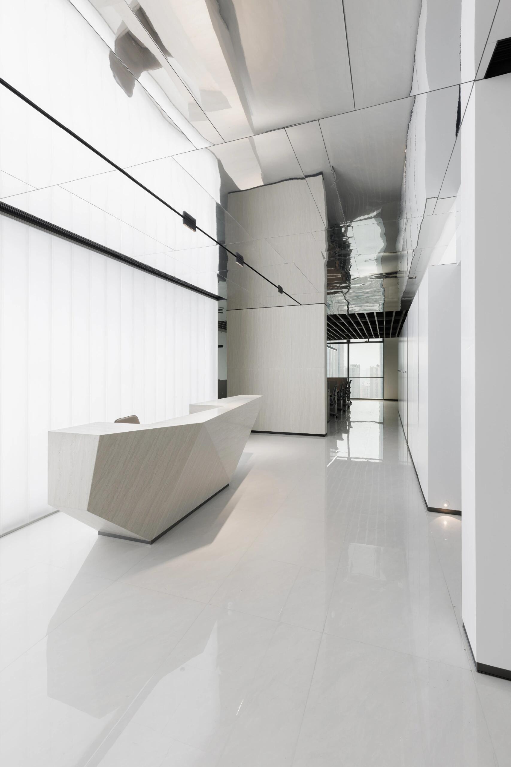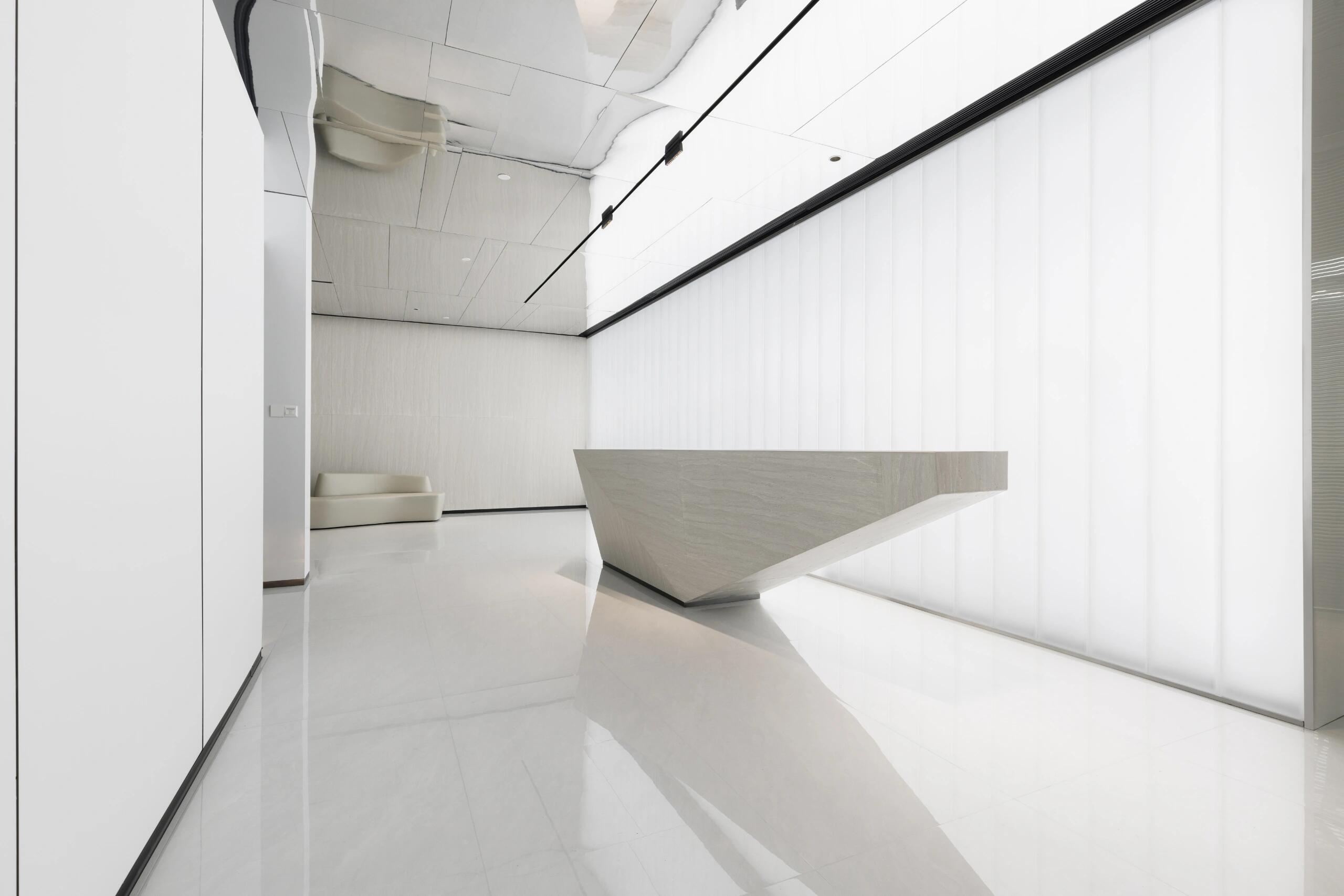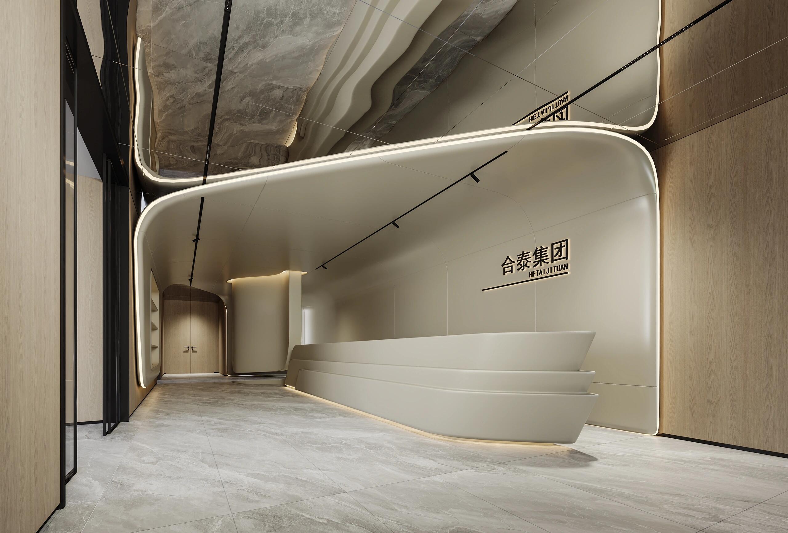 采用GRG材质,艺术涂料,不朽钢镜面,作为扩偏公司办公空间,采用帆船船帆造型设计表达公司扬帆起航。