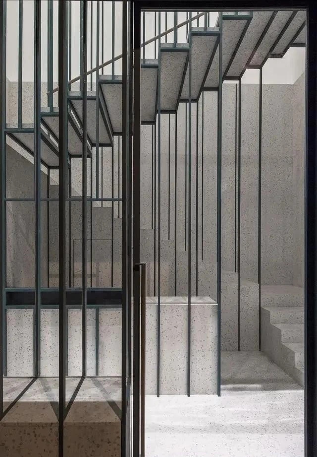 通过开发不同的结构要素-对柱子进行锤击处理,加剧了混凝土的特性;黑木壁板的垂直度;精致的铁和玻璃片既可以用作上层的核心和栏杆,其目标是提高商店的空间品质,并将注意力集中在其两倍的高度上。