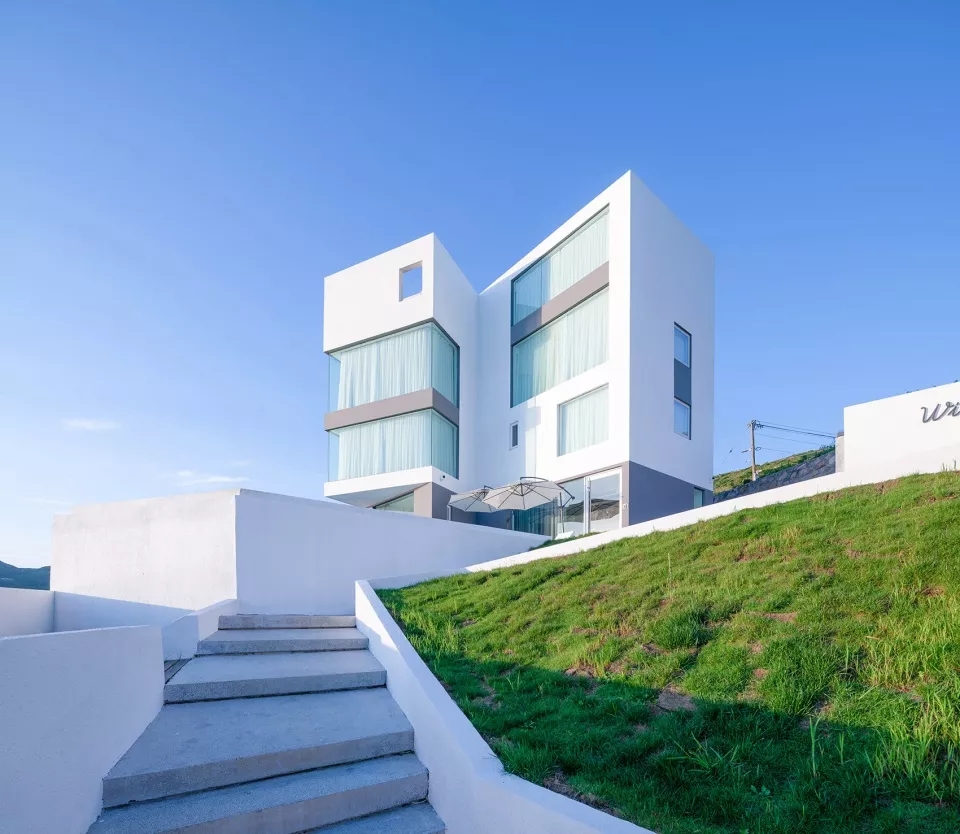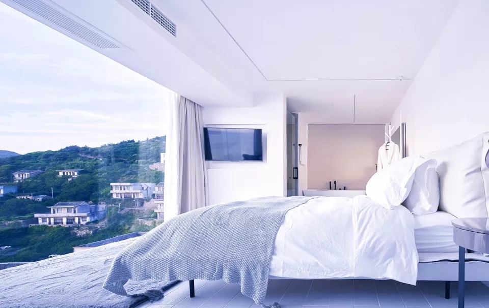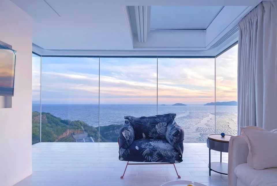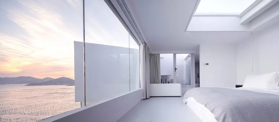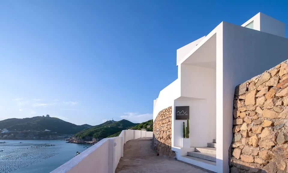 优秀民宿赏析|等风来,该项目位于浙江省舟山市嵊山镇,嵊山岛作为中国最东边的有人居住的岛屿,空气潮湿,时有大风乃至台风,业主希望面积尽量用足,尽量每个客房要有不同的感受,并且每个房间都要有尽量多的看海界面。
