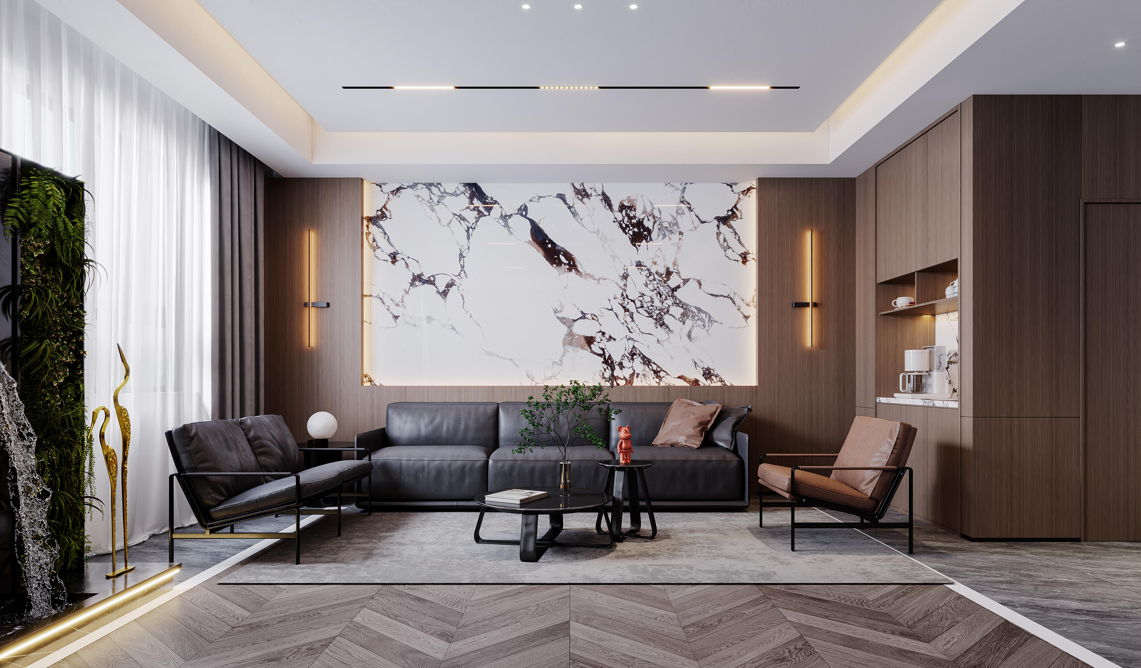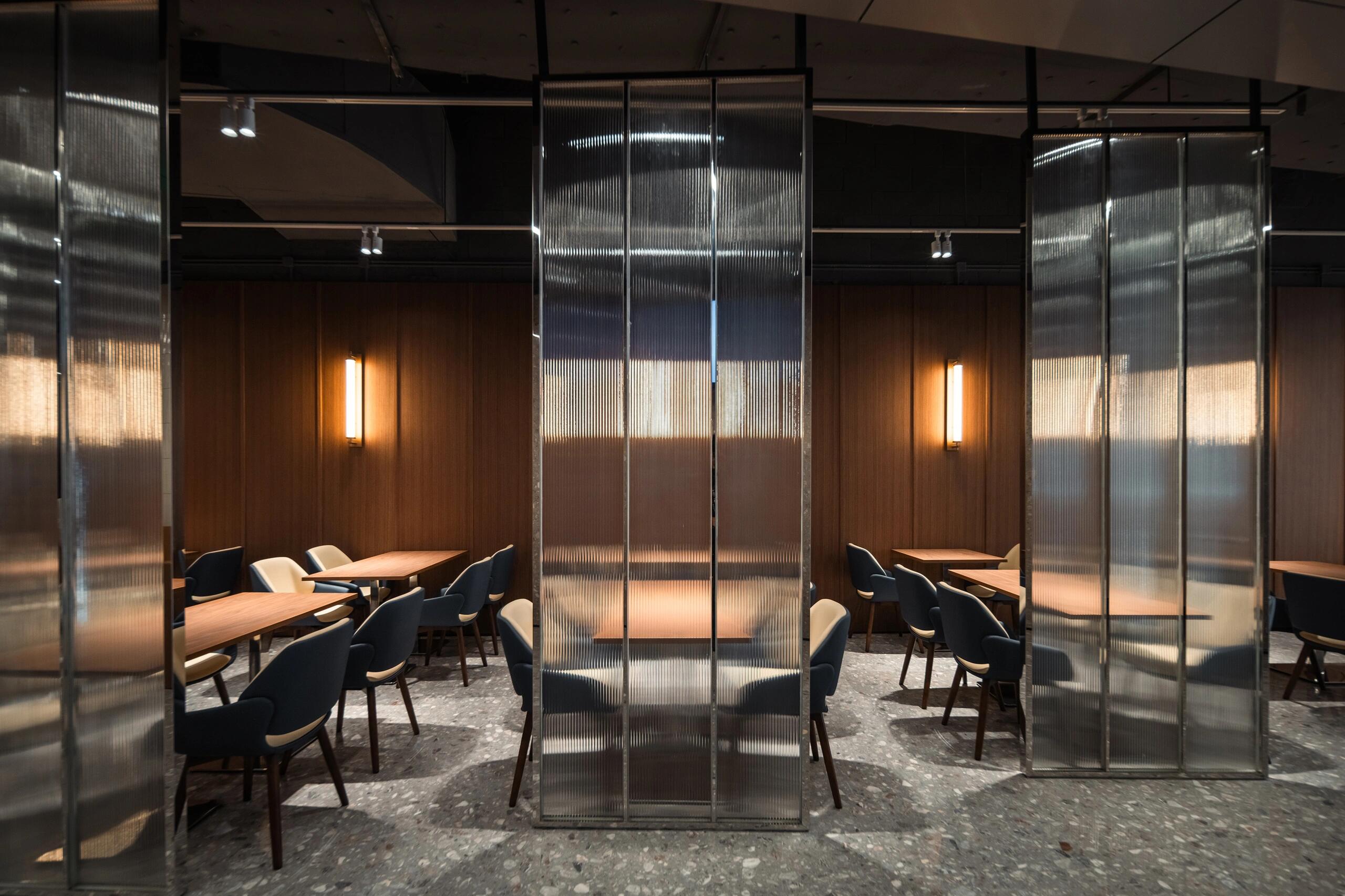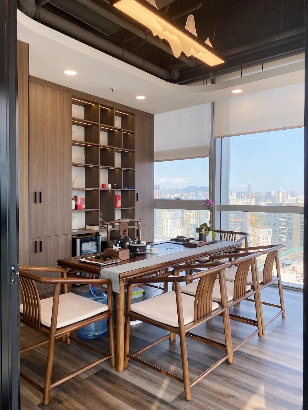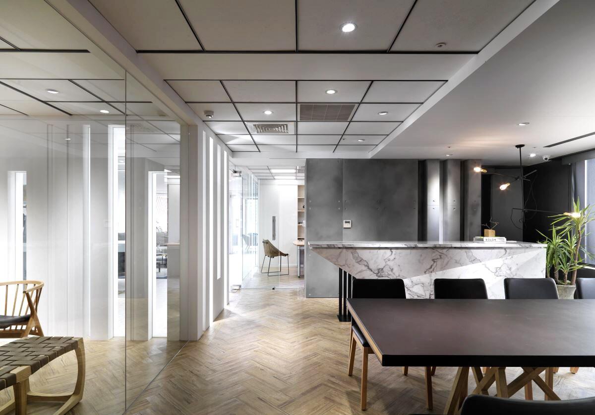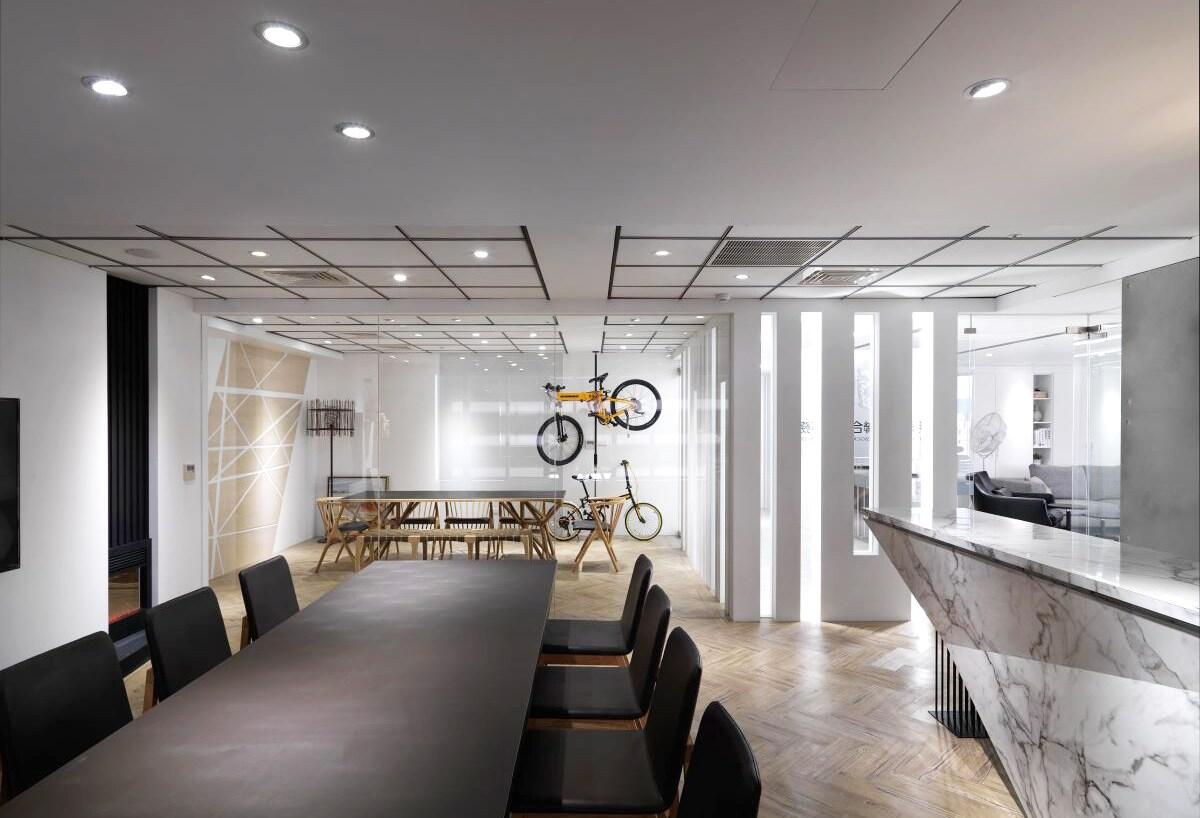 拆除传统格子间,以原木色系工位岛台串联整层。黑灰色天花轨道系统暗藏灵活分区逻辑,满足200+工位的同时,预留30%可扩展空间应对团队扩张。