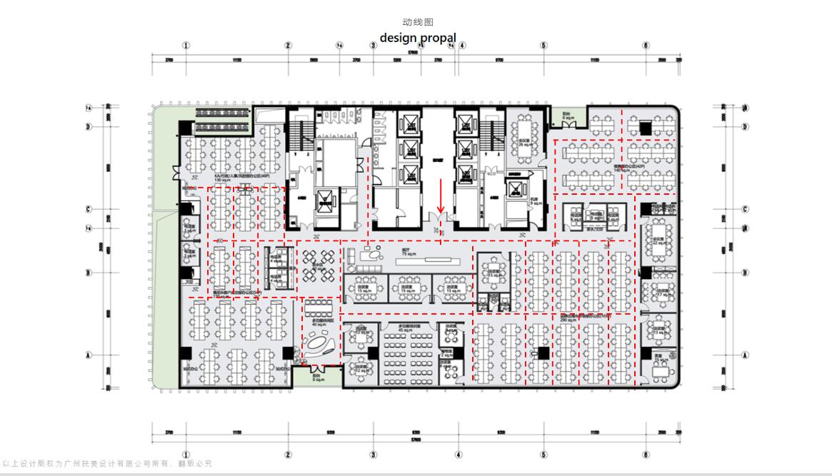 将企业标志红提炼为空间“高光笔”——前台的一抹红色贯穿象征着了互联网的高速蓬勃发展、茶水吧台软垫、创意墙磁吸展架,用克制的色彩爆发力激活互联网公司的年轻能量。