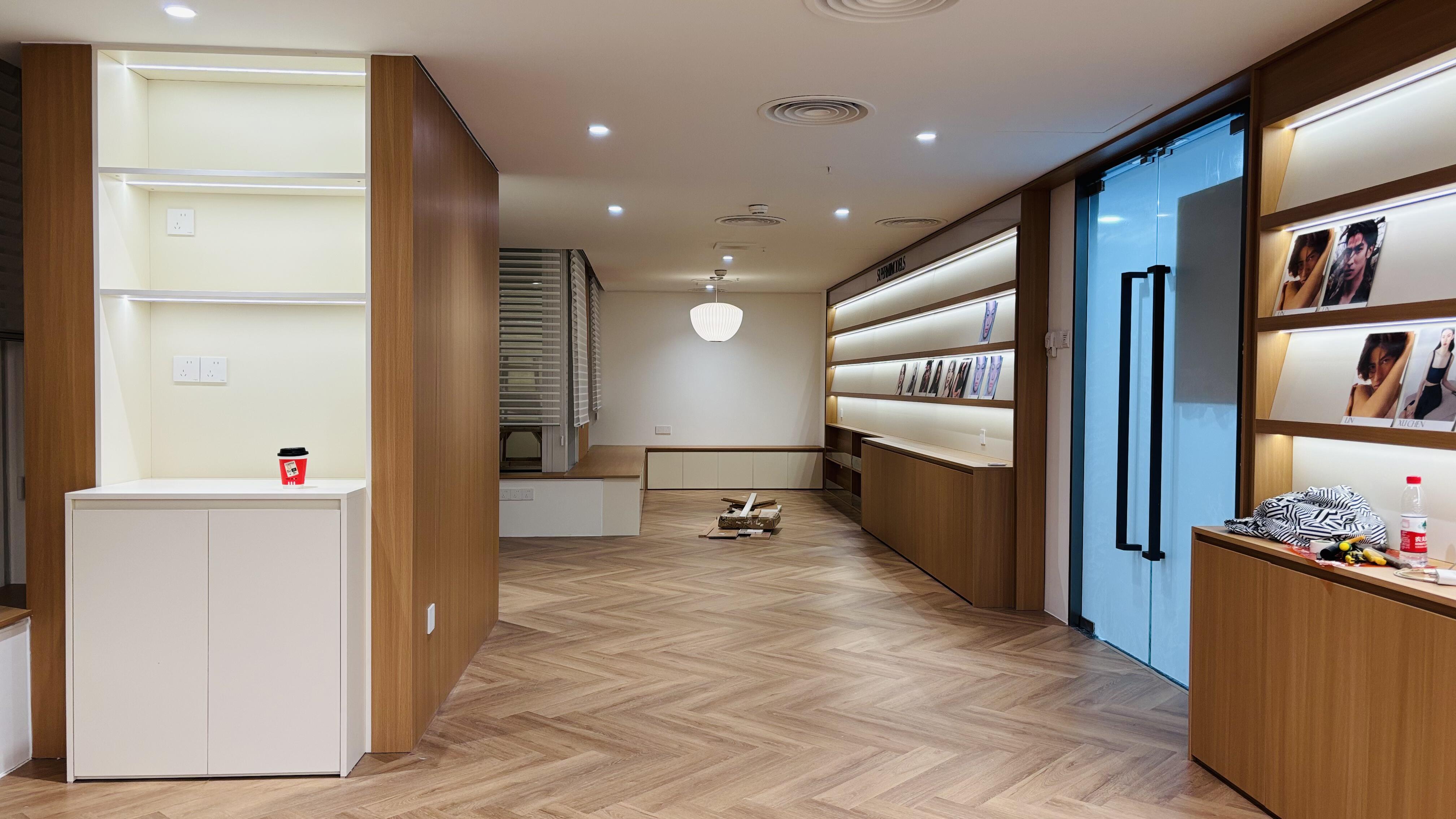 a.软管灯带竖向均匀布局,天花及地面基座各预留检修口,便于未来灯带维修