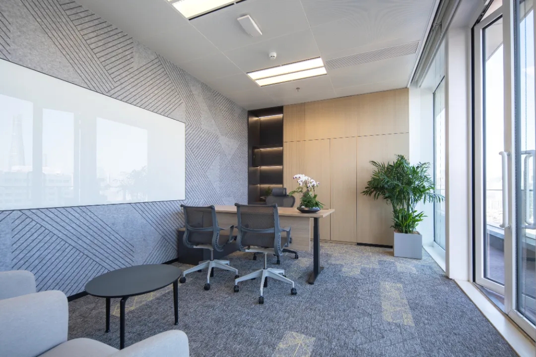 会议室采用模块化设计,温润的木饰面与蓝色跳色相得益彰,满足当下职场人对于修炼身心的情绪需求。作为交流和想法碰撞的聚场,会议室配备全场景智能系统,让每一次会议都成为灵感的源泉。