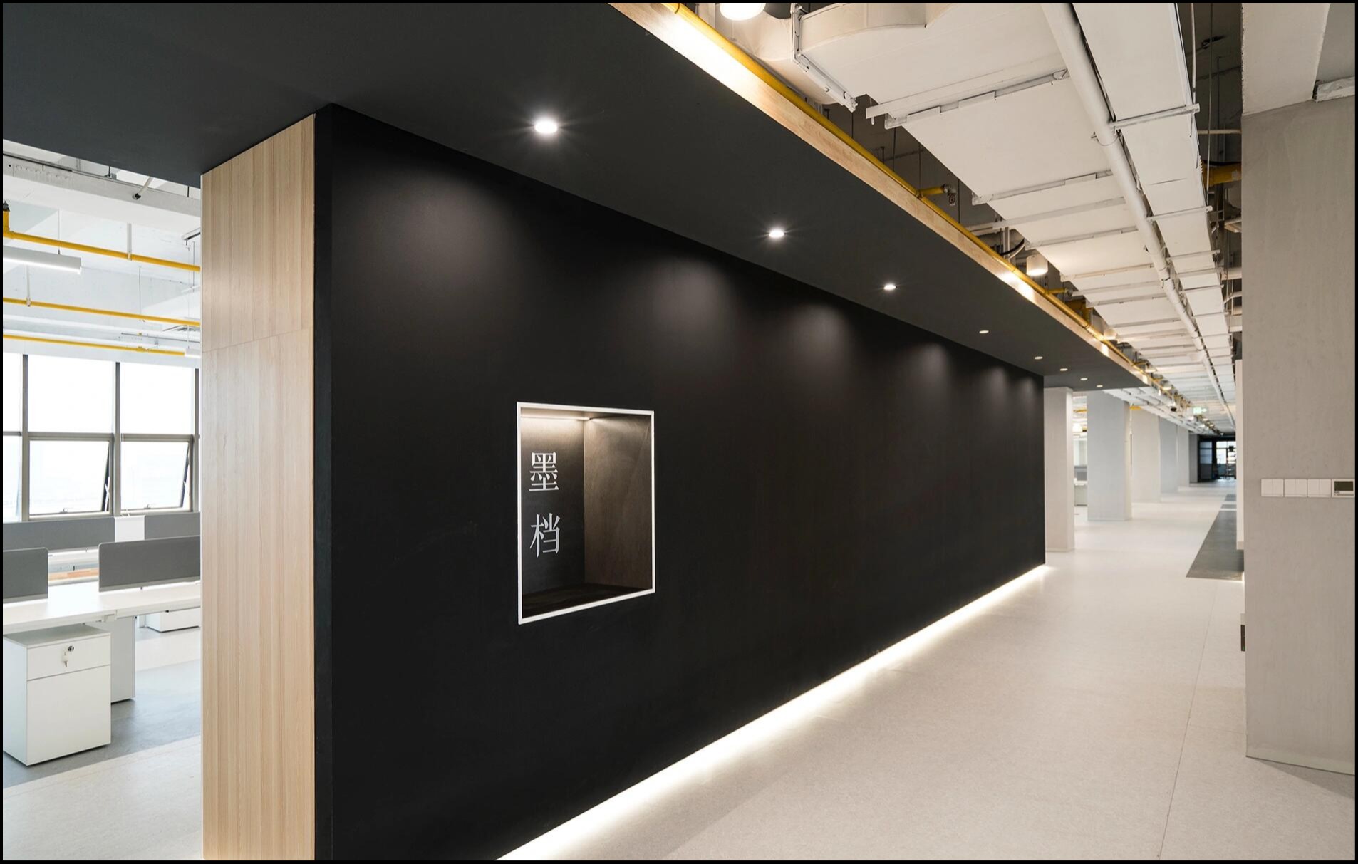 在本案的设计中,设计师以极简科技风打造一楼前厅背景墙,将电力元素与企业LOGO融会贯通,搭配智能灯光系统,传递企业创新形象。