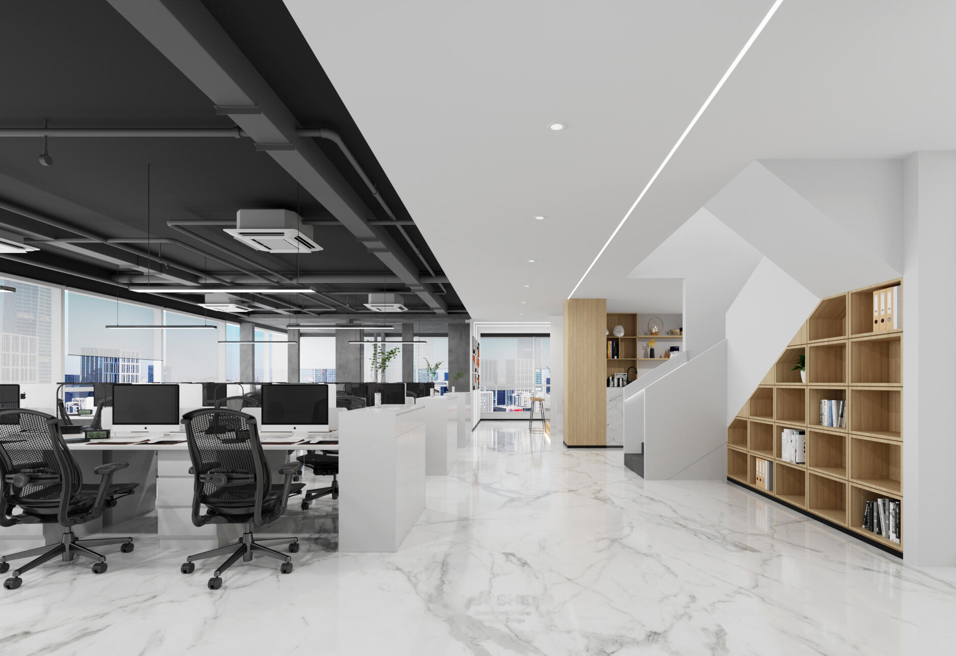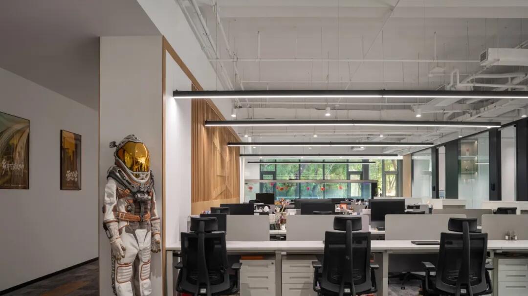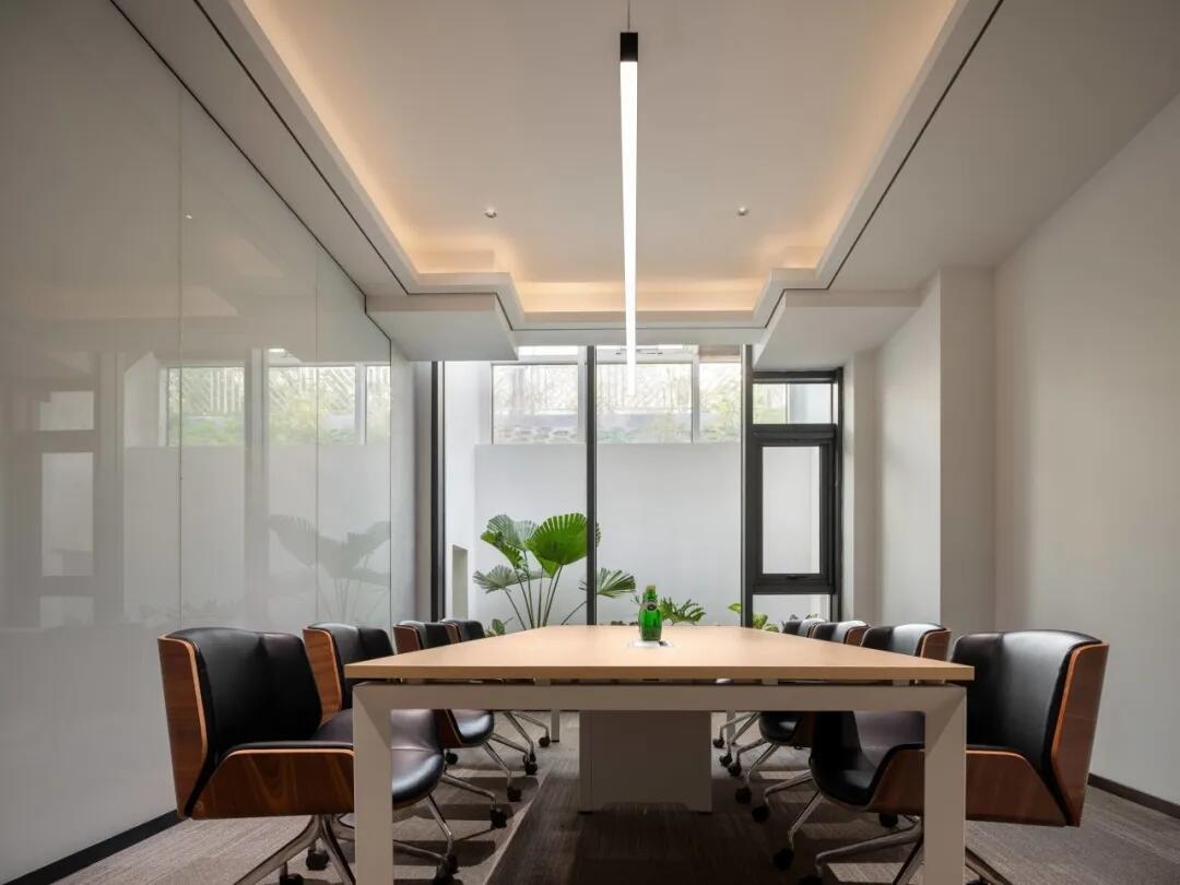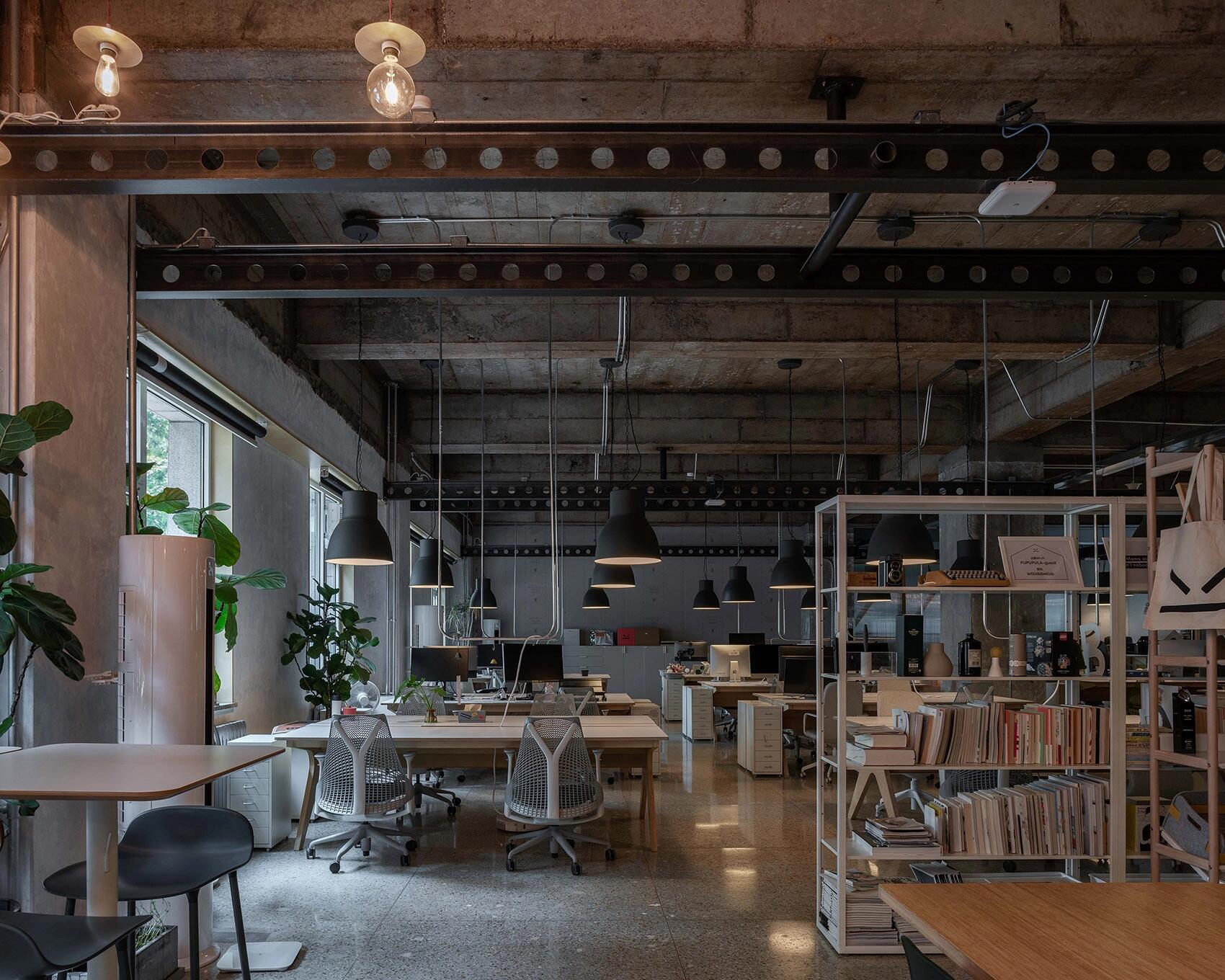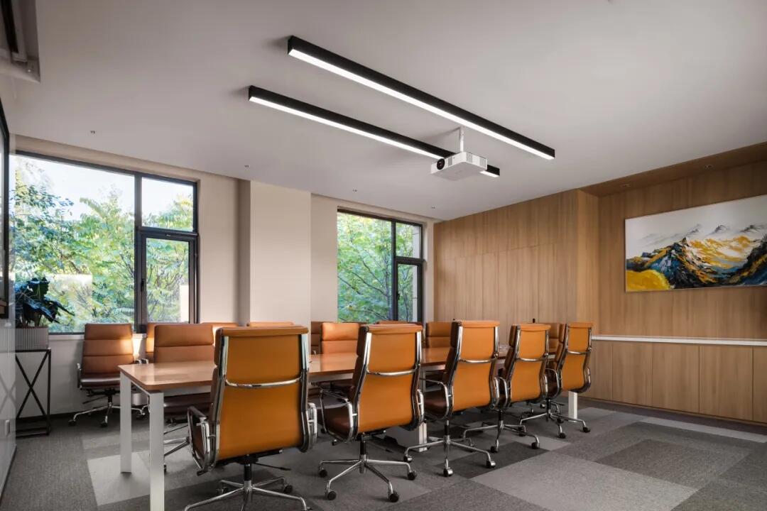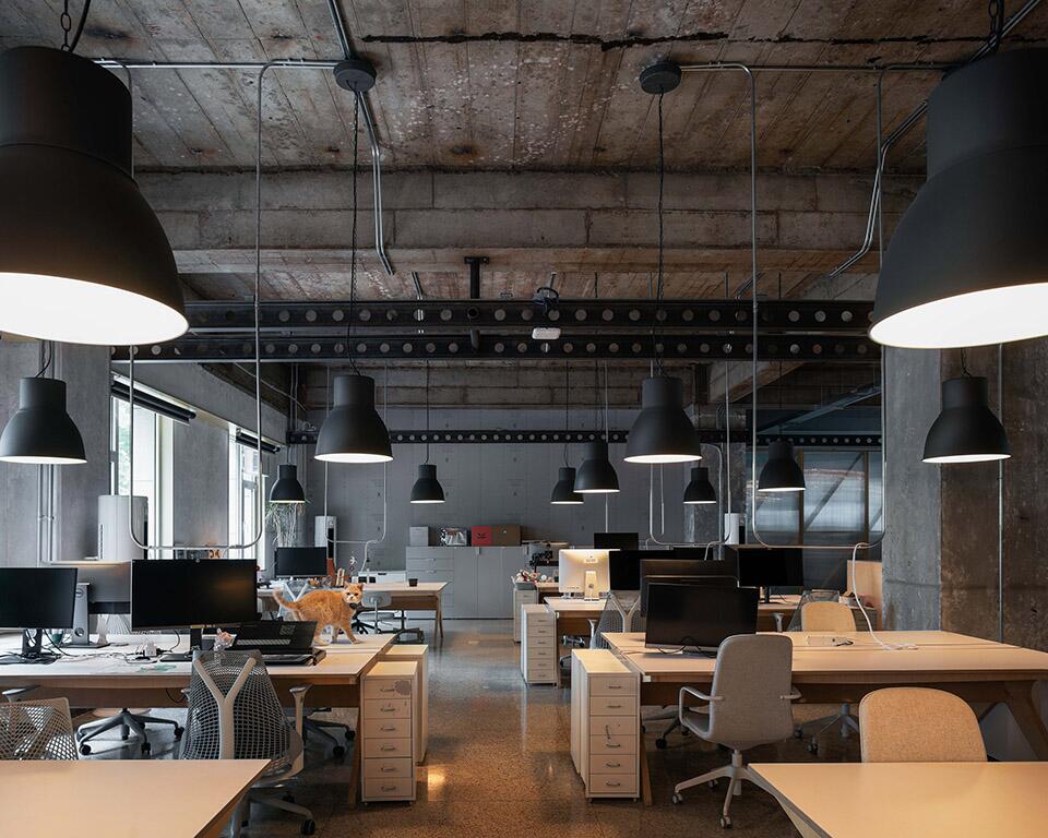 工业风遇上办公空间,是一场创意与实用的完美邂逅。裸露的水泥天花板,尽显原始粗犷之美。简约的黑色吊灯有序垂落,为开放式办公区增添时尚格调。桌椅摆放规整又不失灵动,营造出舒适高效的工作氛围。在这里,每一处细节都在激发灵感,助力高效办公 。
