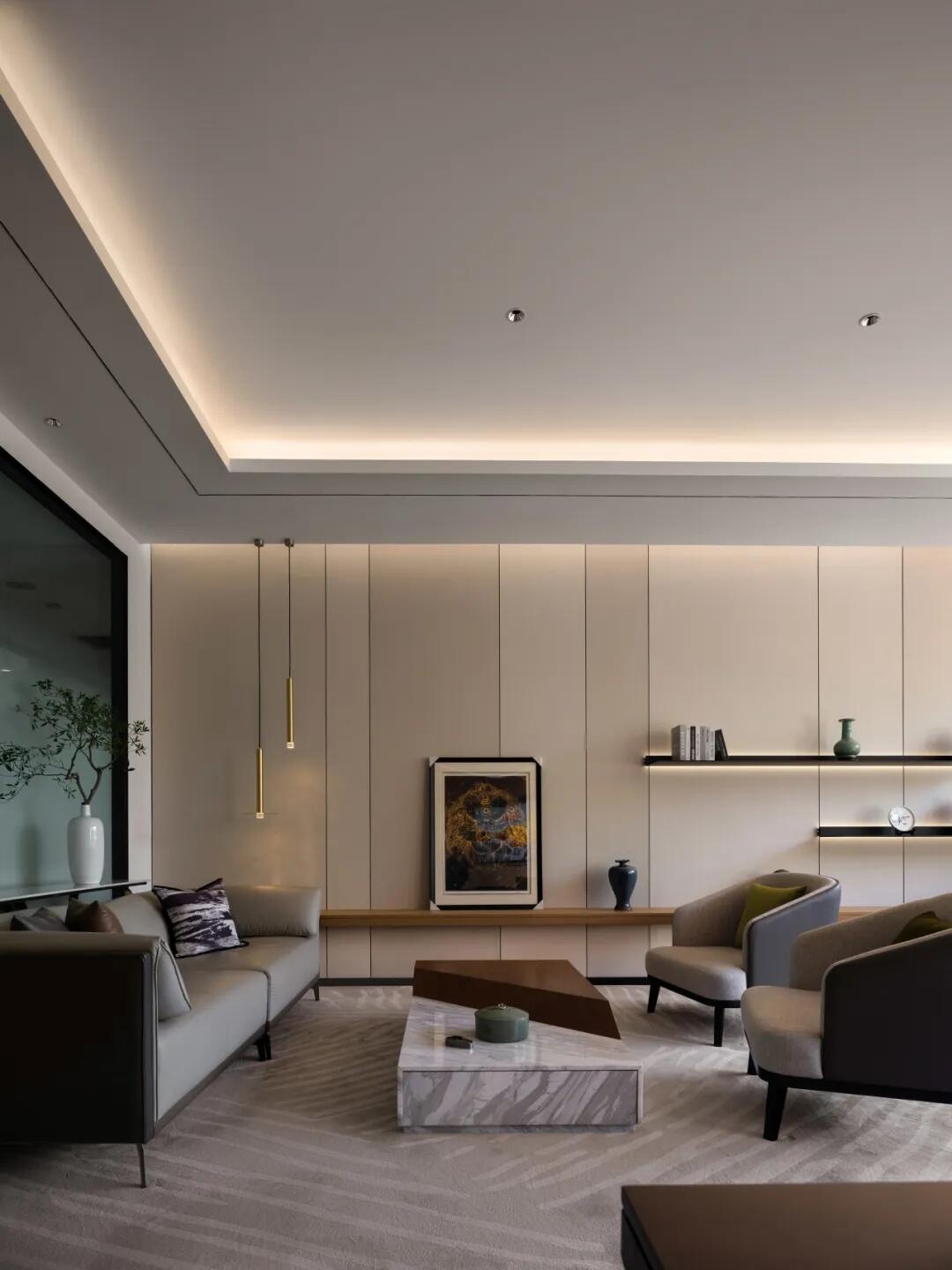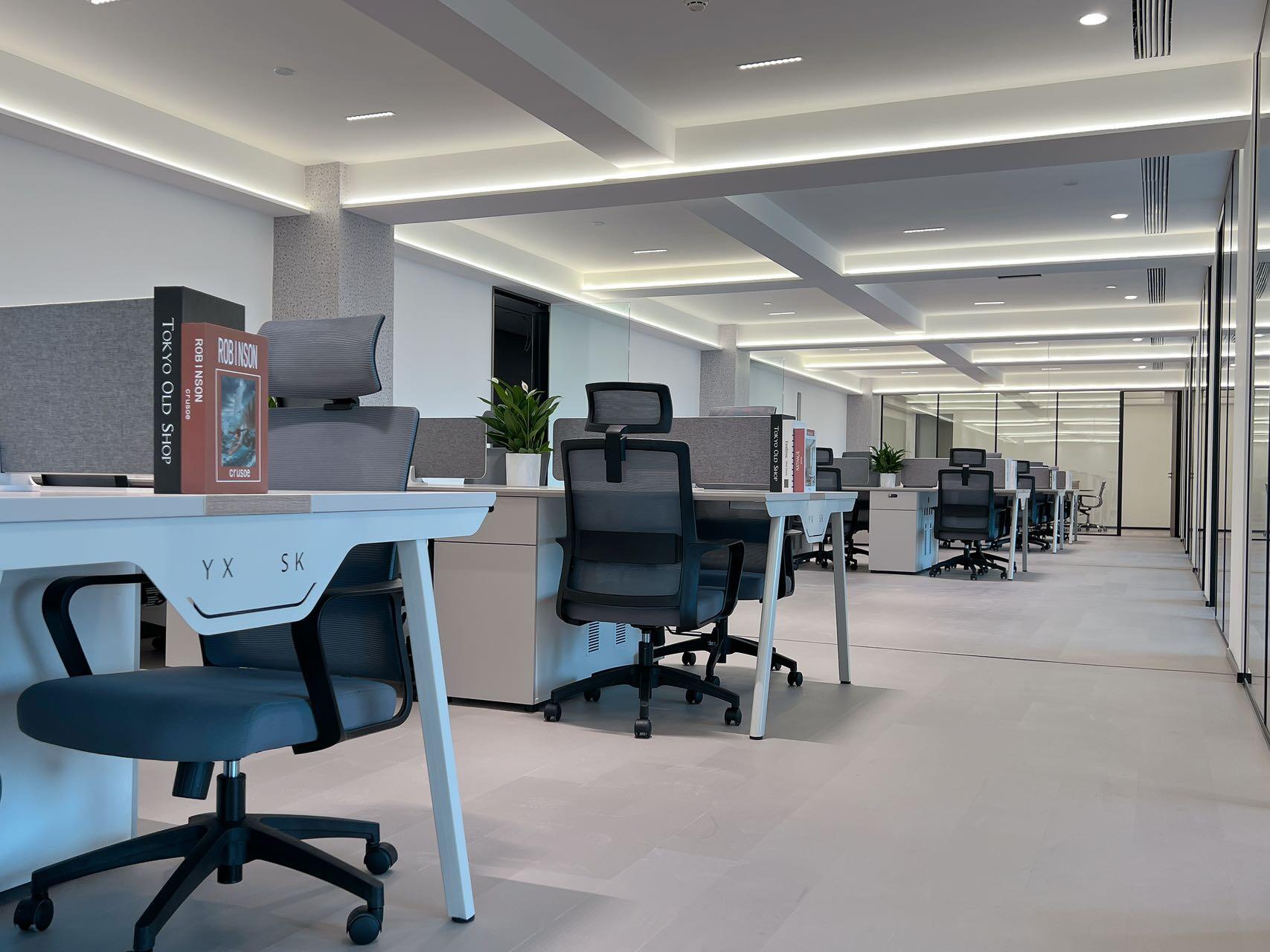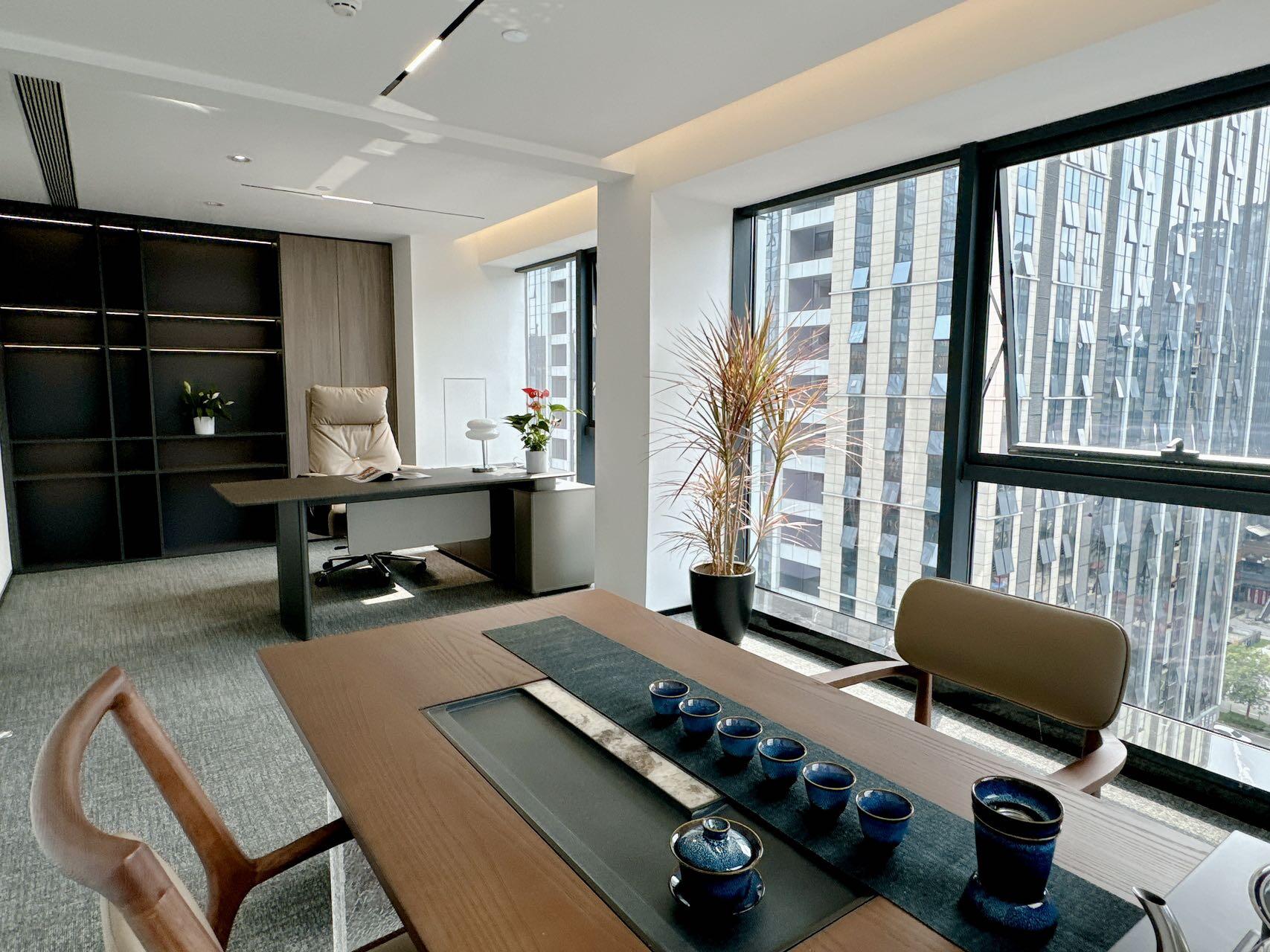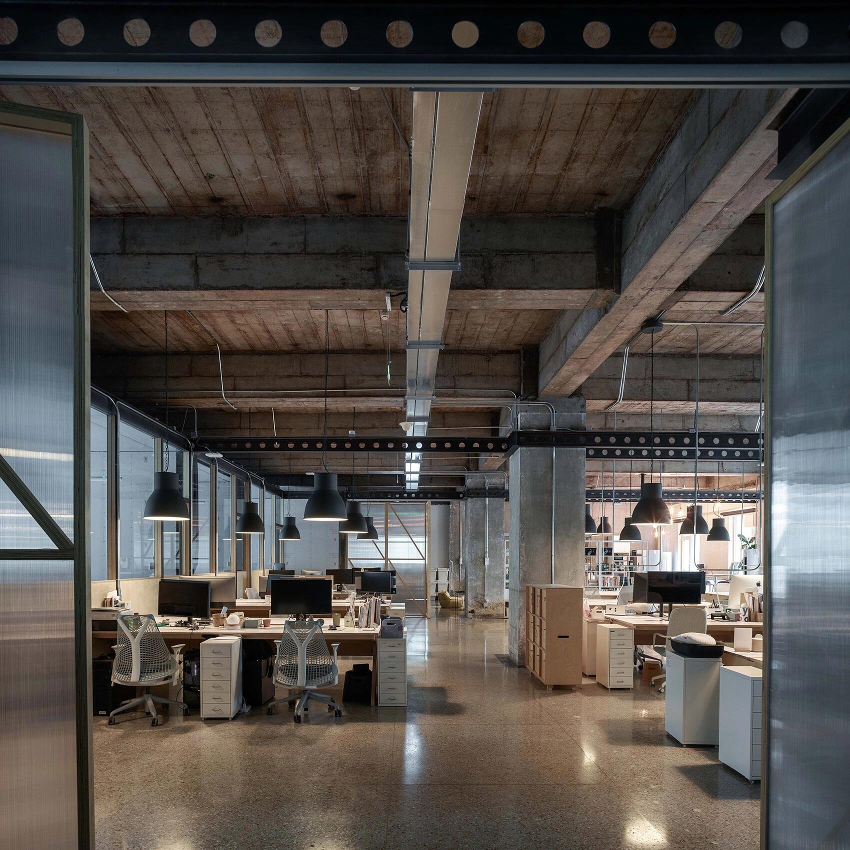 工业风遇上办公空间,是一场创意与实用的完美邂逅。裸露的水泥天花板,尽显原始粗犷之美。简约的黑色吊灯有序垂落,为开放式办公区增添时尚格调。桌椅摆放规整又不失灵动,营造出舒适高效的工作氛围。在这里,每一处细节都在激发灵感,助力高效办公 。