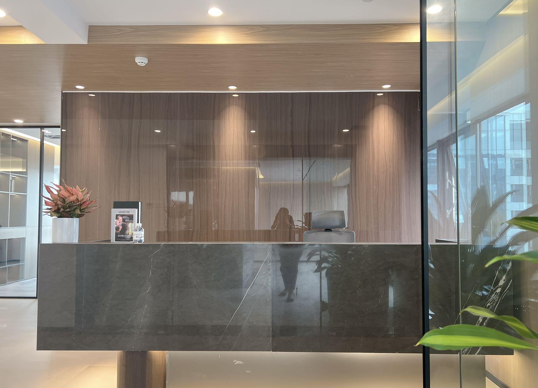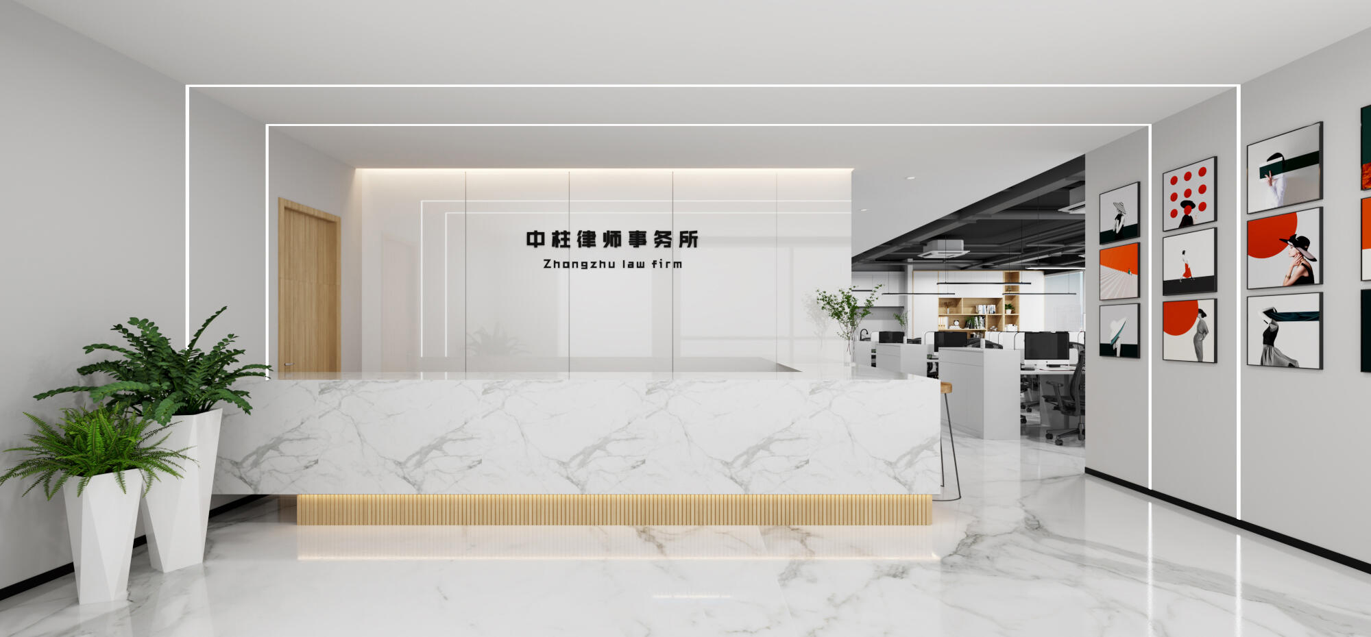 律所办公室效果图……整体风格简约现代,白色调为主,搭配大理石前台和绿植,显得专业又大气。