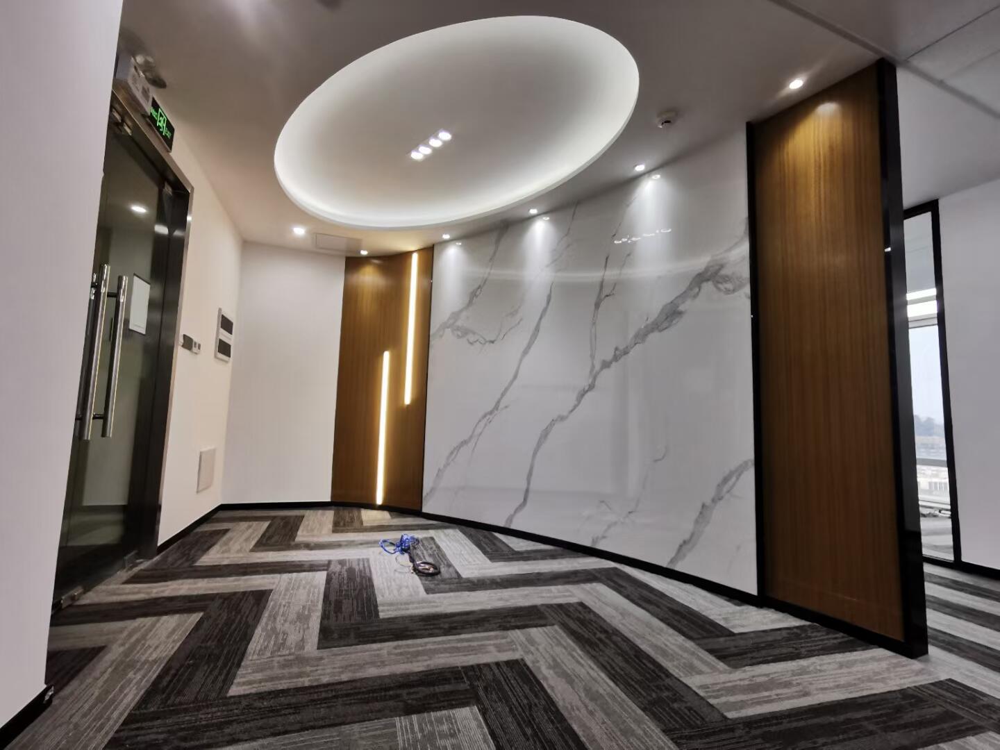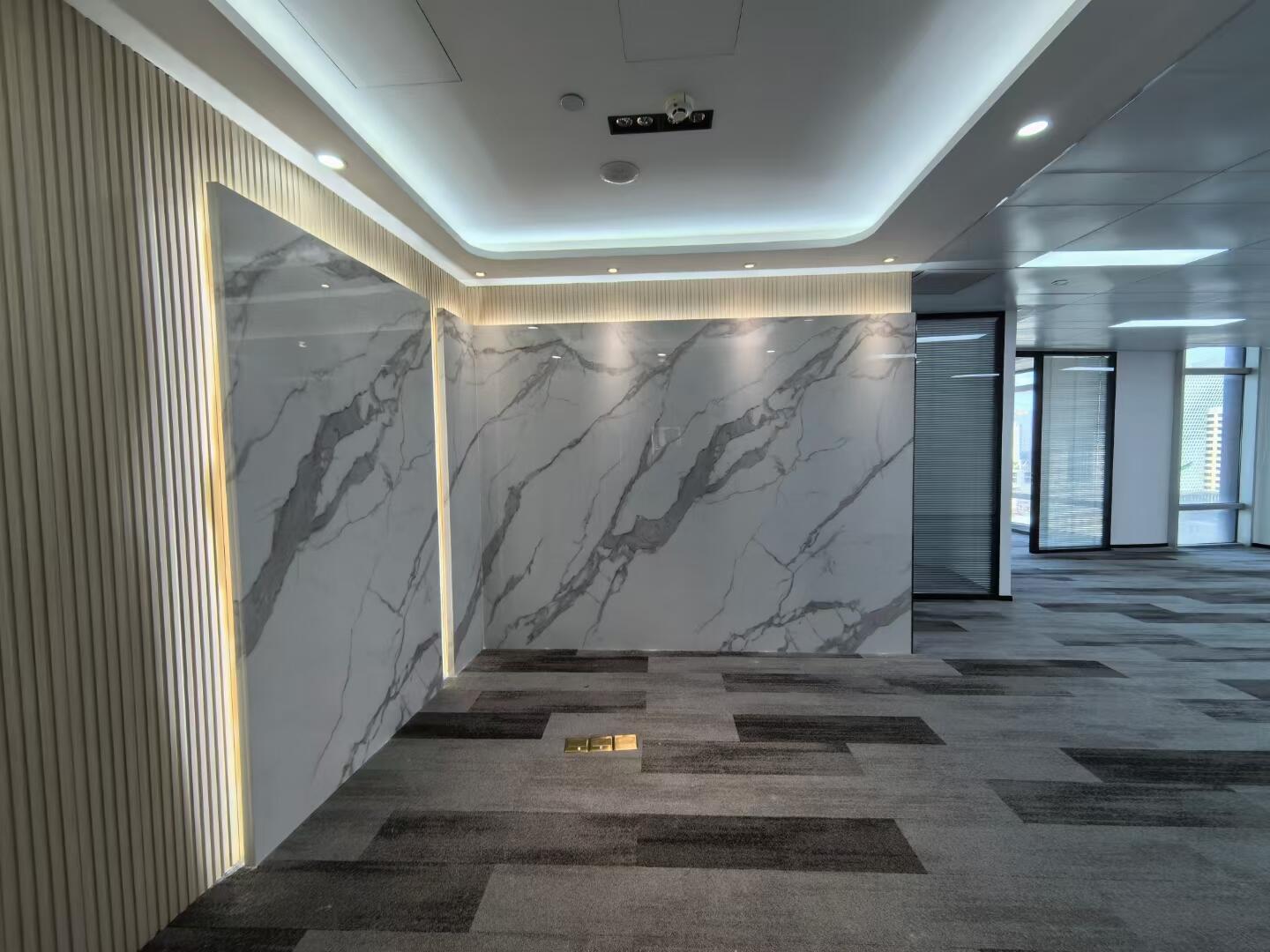 3. 材质交响曲创新组合雅士白岩板/超薄树脂玻璃隔断/意大利灰木纹/商务灰地毯等多种材料,形成五感层次: