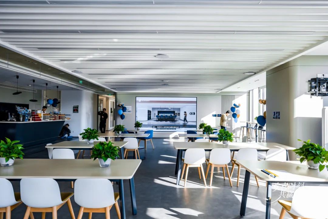 前台接待区域以象征天空的「蓝色+白色」为基调,虚实有秩之间蓝天与人交融,打造秉承可持续性、舒适自然、开放灵动的办公空间。
