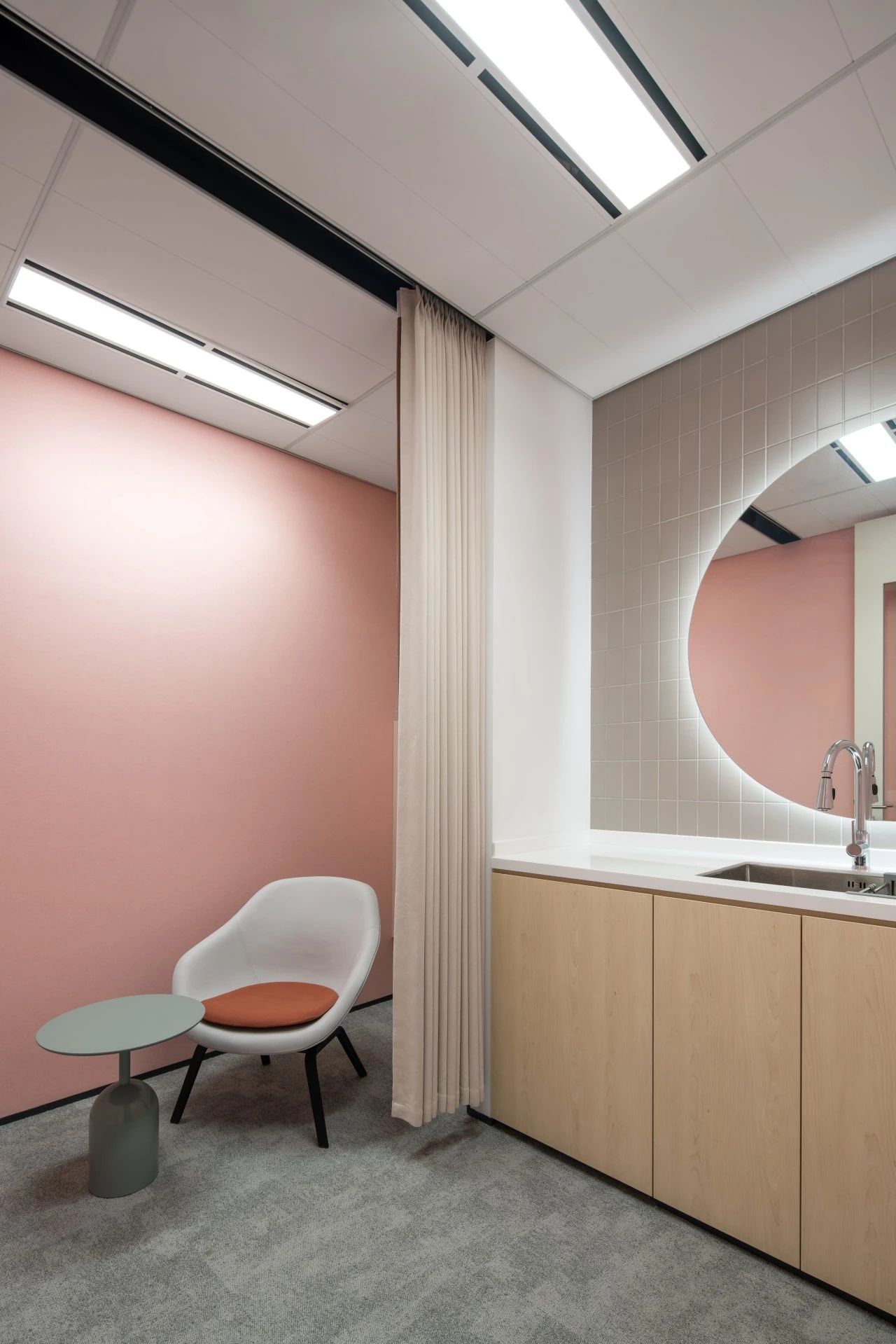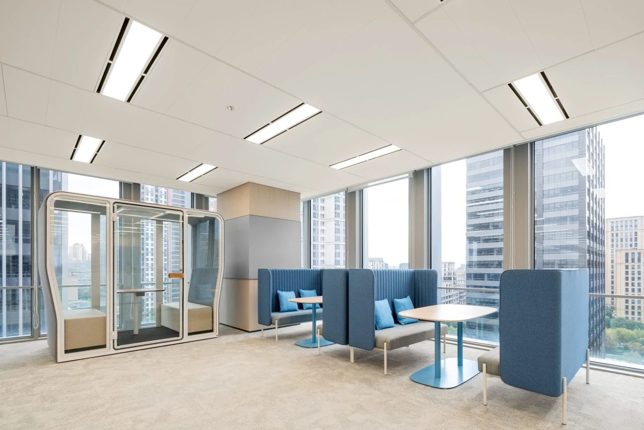 秉承可持续发展的设计理念,设计师通过将员工工位临窗而设,加上高度可调办公桌、人体工学座椅、清新自然绿植,使整体空间显得分外舒适、愉悦,更有利于提升员工的幸福感和工作效率。