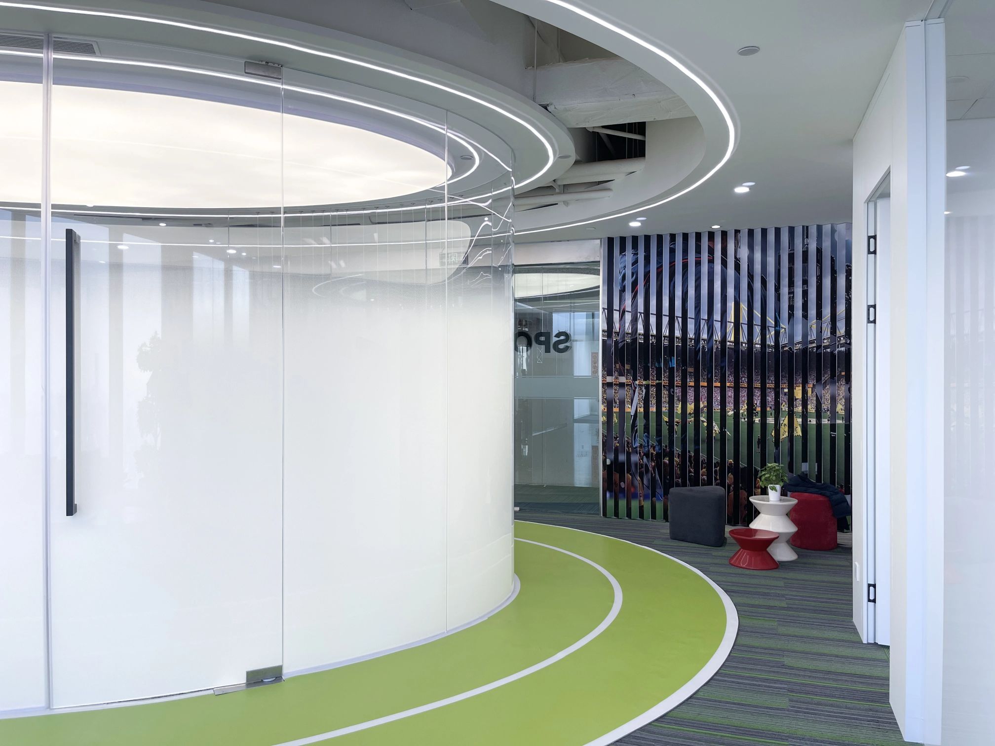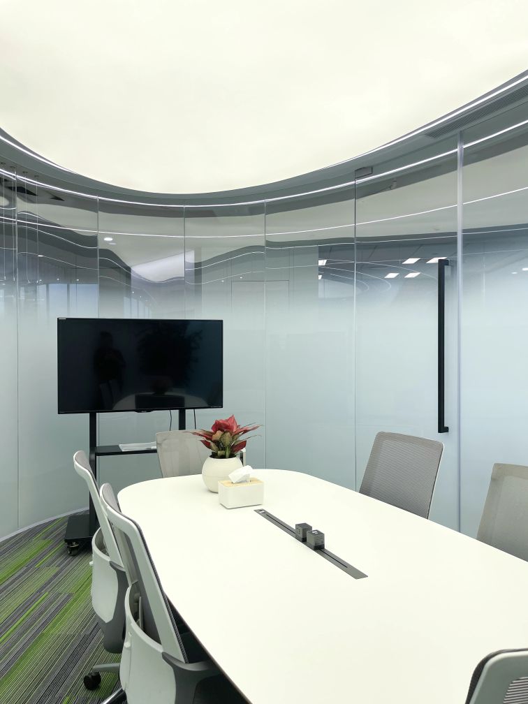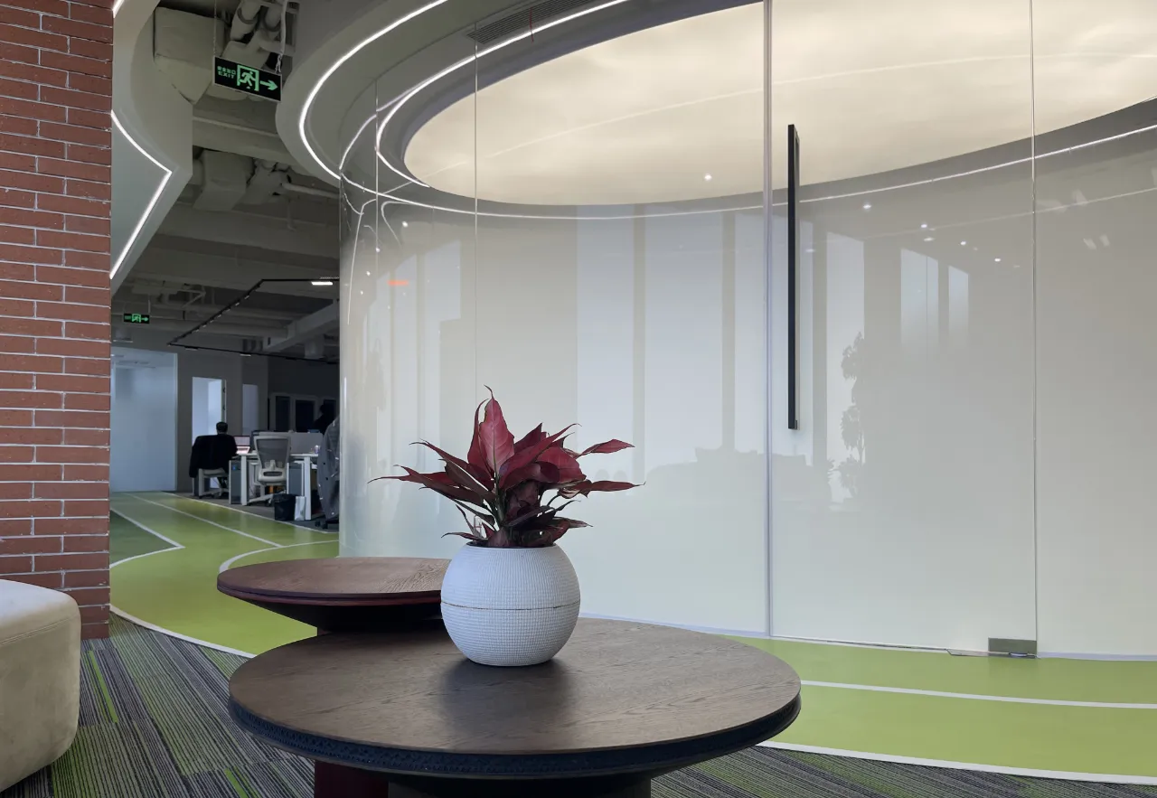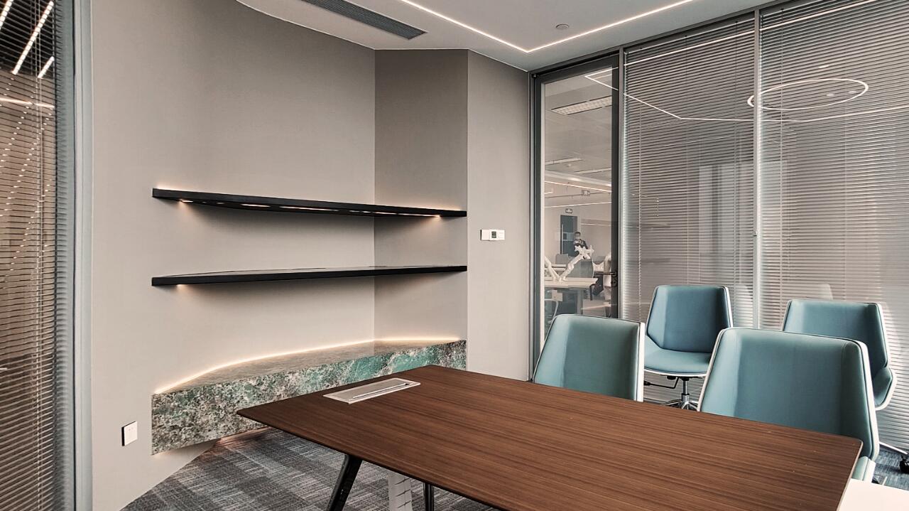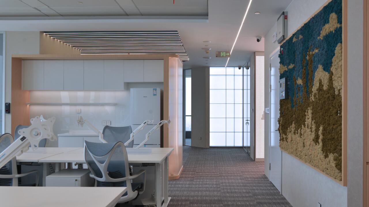 设计团队将会议、洽谈、水吧与共享功能合理的布置于原始建筑给予的各个“角落”,利用这些“不利条件”创造出多个激发创造力的场景,使员工拥有了更多的办公空间的选择。布局逻辑上,将南向最佳的景观视角留给了开放办公区,让办公环境真正为“使用者”服务。