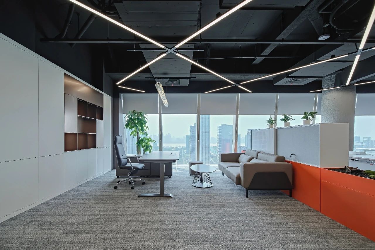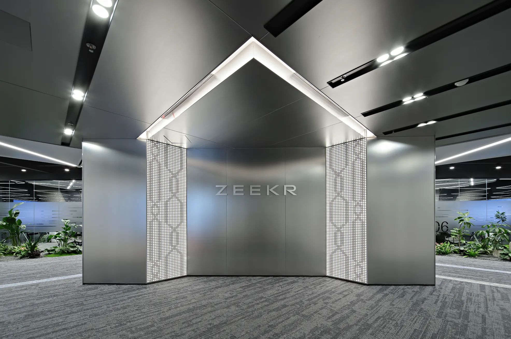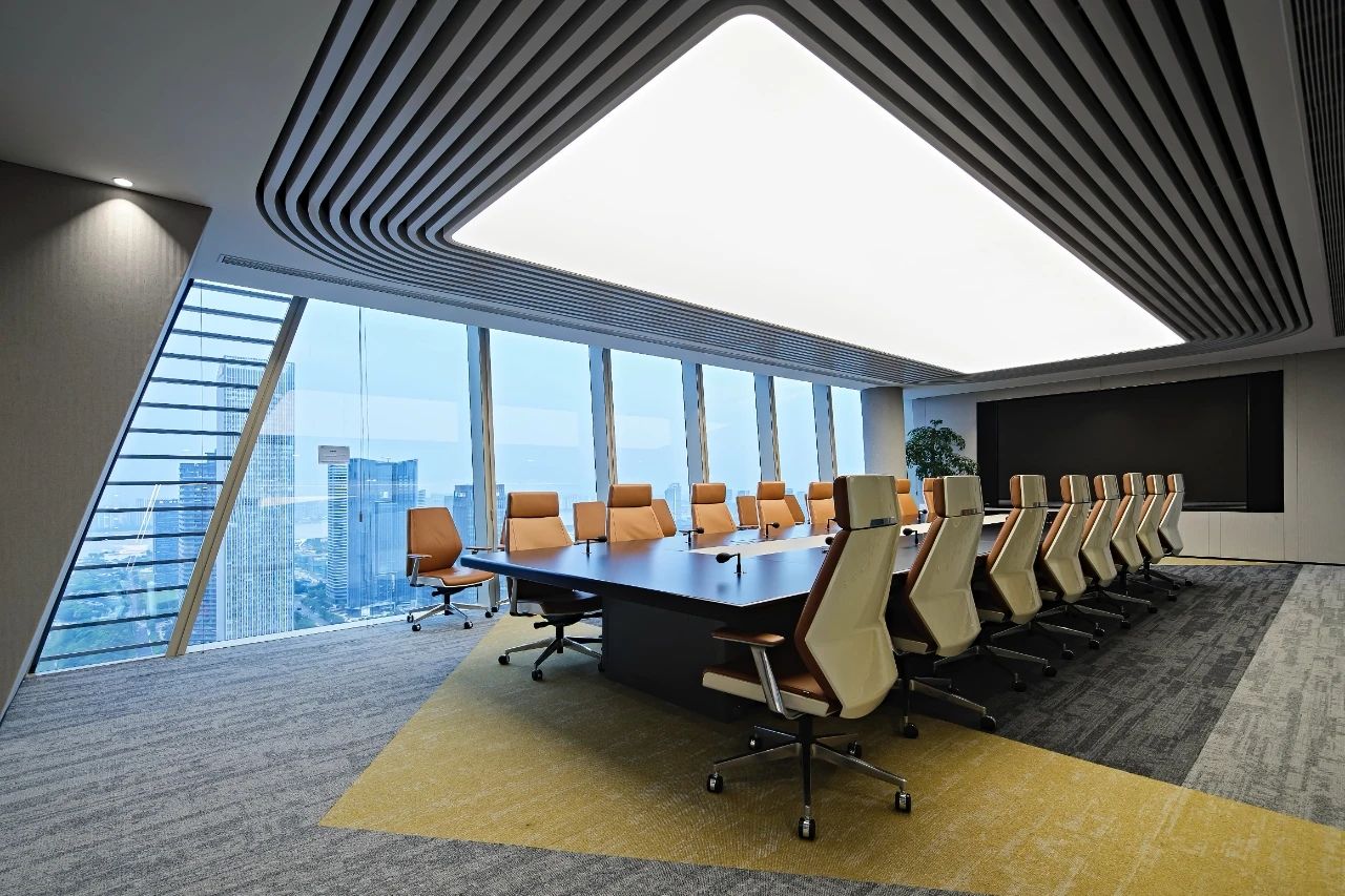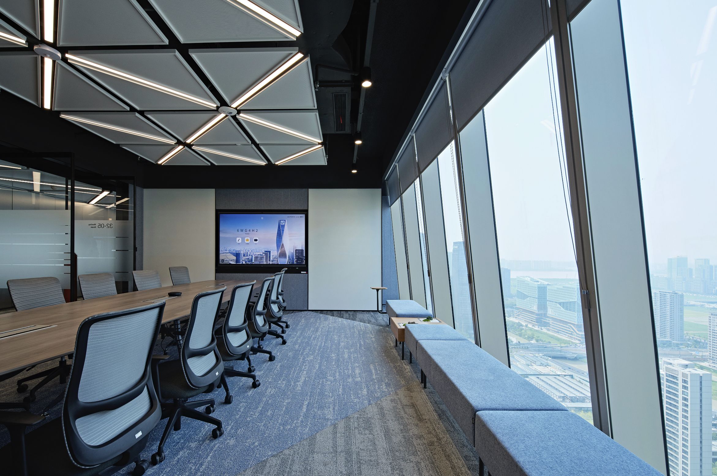 四区作为另一个主要办公区和综合功能区,活动场景丰富,人员流动大,设计采用“水”的流畅舒缓的流线型元素,为员工提供一个活泼舒适、疏解紧张情绪的办公环境。