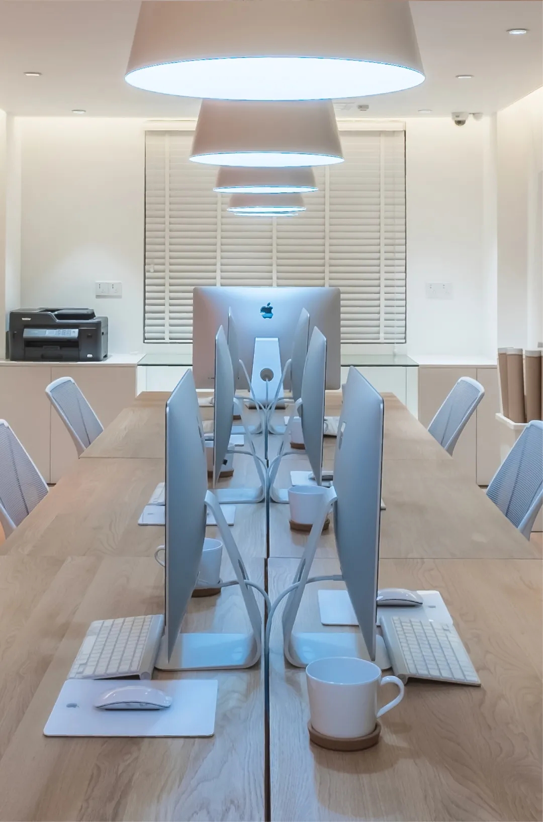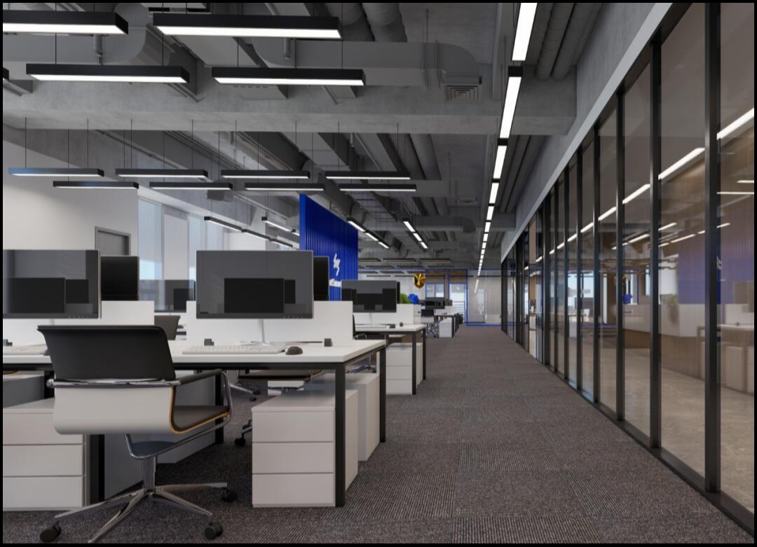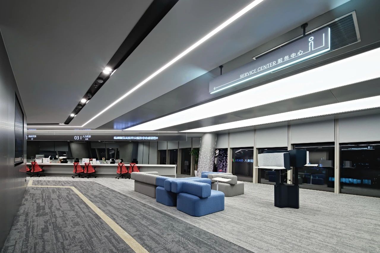 灯光设计是整个空间的关键部分。我们采用了柔和的灯光布置,避免了直射的强光,营造出一个舒适宜人的工作环境。同时,我们还为一些区域提供了可调节亮度的灯光系统,以满足不同场景的需求。